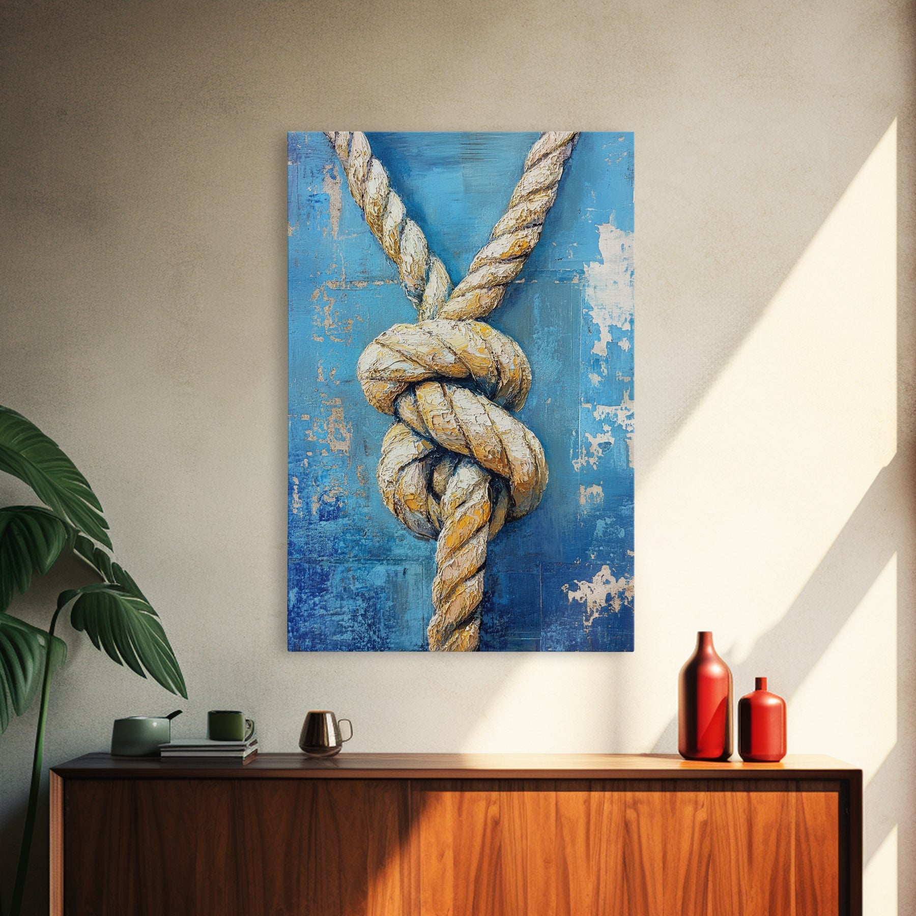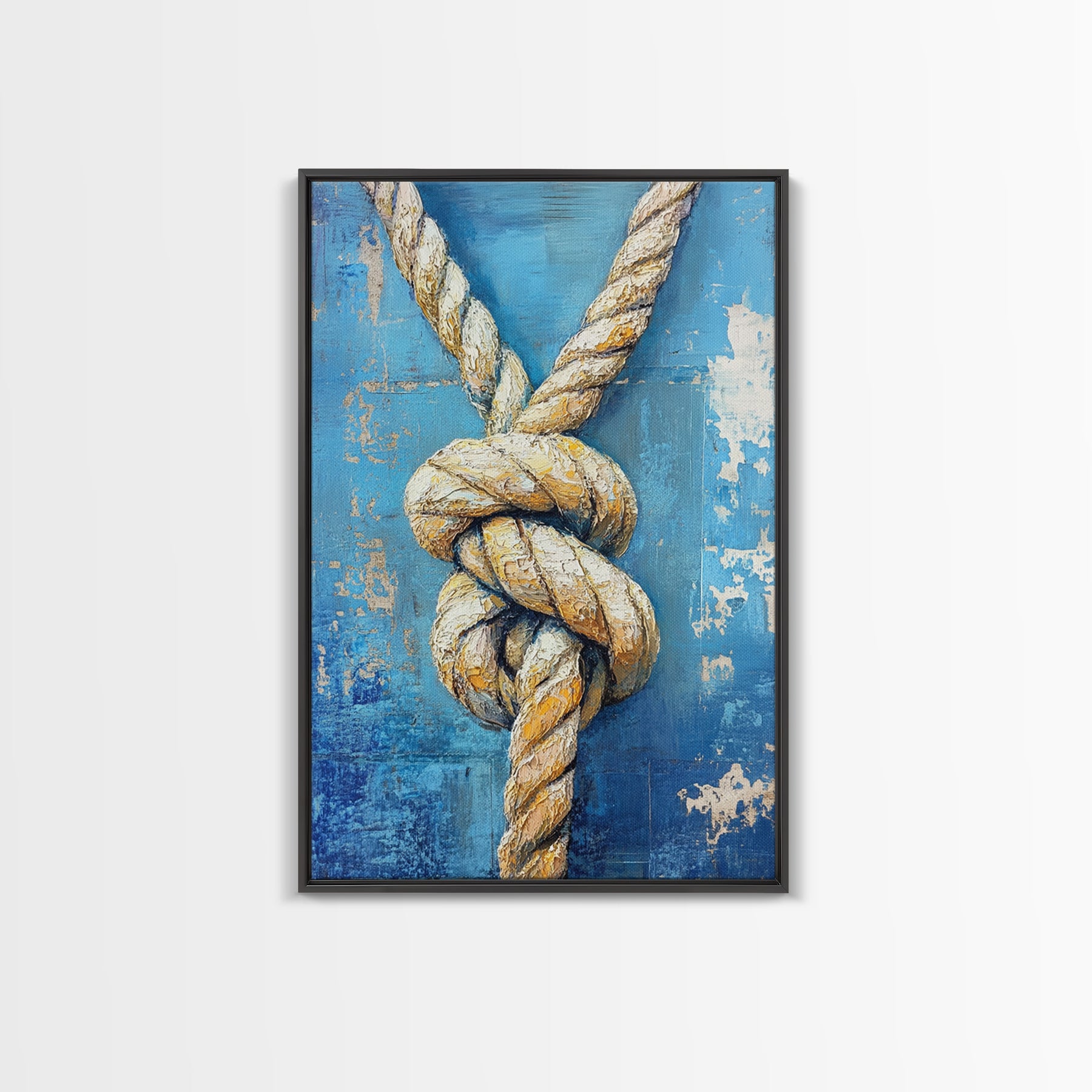 Nautical Knot, Coastal Wall Art, Framed Canvas Print, nautical decor, rustic art, textured painting, nautical painting, coastal cowgirl wall art