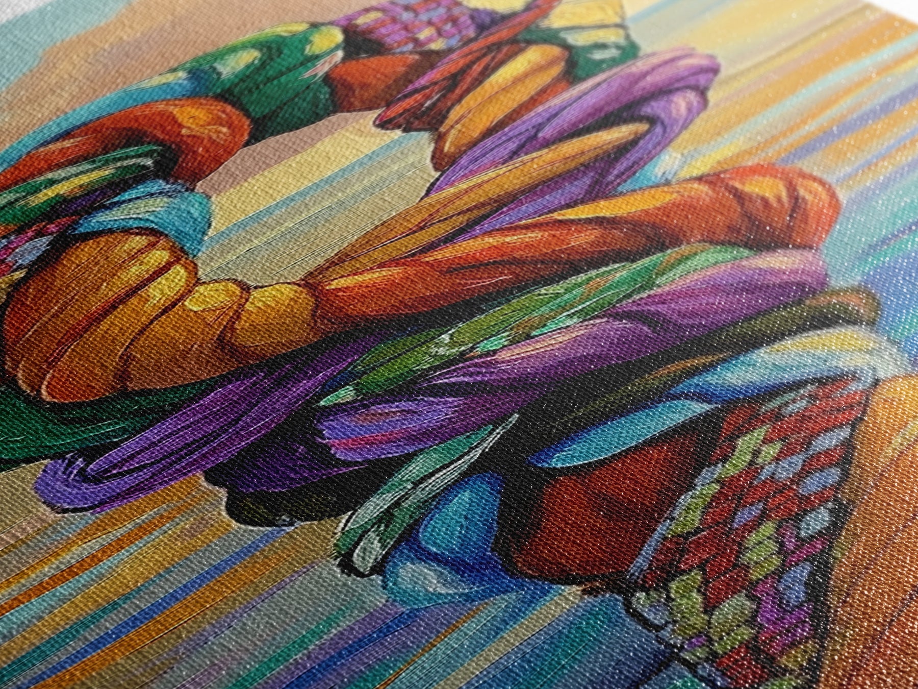 Most of our canvases are made in the USA, with the exception of canvases ordered with the light oak unstained frames, and any large canvases (24x48, 30x60, 16x48 and 20x60) ordered WITH a frame. These are temporarily made in and shipped from Europe, while we try to find a more consistent supplier in the USA.