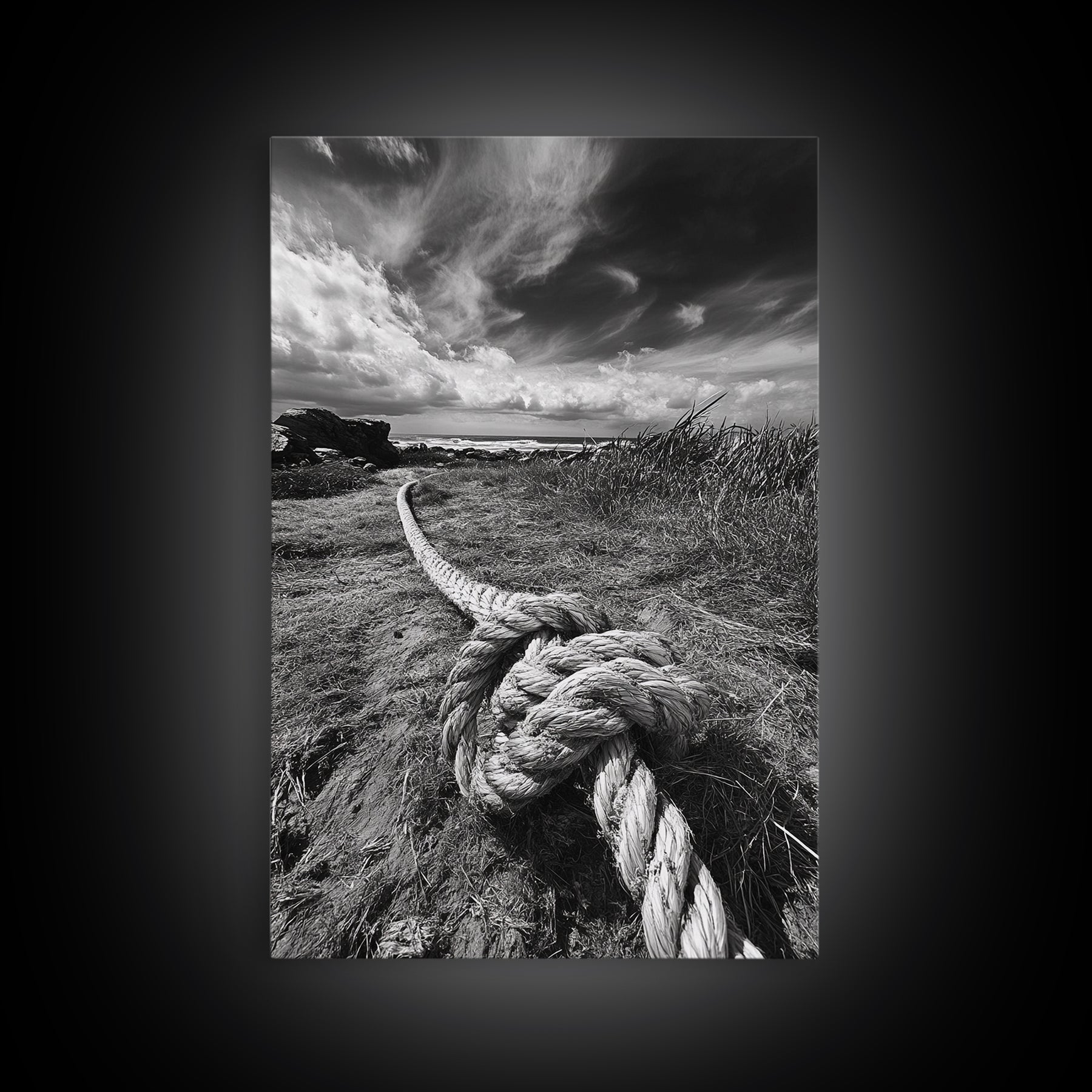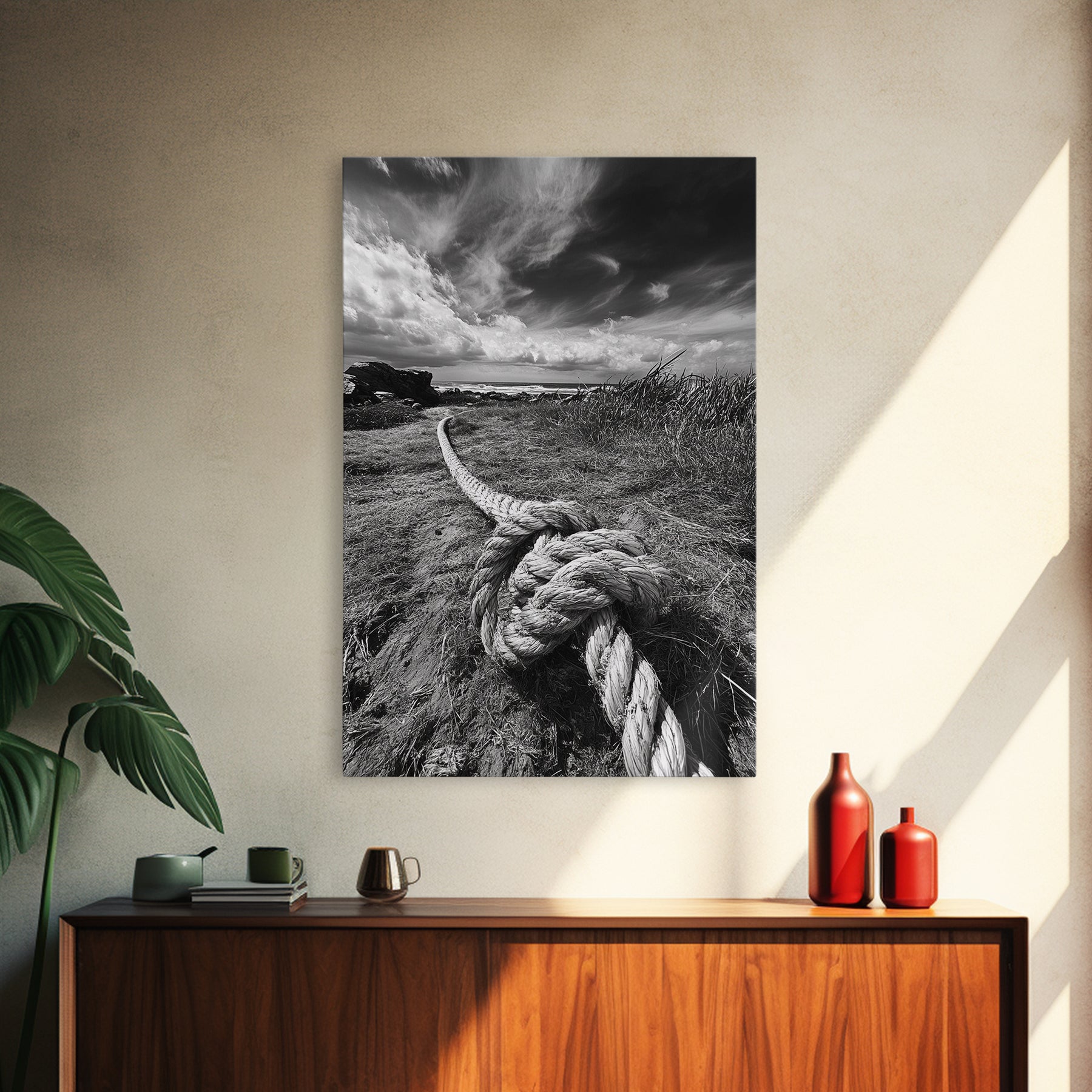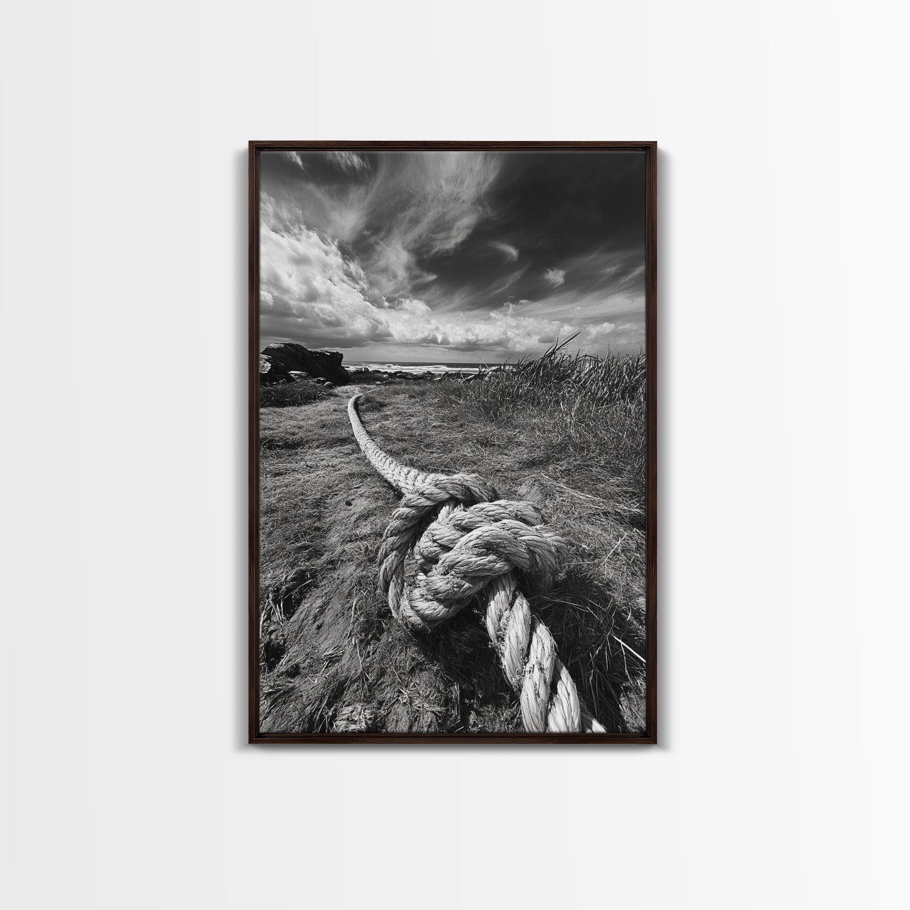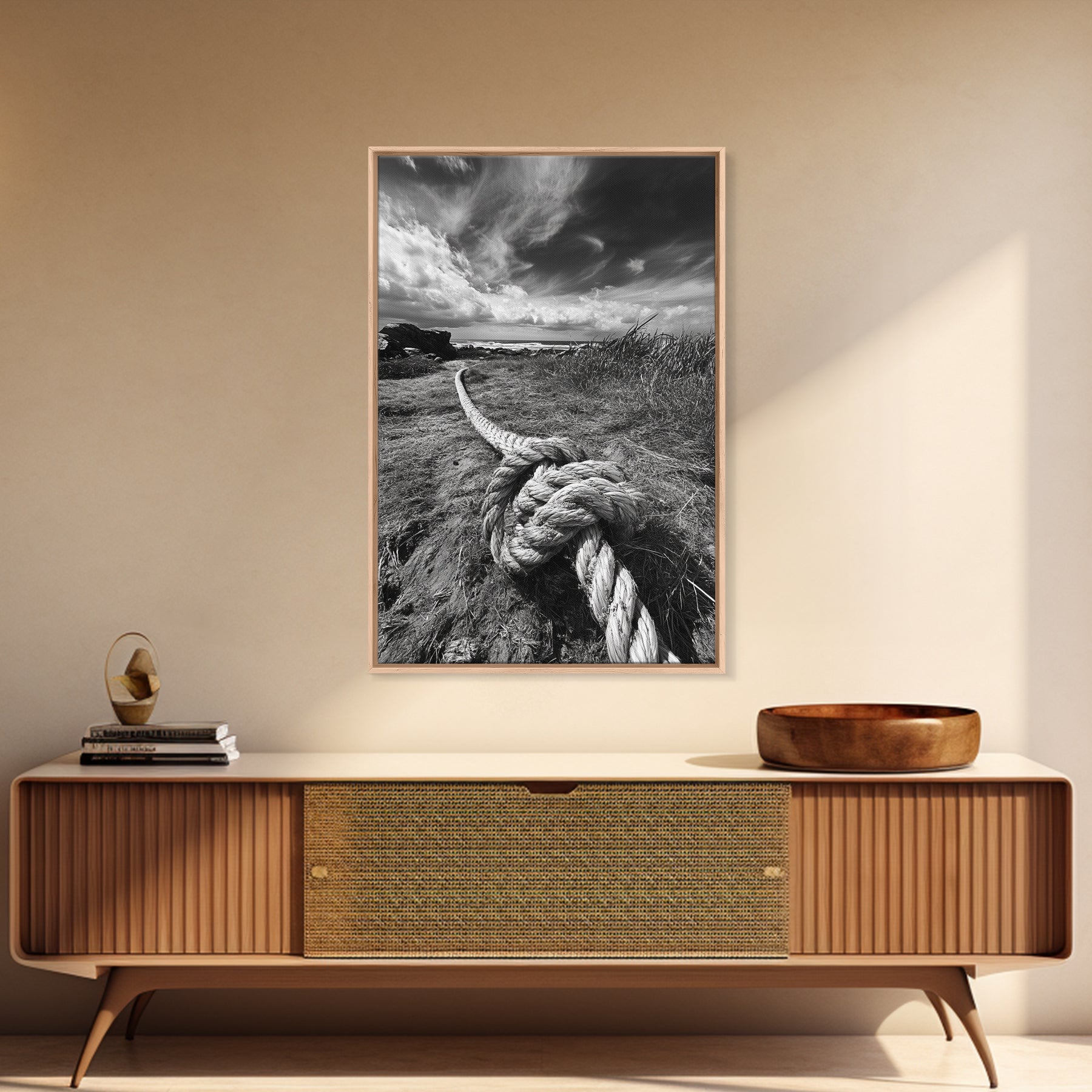 Nautical Rope Knot, Coastal Texture, Ocean Breeze, Framed Canvas Print, Beach House Wall Art, Rustic Nautical Decor, Minimalist Style