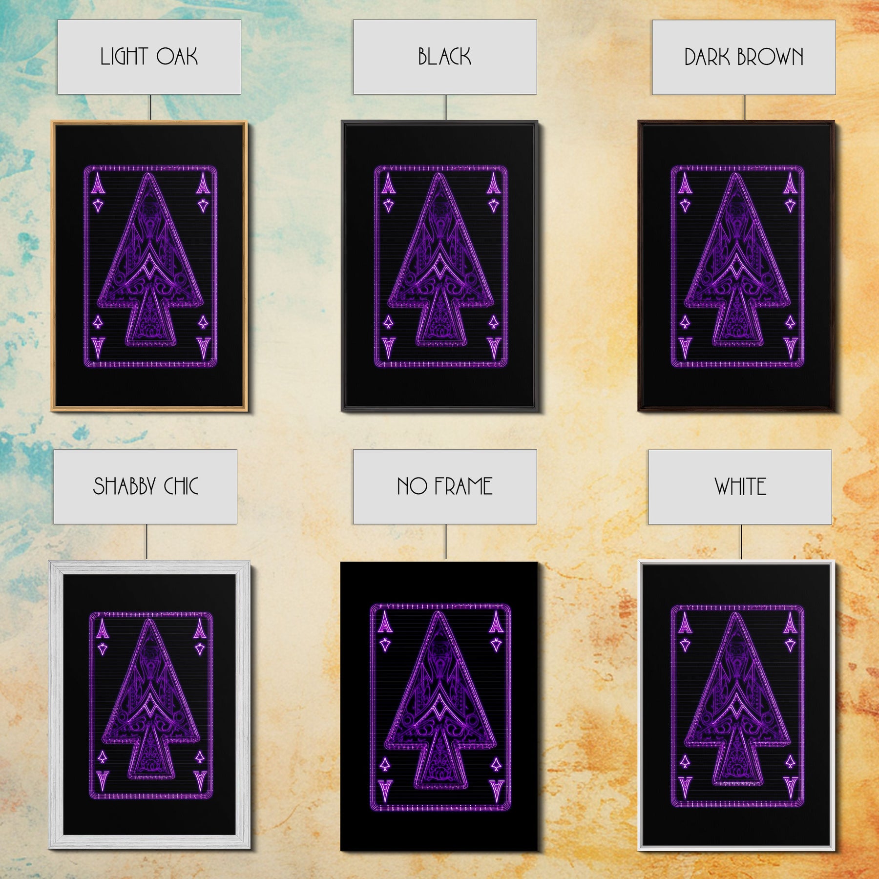 Neon Lights Purple Ace Of Spades Wall Decor, Poker Wall Art, Cards, Minimalist Print, Wall Decor, Canvas Print, Wall Art, Framed Canvas
