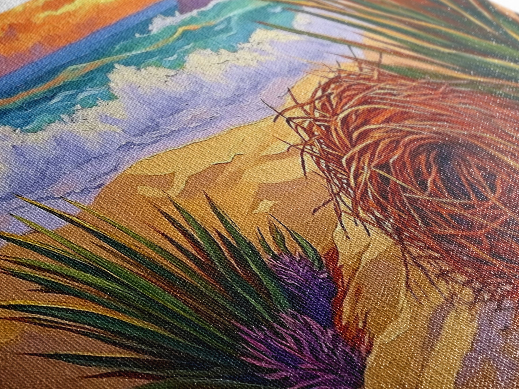 Most of our canvases are made in the USA, with the exception of canvases ordered with the light oak unstained frames, and any large canvases (24x48, 30x60, 16x48 and 20x60) ordered WITH a frame. These are temporarily made in and shipped from Europe, while we try to find a more consistent supplier in the USA.