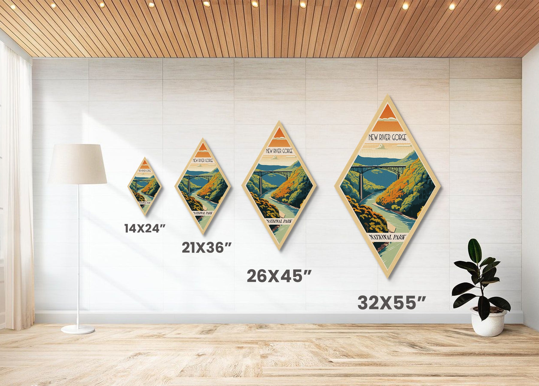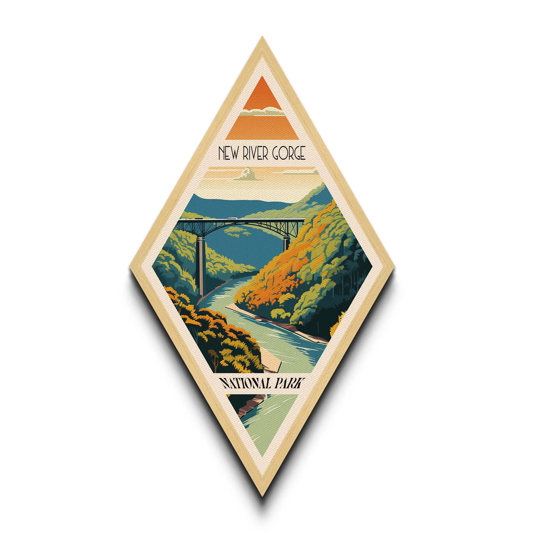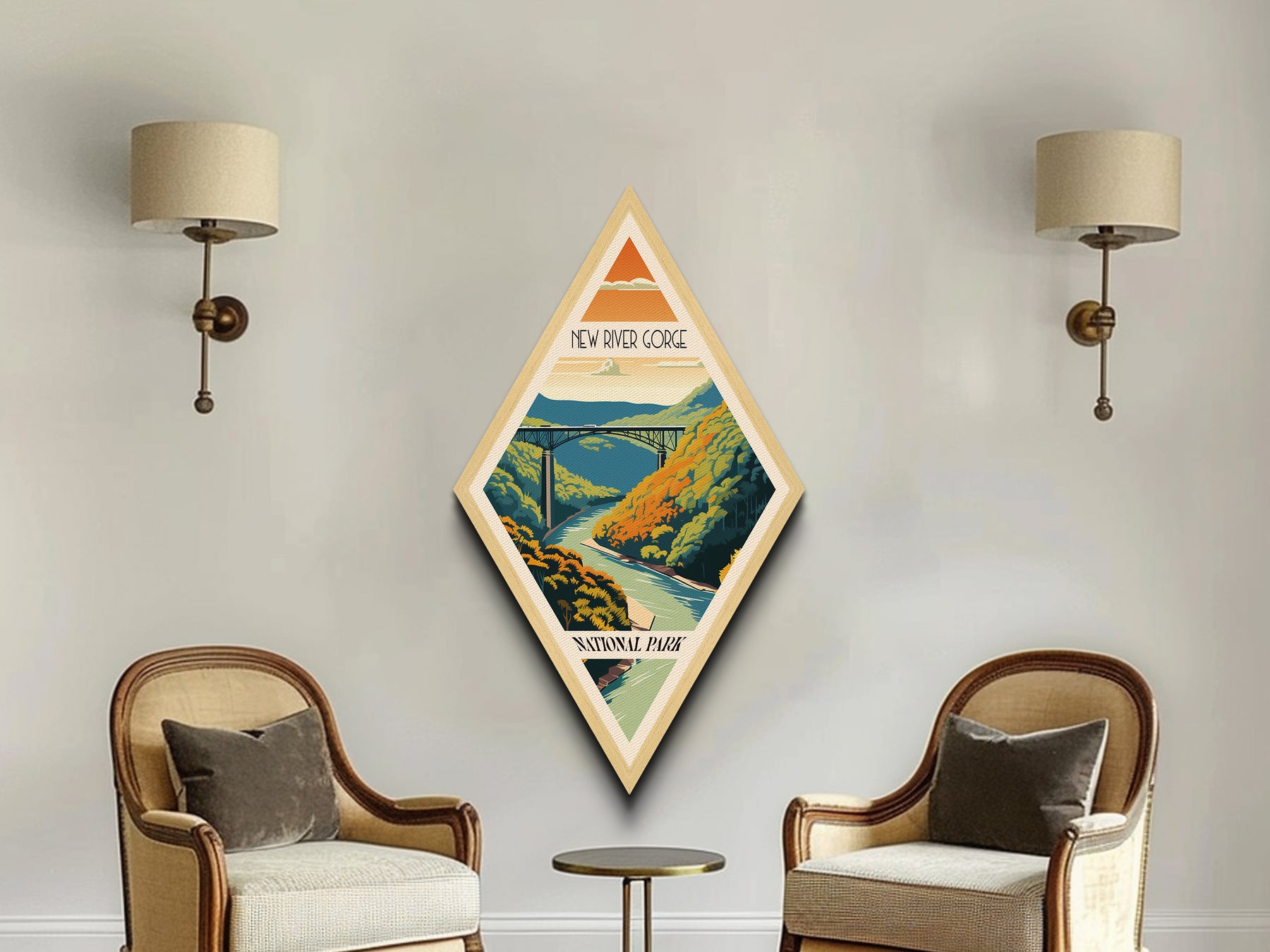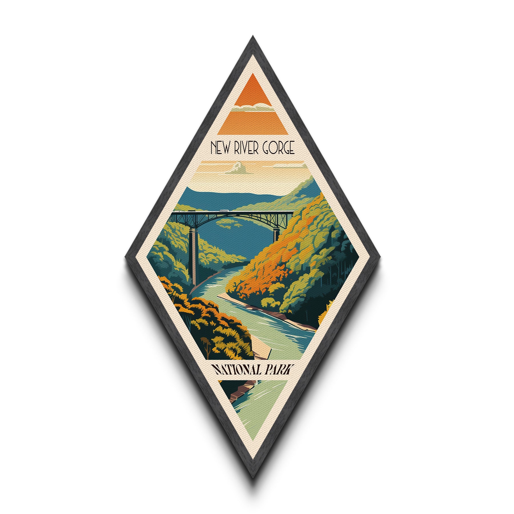 New River Gorge National Park Diamond Formed Adventure Print Canvas Art Print, Canvas Wall Art, Travel Gift, West Virginia Travel Art