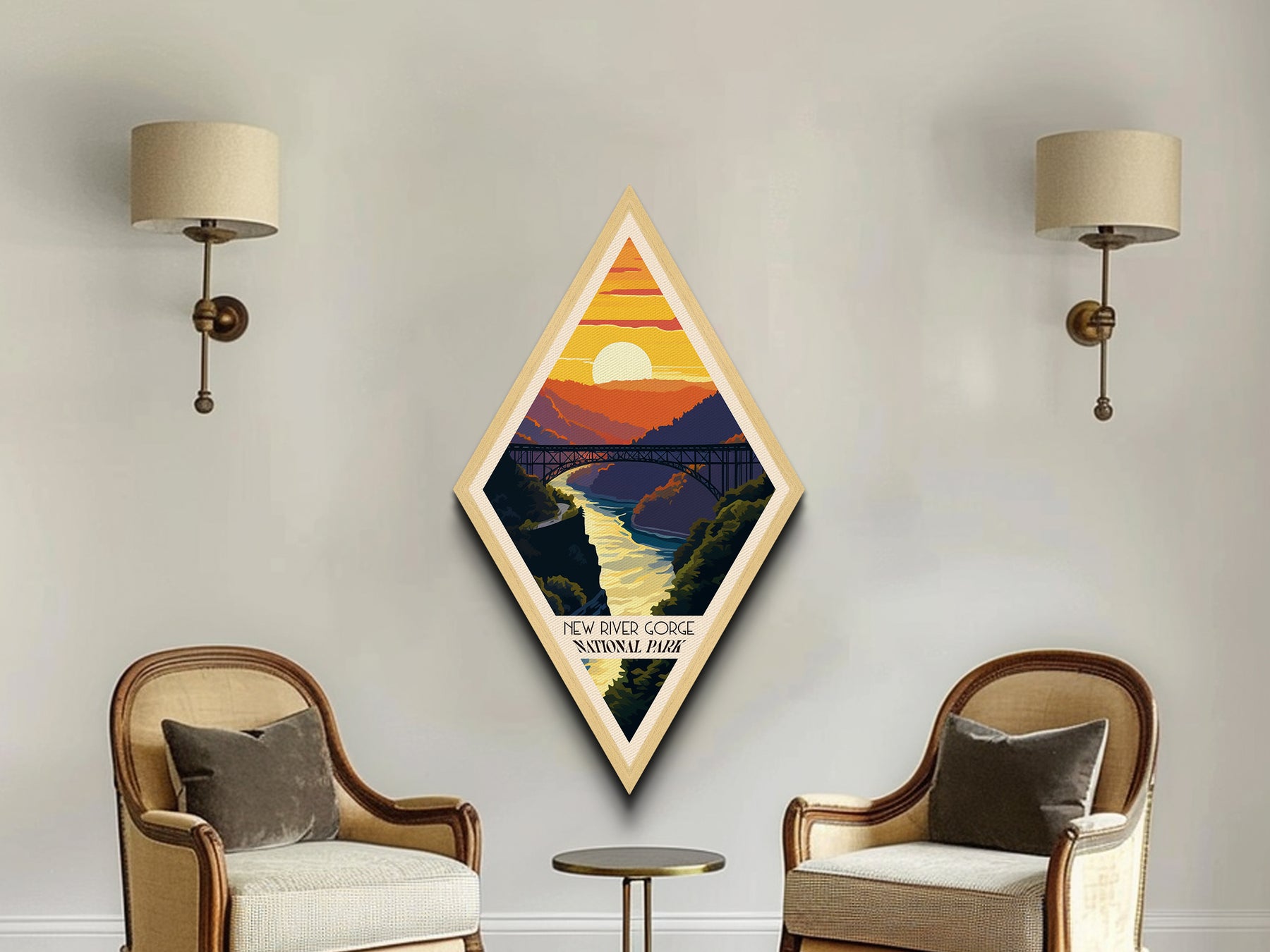 New River Gorge National Park Travel Poster Canvas Texture Print, Travel Decor Art, Midcentury Modern Retro Decor West Virginia Travel Art