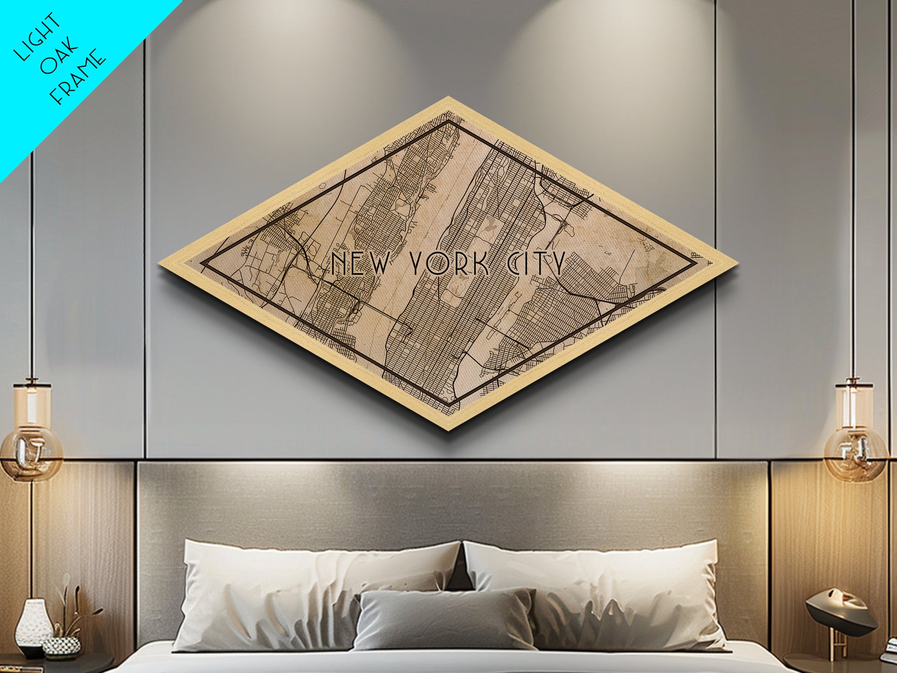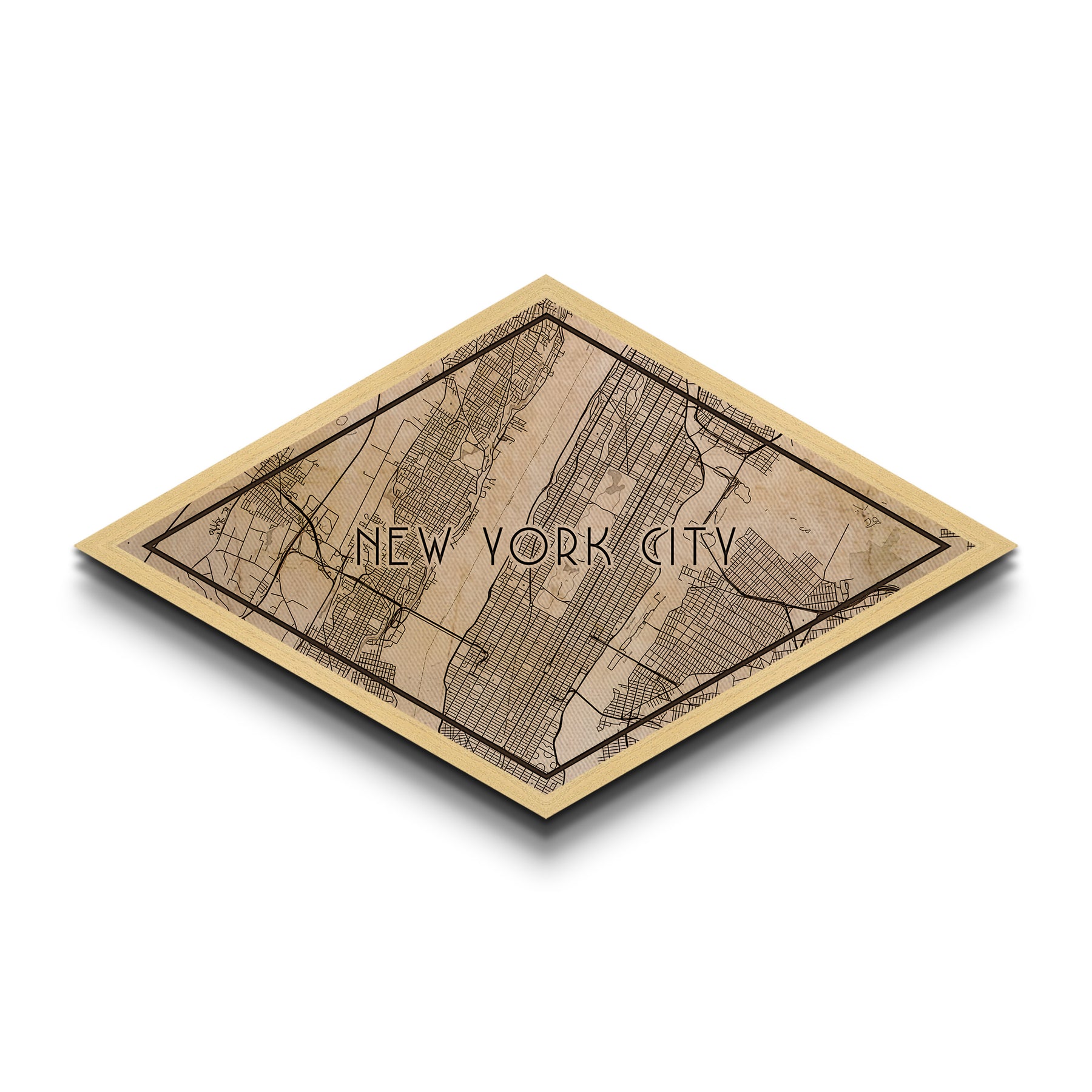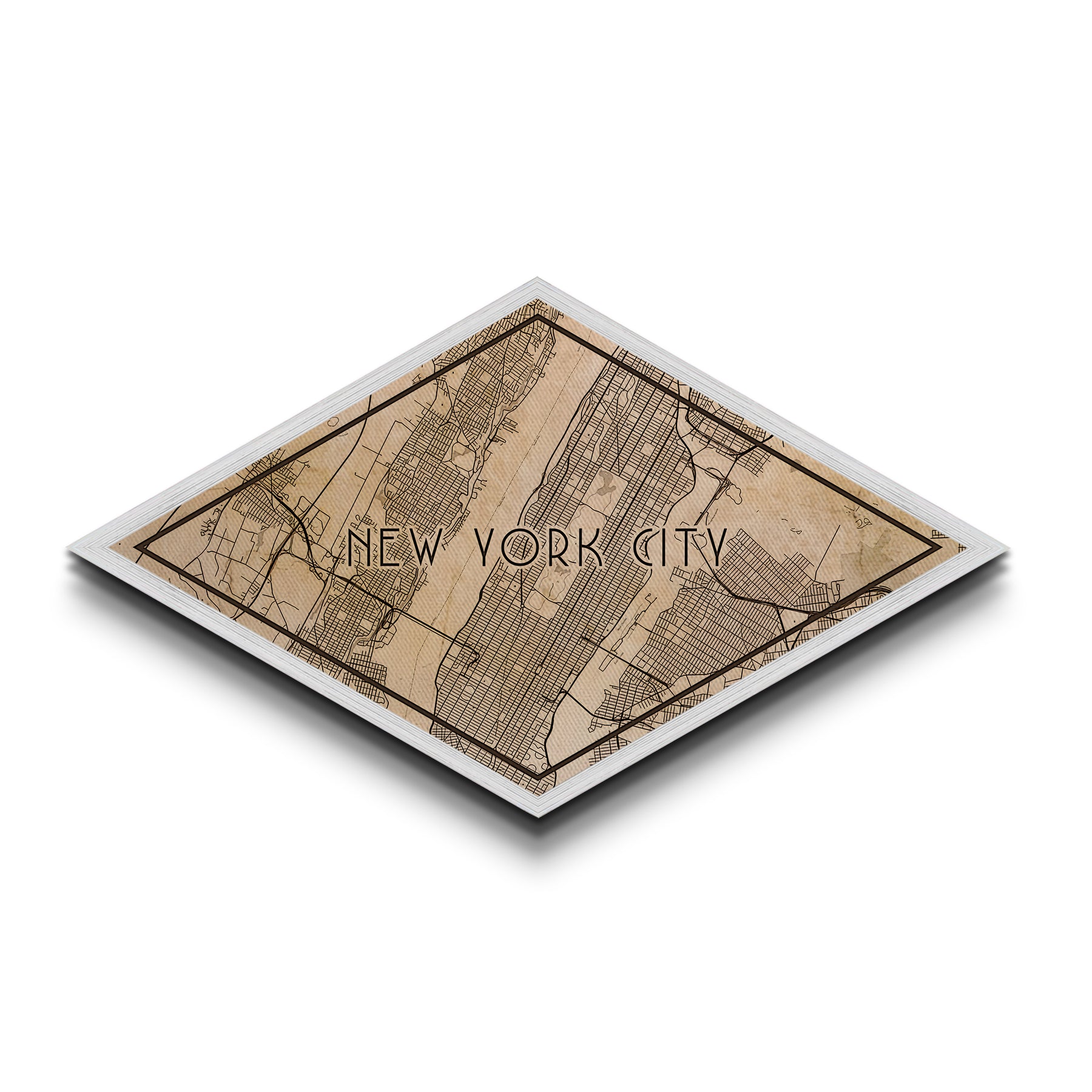 New York Diamond Shaped City Map, Custom Diamond Shaped Wall Art, City Map Canvas
