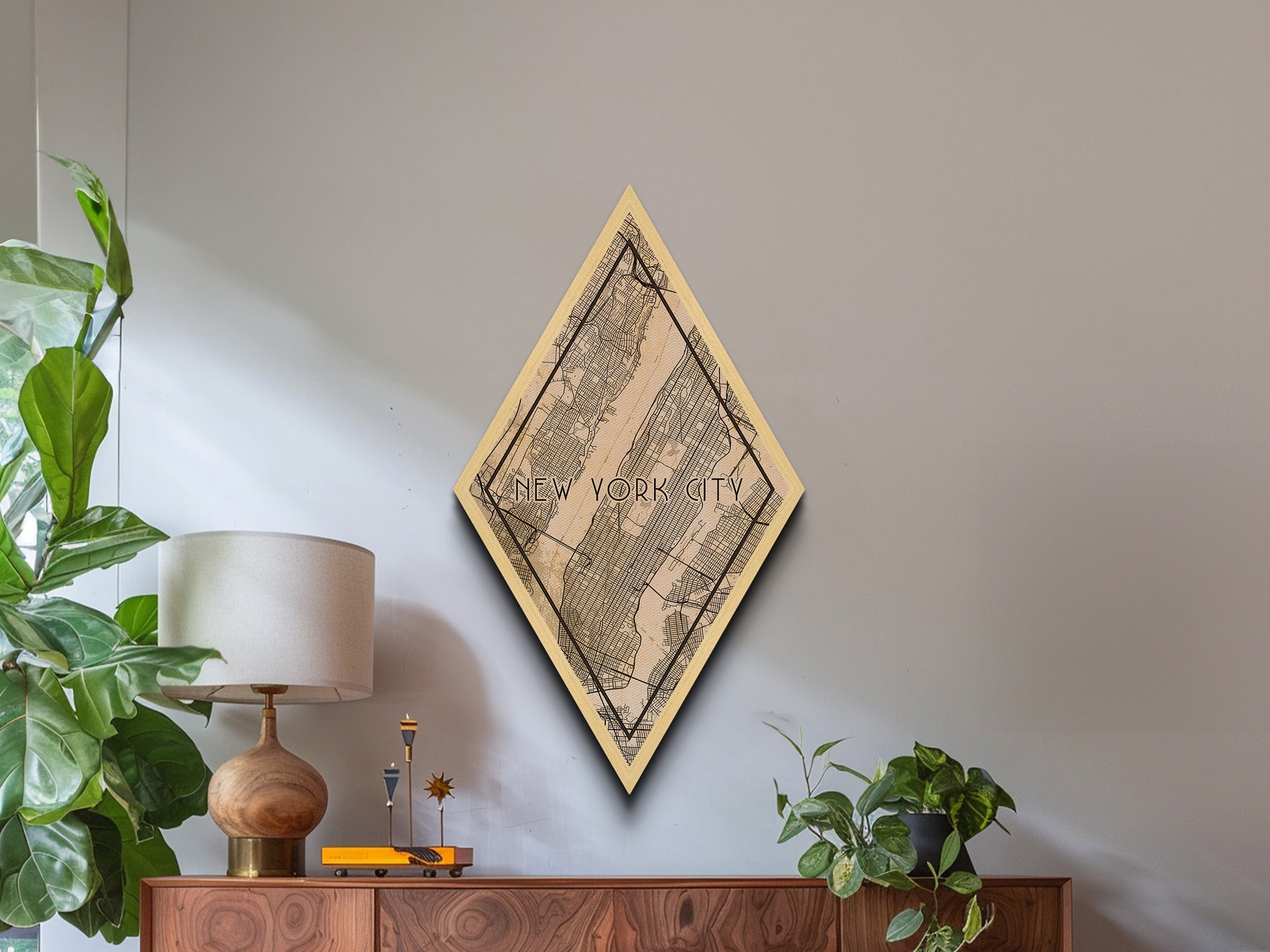 New York Diamond Shaped Travel Poster, Custom Diamond Shaped Wall Art, City Map Canvas
