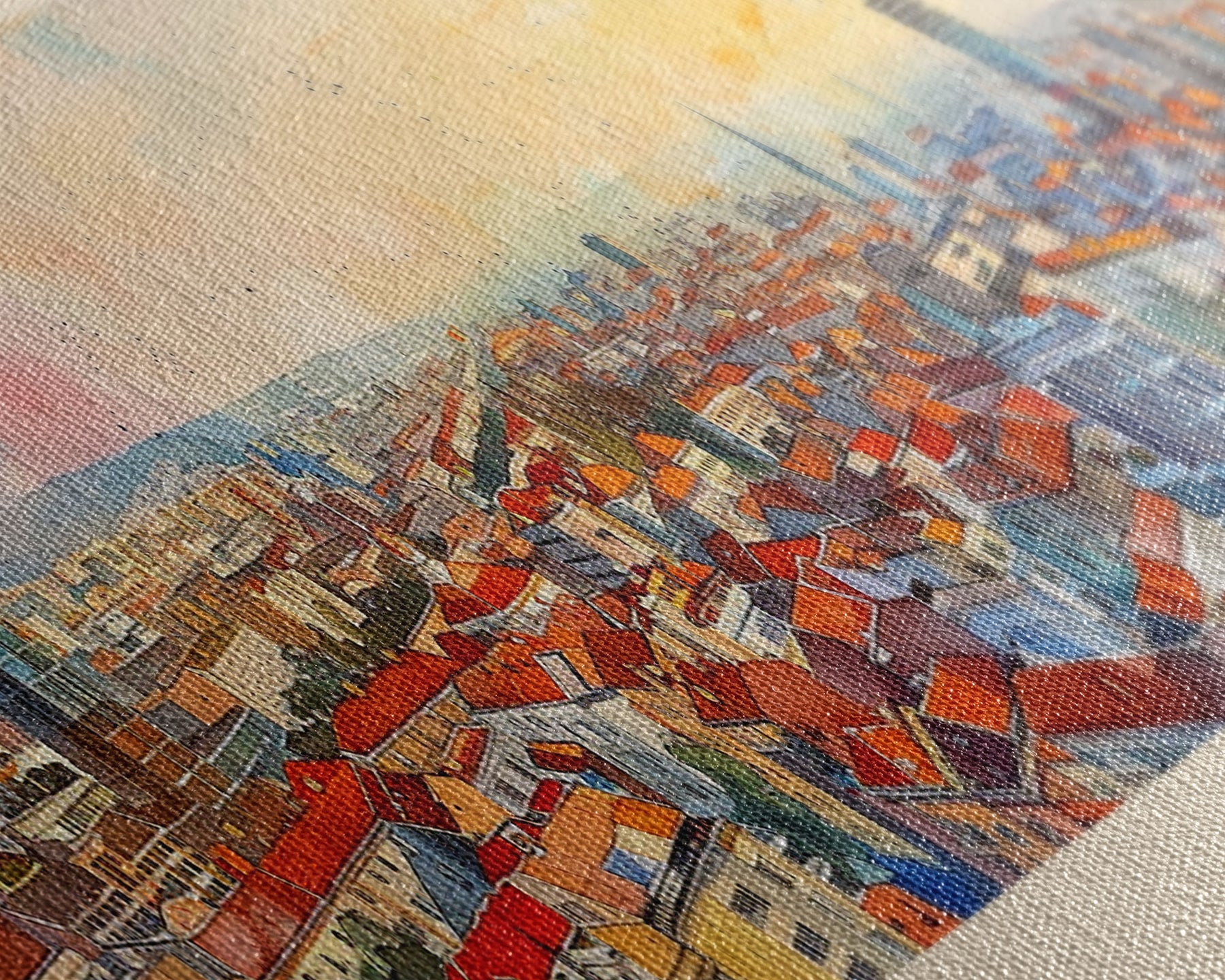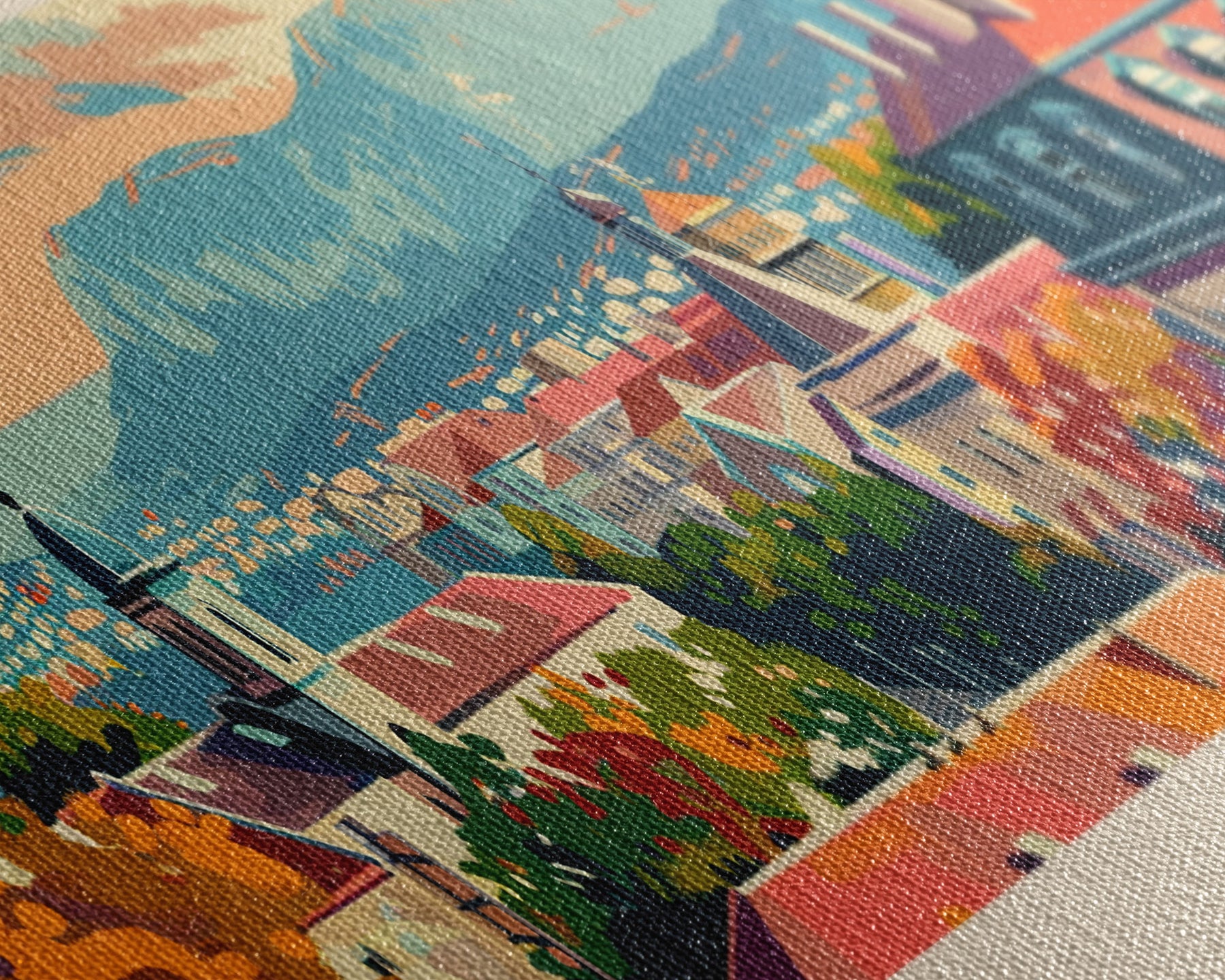 Most of our canvases are made in the USA, with the exception of canvases ordered with the light oak unstained frames, and any large canvases (24x48, 30x60, 16x48 and 20x60) ordered WITH a frame. These are temporarily made in and shipped from Europe, while we try to find a more consistent supplier in the USA.