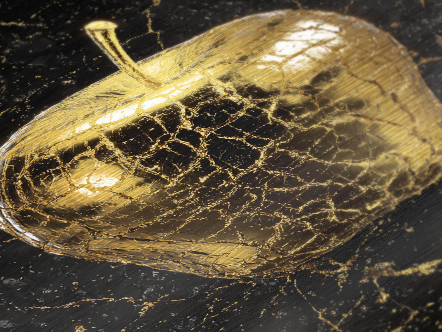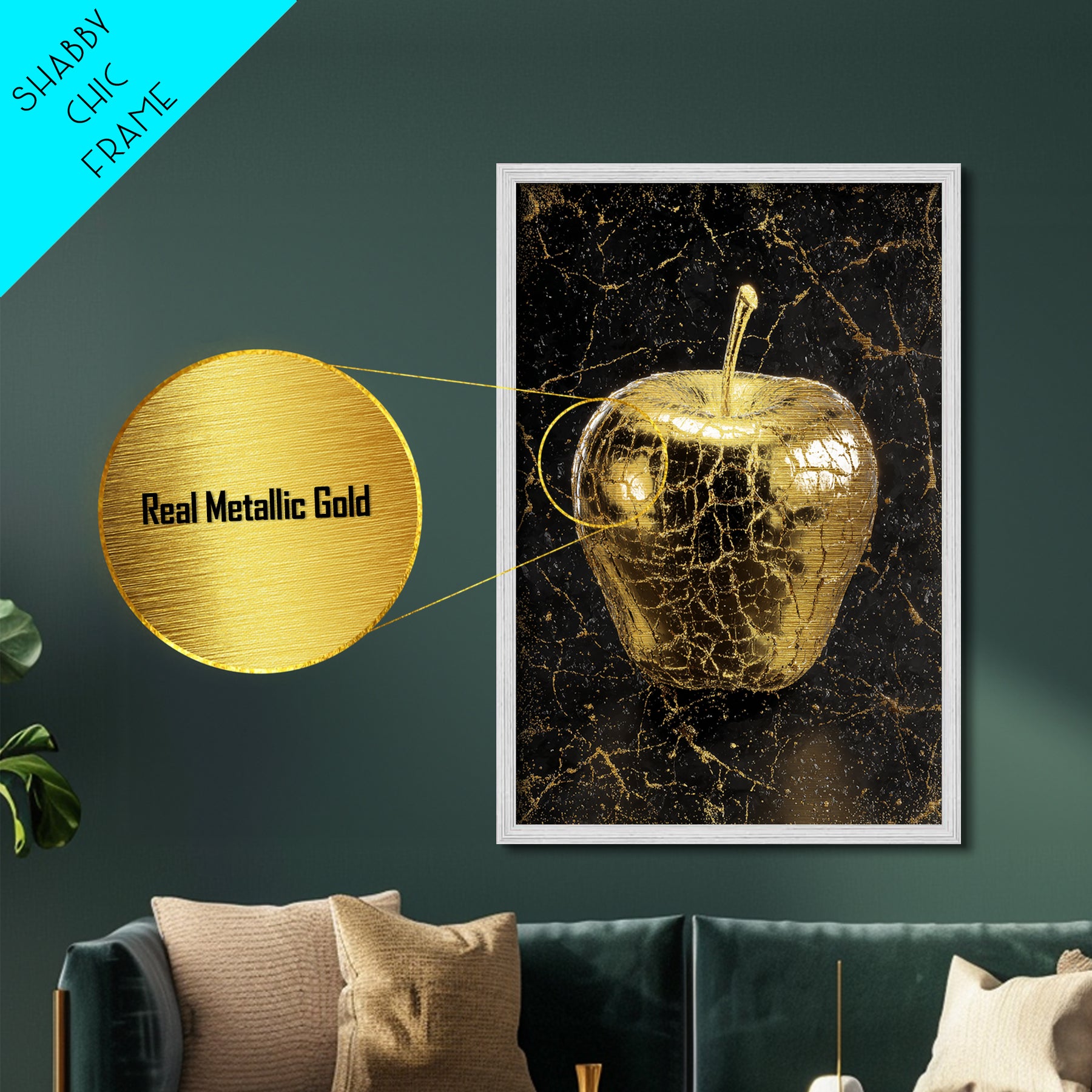 Nordic Mythology Golden Apple Metallic Gold Art Metal Art, Unique Norse Symbol Wall Decor with real wood frame