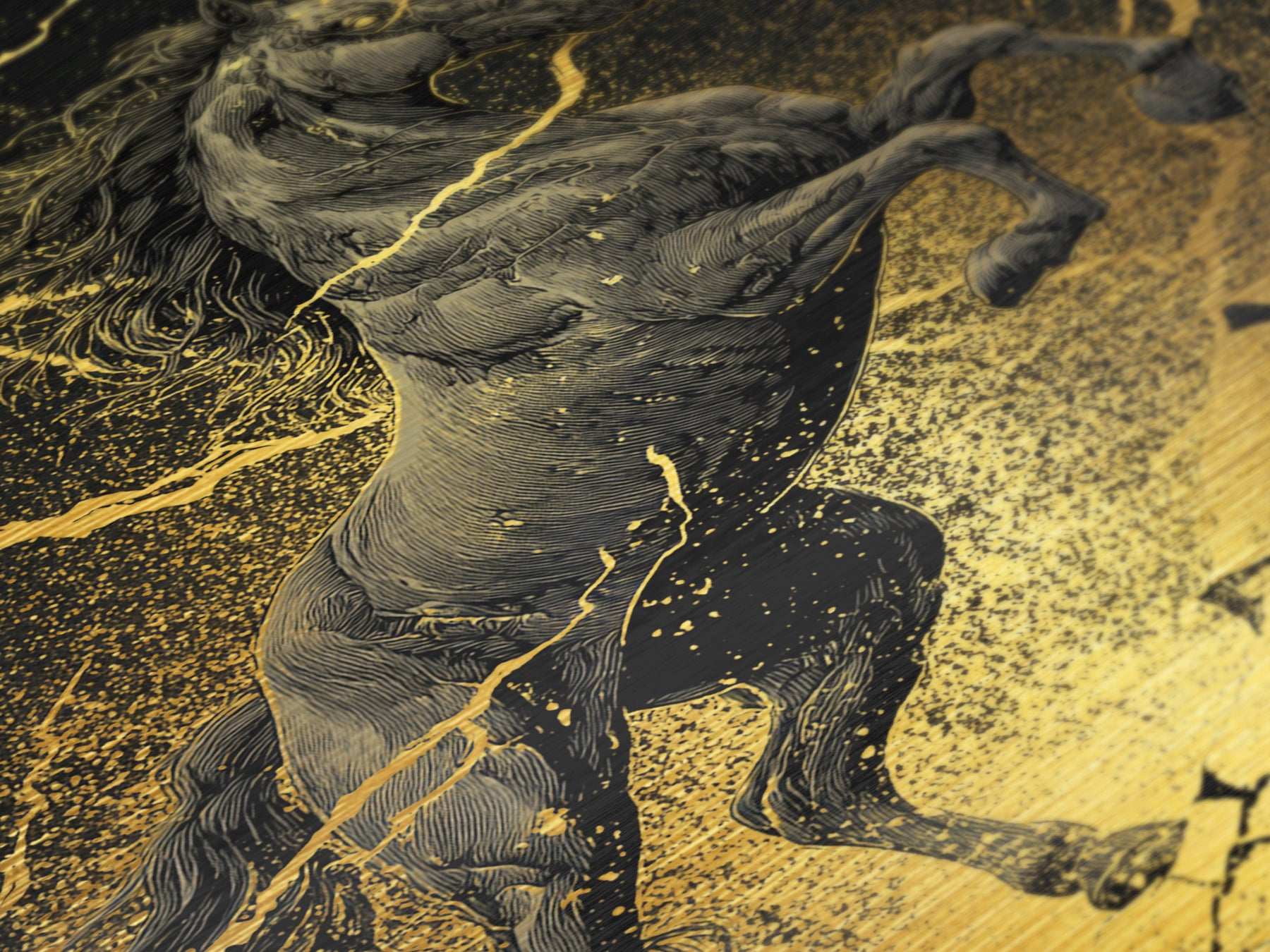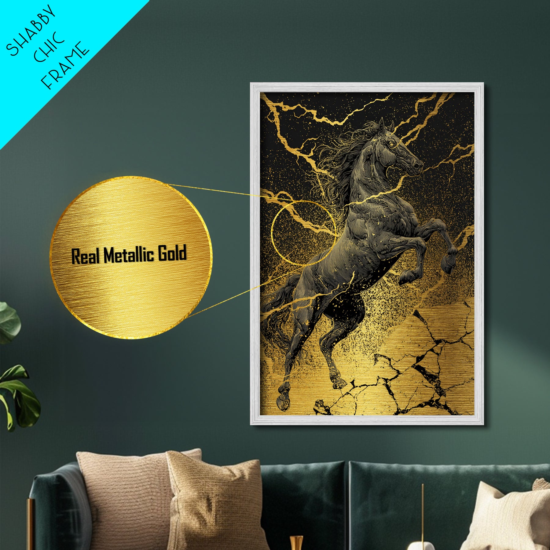 Nordic Sleipnir Horse of Odin Metal Art Metallic Gold Art Wall Decor Dad Gift Mythology Office Art with handcrafted wood frame