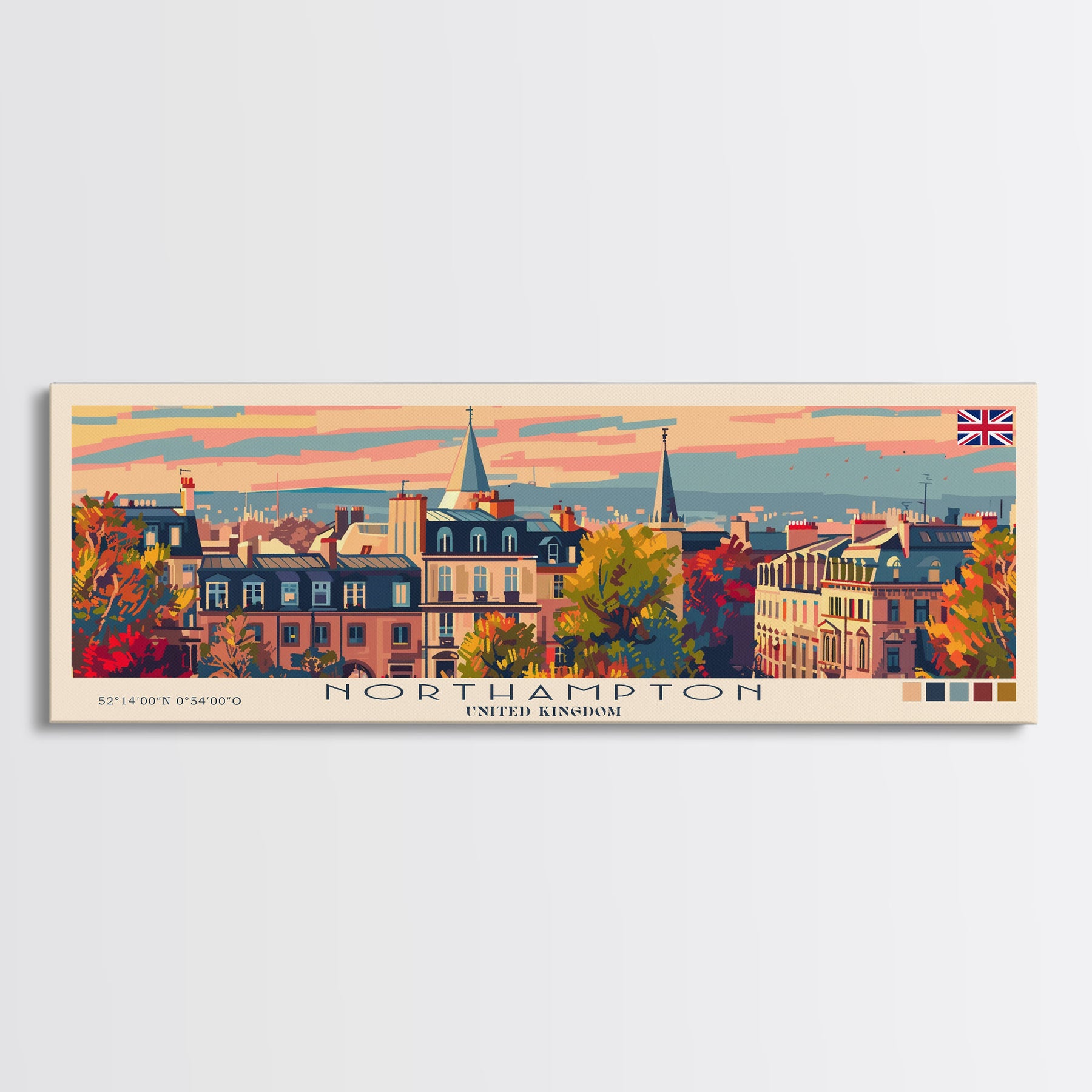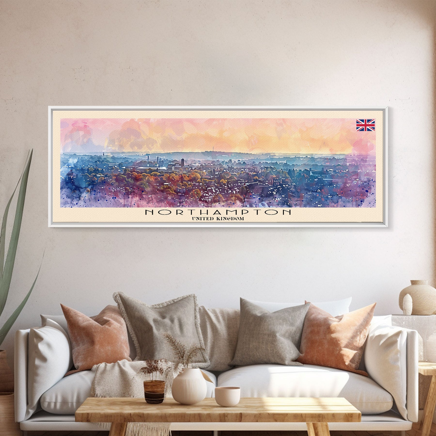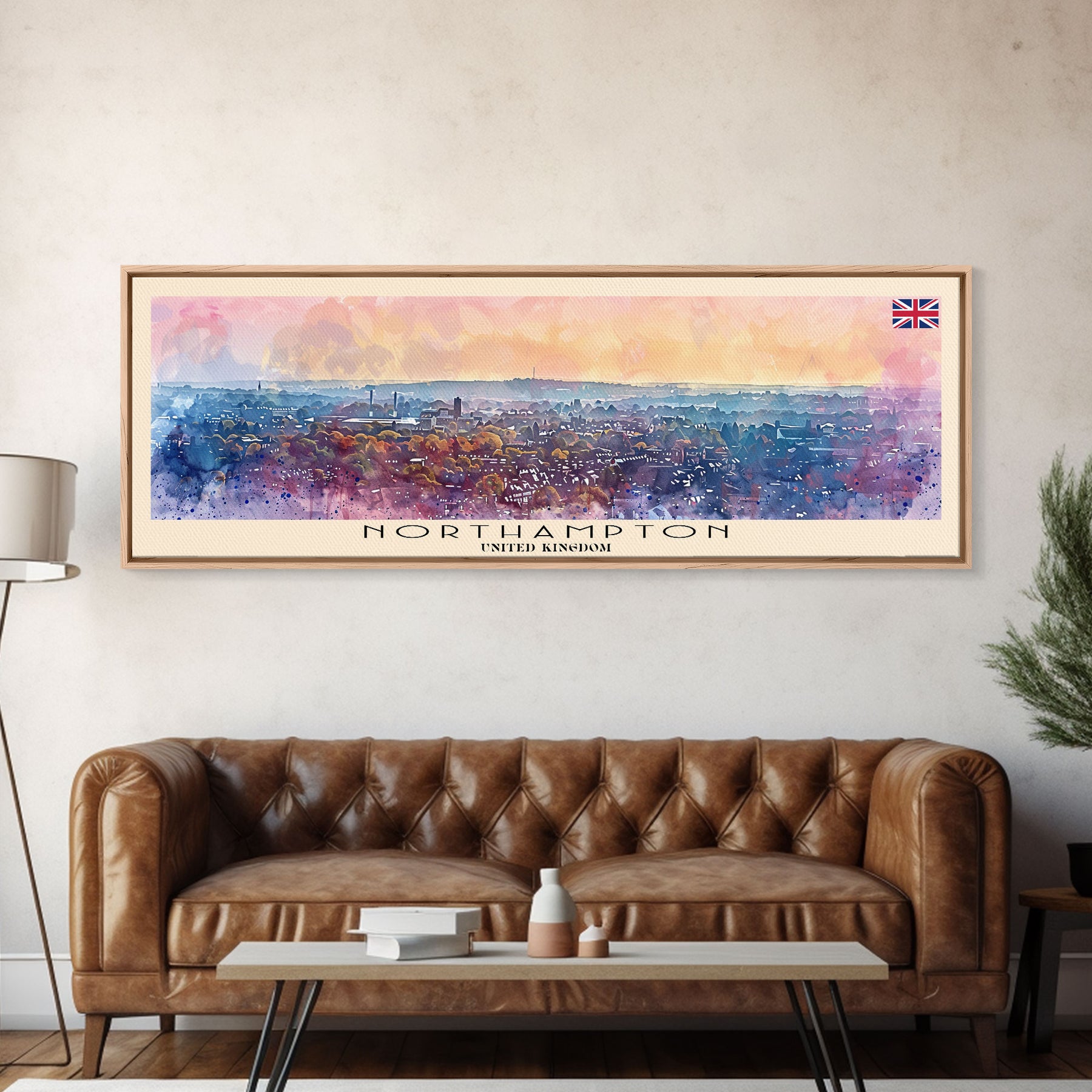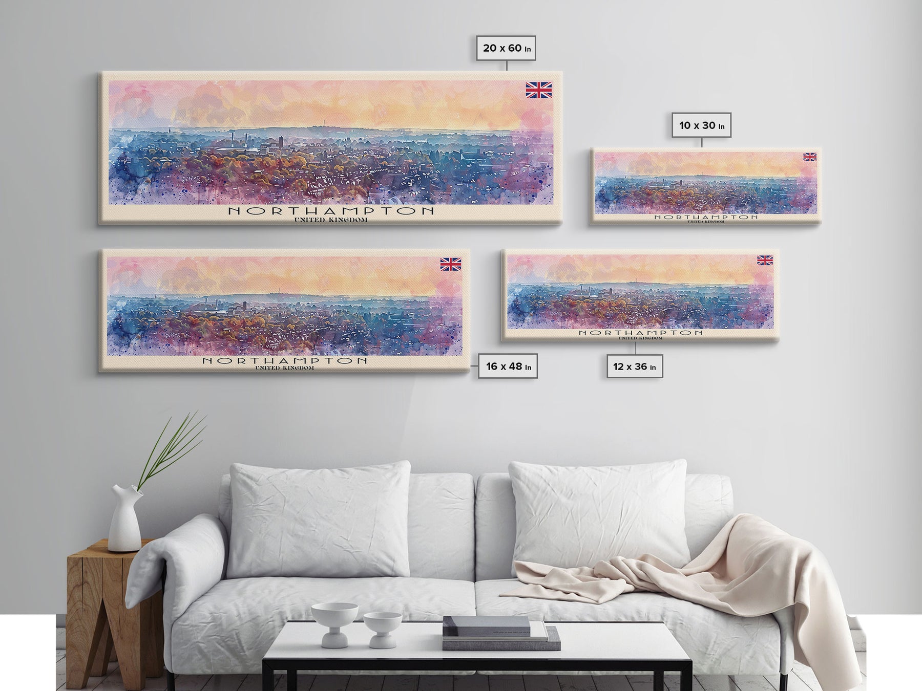 Northampton United Kingdom Travel Art, City Art, Framed Canvas Print or Metal Wall Art, Europe Travel Poster, Panoramic Wall Art, Extra Wide Wall Art