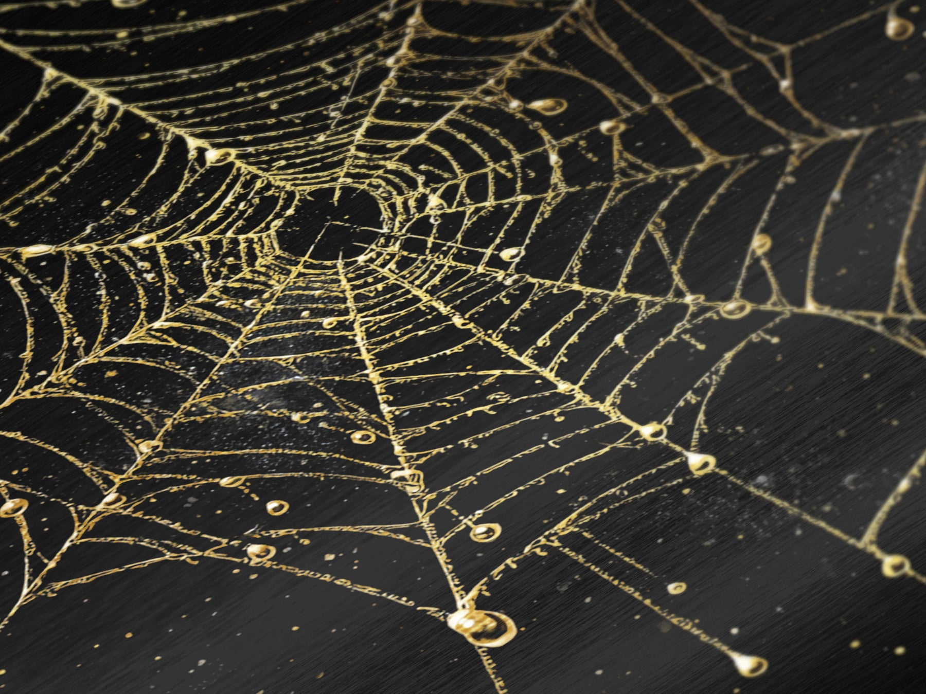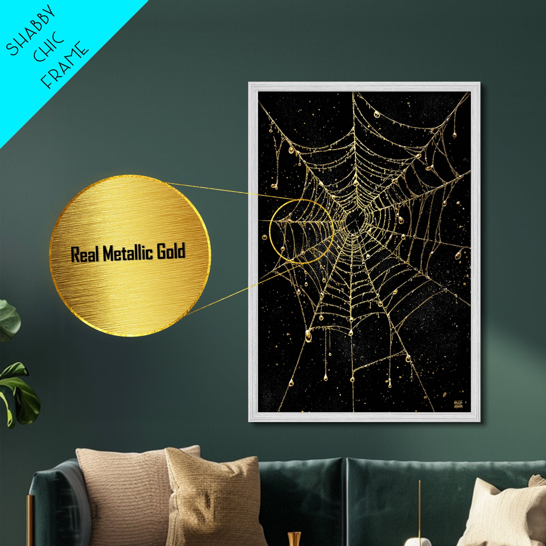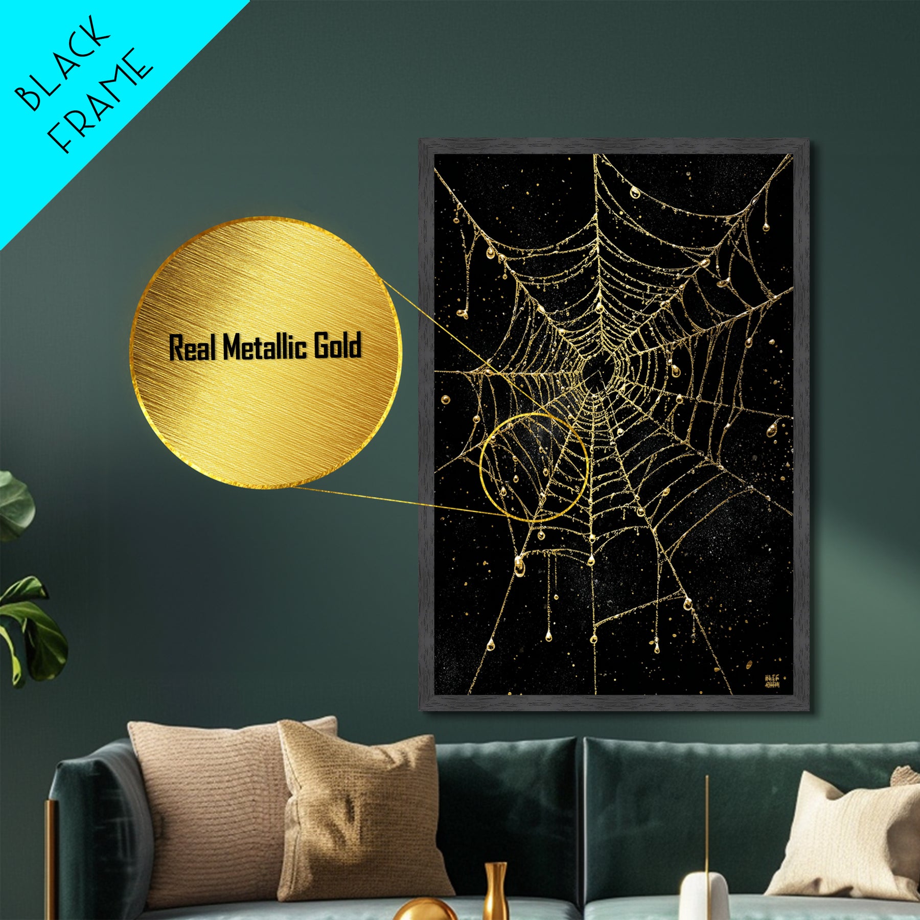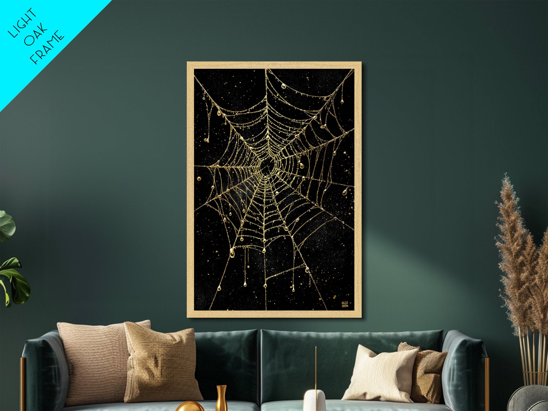 Norse Fate Web Metallic Gold Art, Nordic Metal Art of Urd’s Threads, Viking Office Wall Decor framed in authentic natural wood