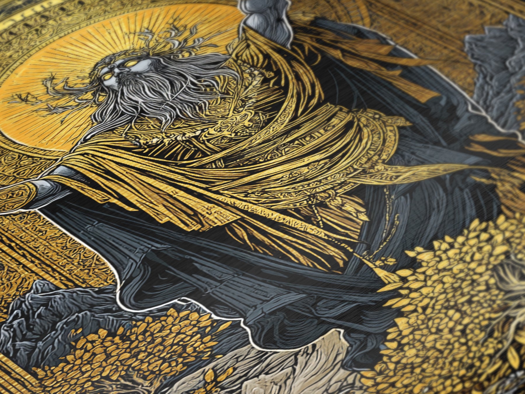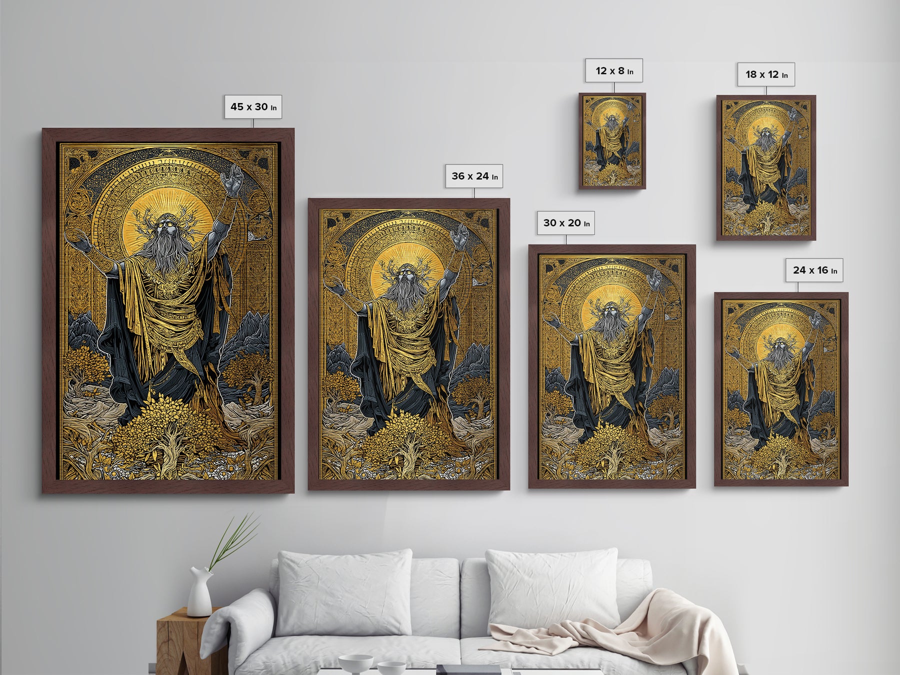 Norse God Metallic Gold Art Metal Art – Odin Inspired Mythology Wall Decor for Office, Man Cave, or Dad Gift, real wood frame