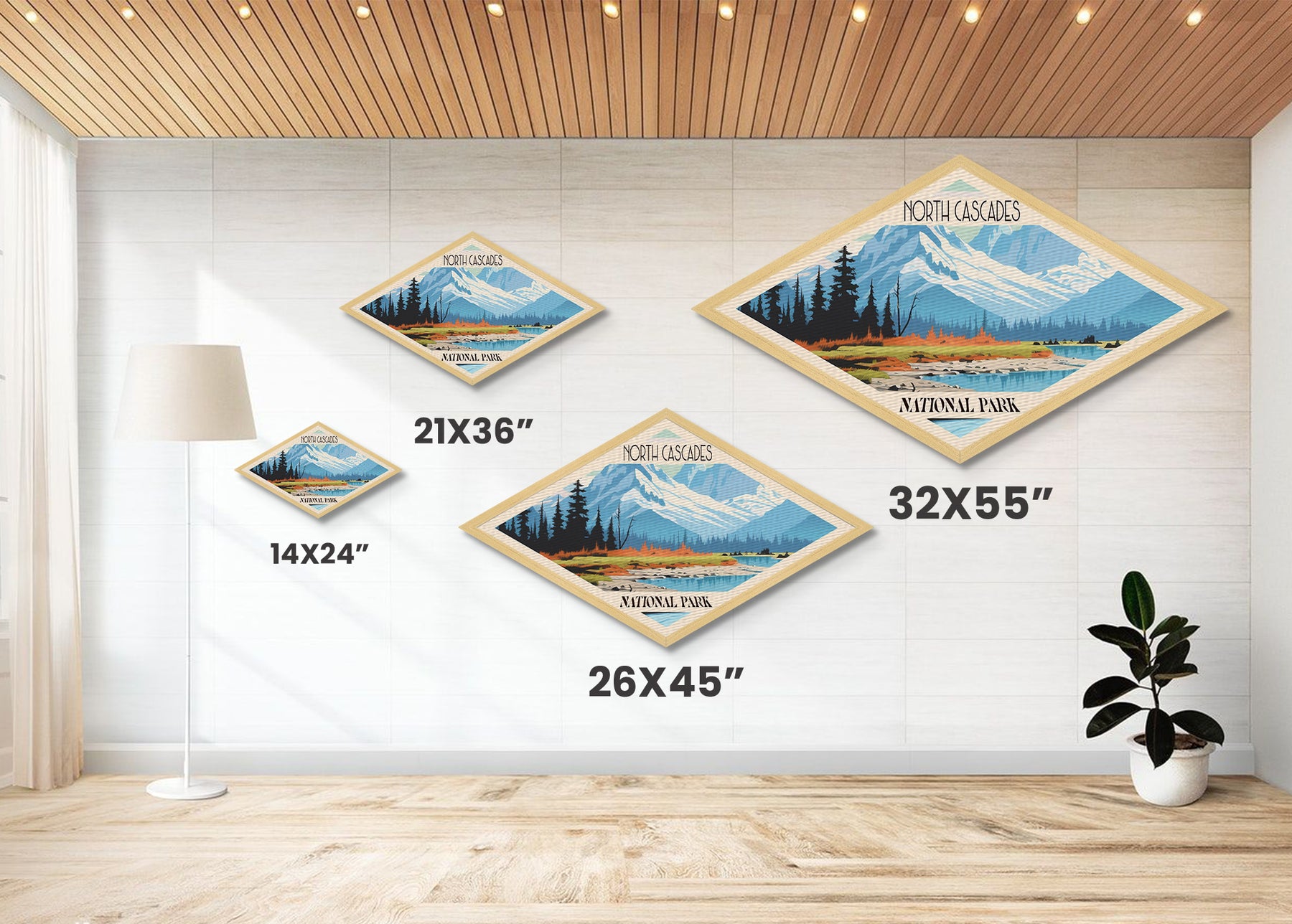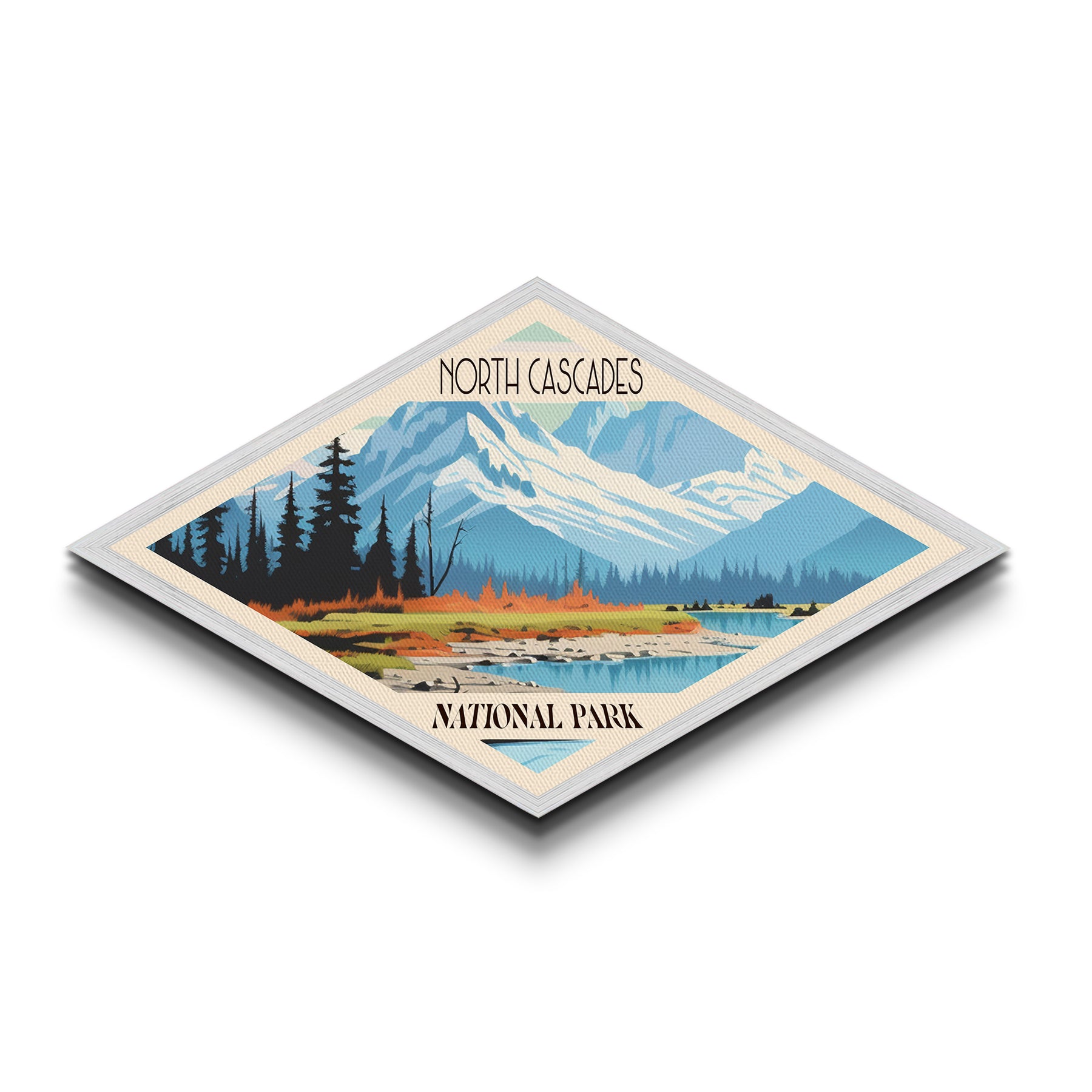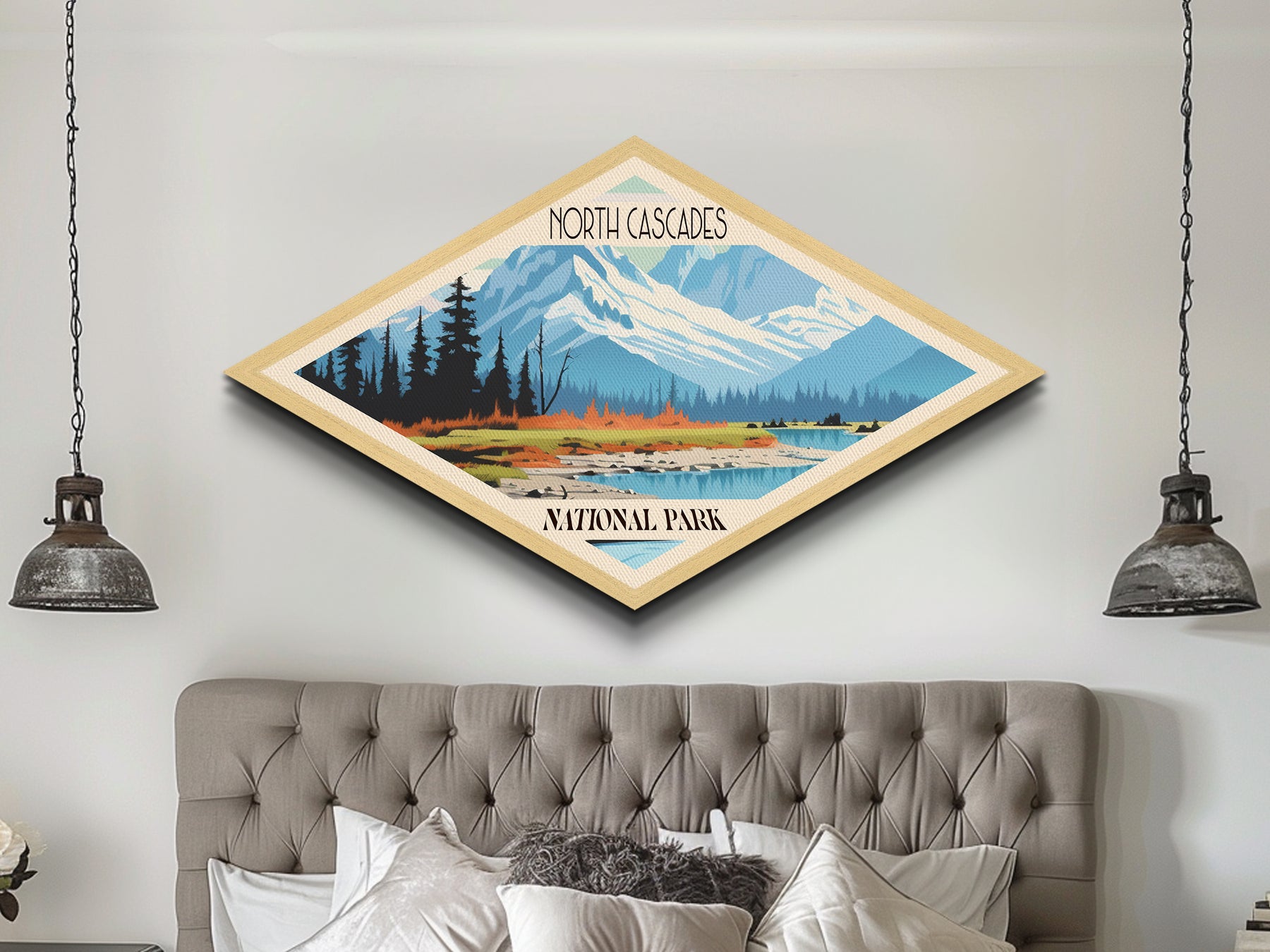 North Cascades National Park Diamond Shaped Travel Poster Art Canvas Art Print, Canvas Wall Art, Travel Gift, Washington Travel Art