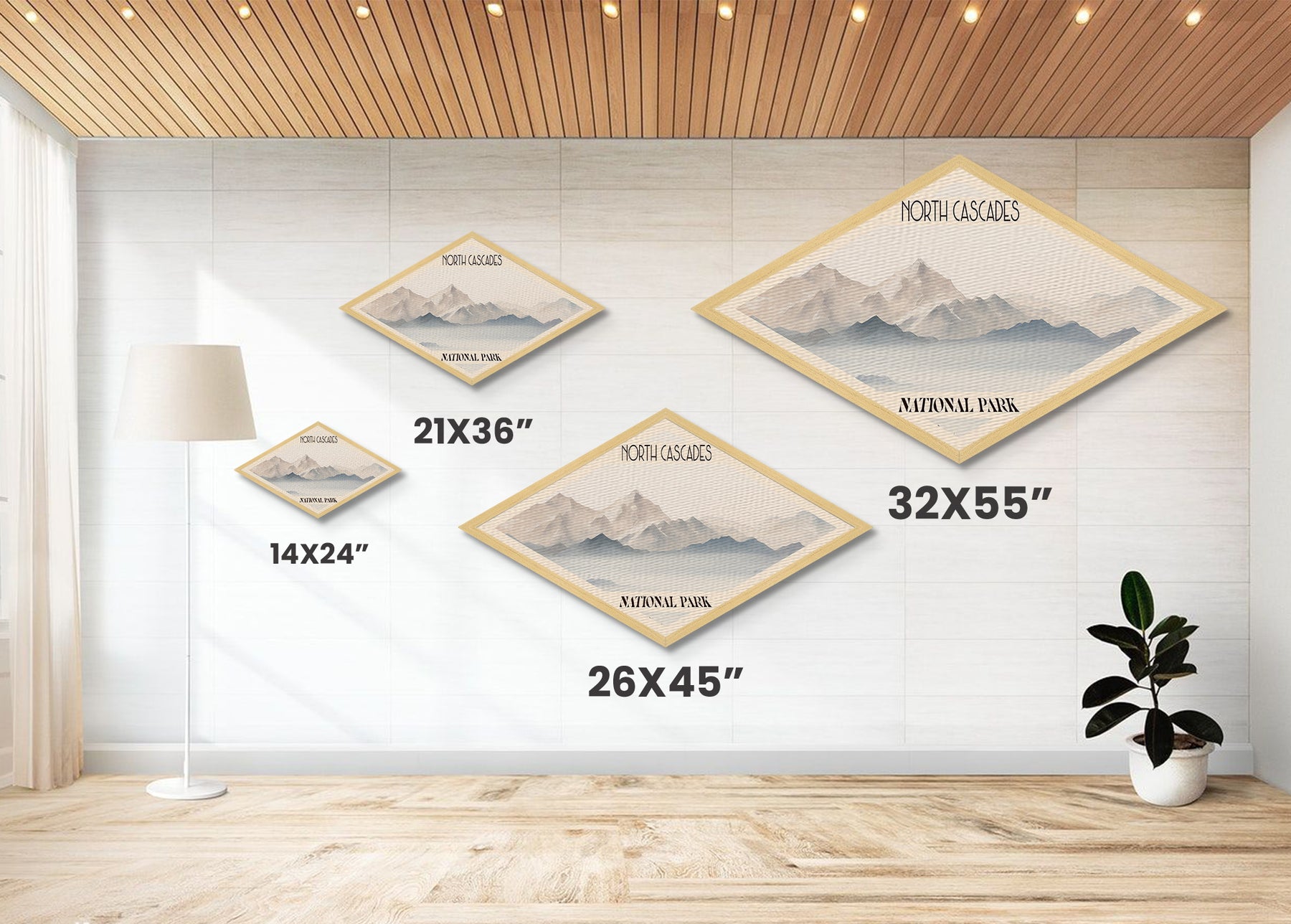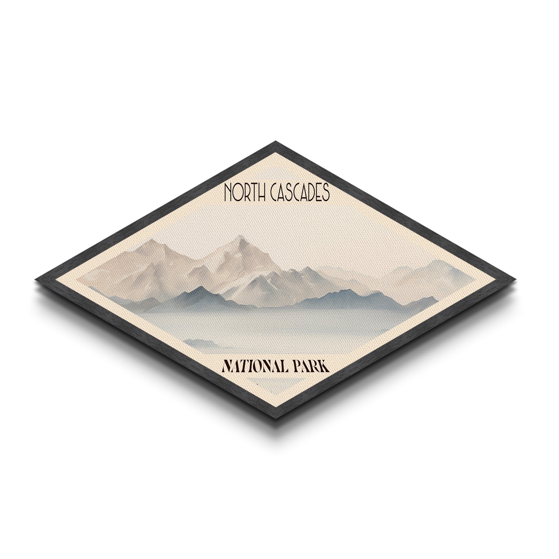 North Cascades National Park Travel Poster Canvas Texture Print, Travel Decor, Midcentury Modern Retro Decor Washington Landscape