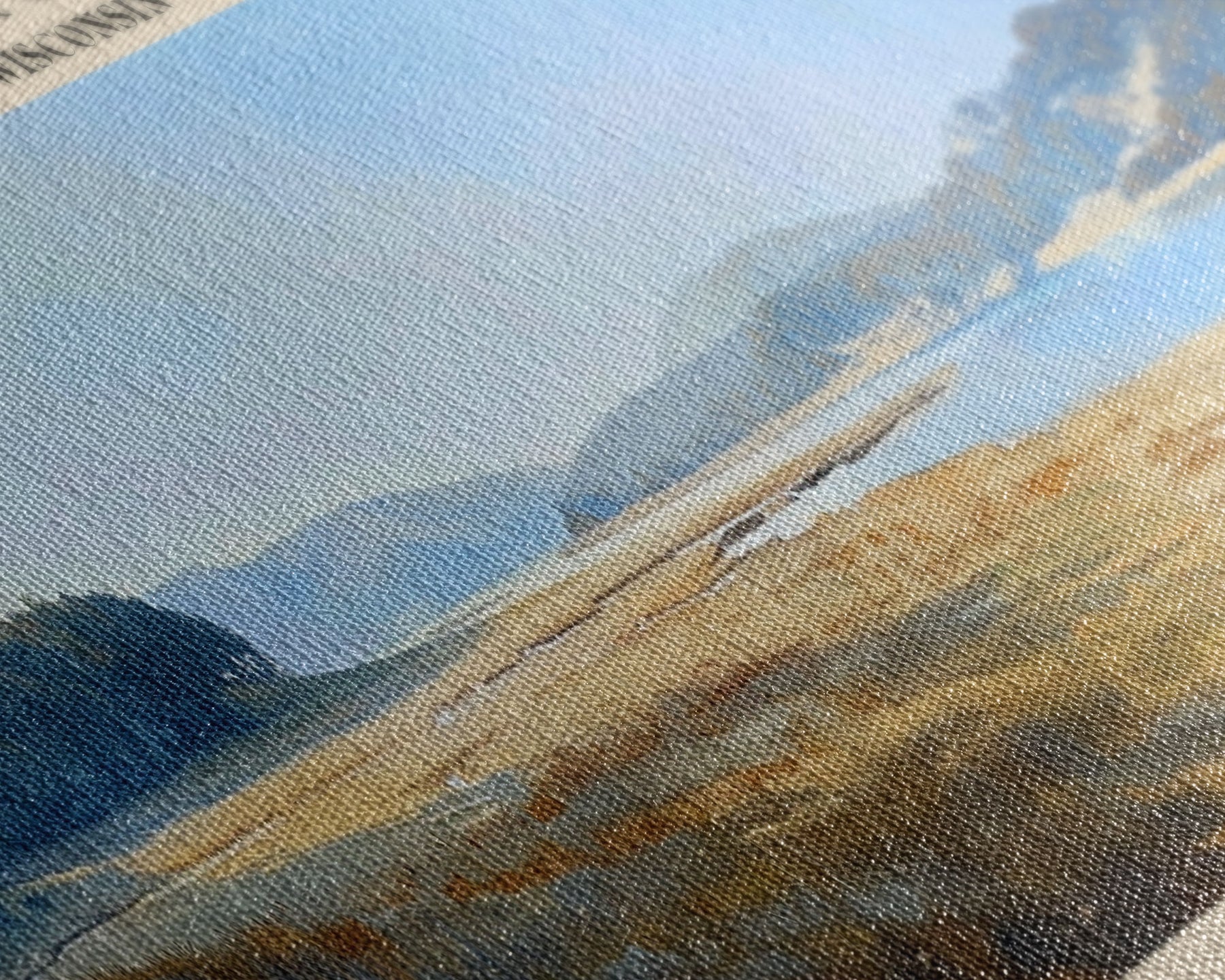 Most of our canvases are made in the USA, with the exception of canvases ordered with the light oak unstained frames, and any large canvases (24x48, 30x60, 16x48 and 20x60) ordered WITH a frame. These are temporarily made in and shipped from Europe, while we try to find a more consistent supplier in the USA.