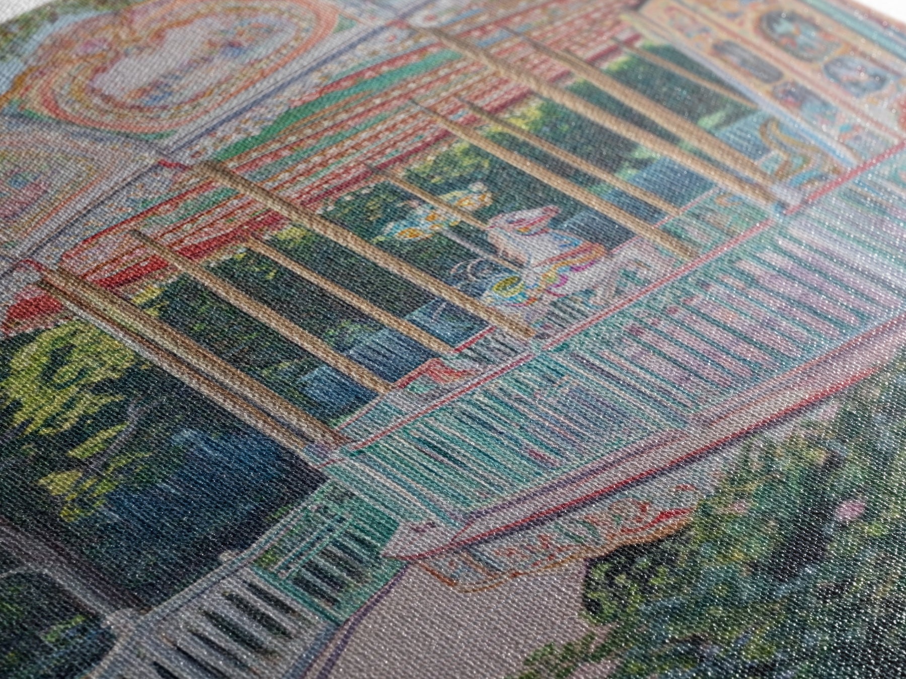 Most of our canvases are made in the USA, with the exception of canvases ordered with the light oak unstained frames, and any large canvases (24x48, 30x60, 16x48 and 20x60) ordered WITH a frame. These are temporarily made in and shipped from Europe, while we try to find a more consistent supplier in the USA.