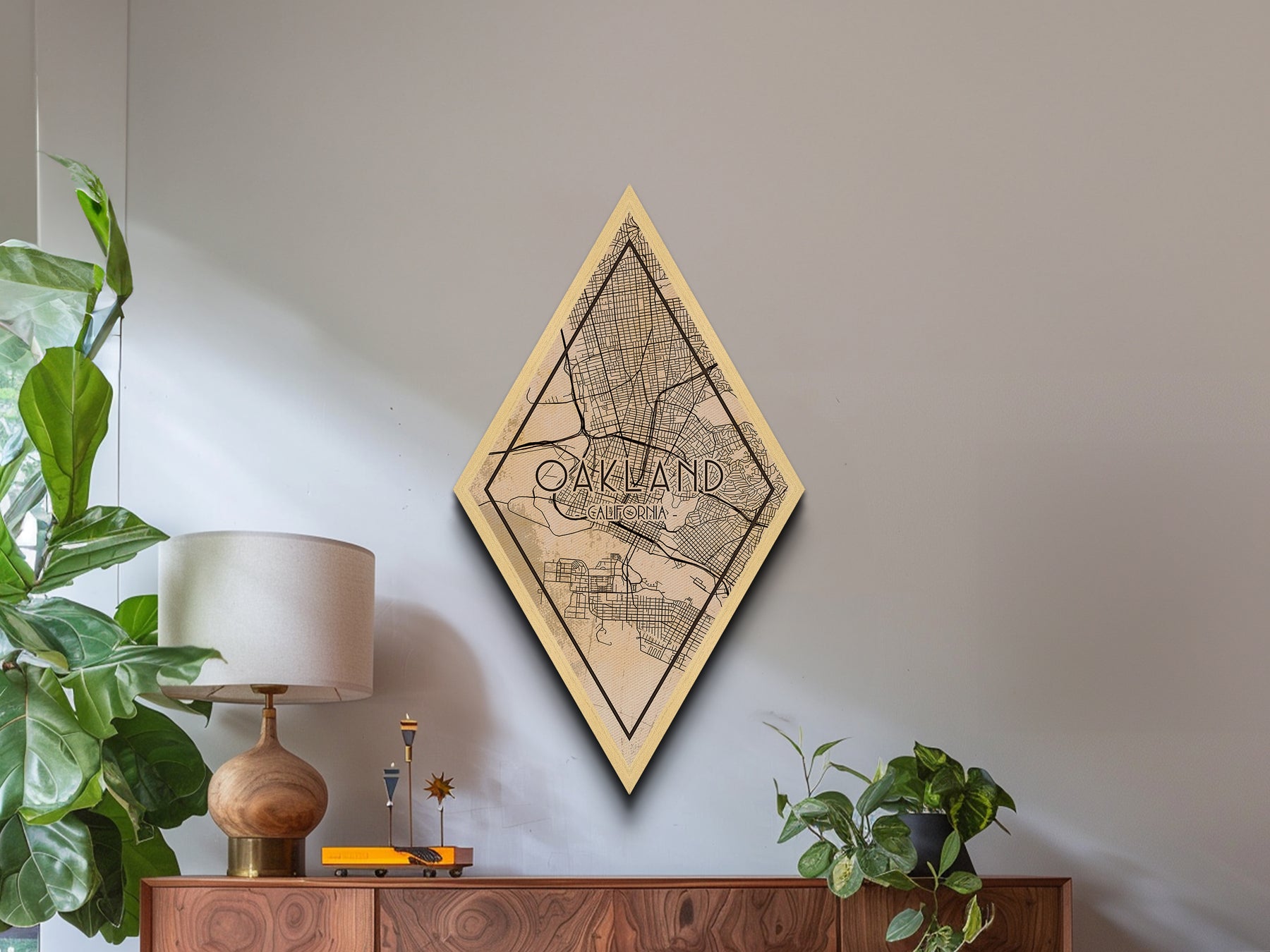 Oakland Diamond Shaped Travel Poster, Custom Diamond Shaped Wall Art, City Map Canvas