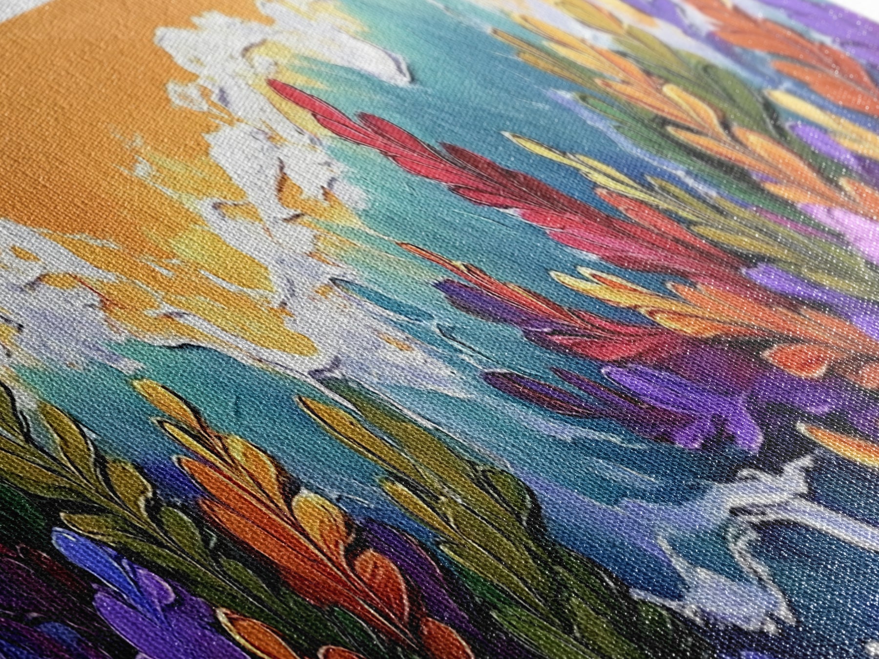 Most of our canvases are made in the USA, with the exception of canvases ordered with the light oak unstained frames, and any large canvases (24x48, 30x60, 16x48 and 20x60) ordered WITH a frame. These are temporarily made in and shipped from Europe, while we try to find a more consistent supplier in the USA.