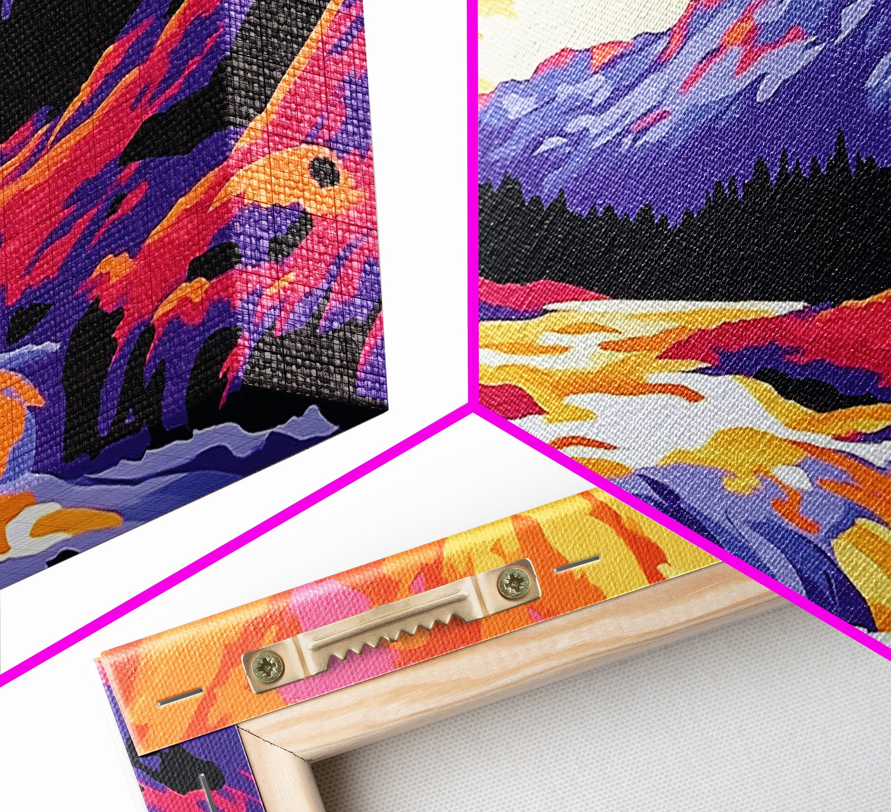 Hello and thank you for taking the time to view our modern high quality giclée artwork! We offer both posters and stretched canvas prints. Our posters are printed on Ultra Matte 60 lb / 230 GSM high quality photo paper, with a thickness of 10 mil. Our canvases are printed on museum grade 350 GSM canvas material with ECO friendly archival grade ink, then hand stretched and stapled over premium, FSC certified and shrink resistant frames. Designed and built to last a lifetime.