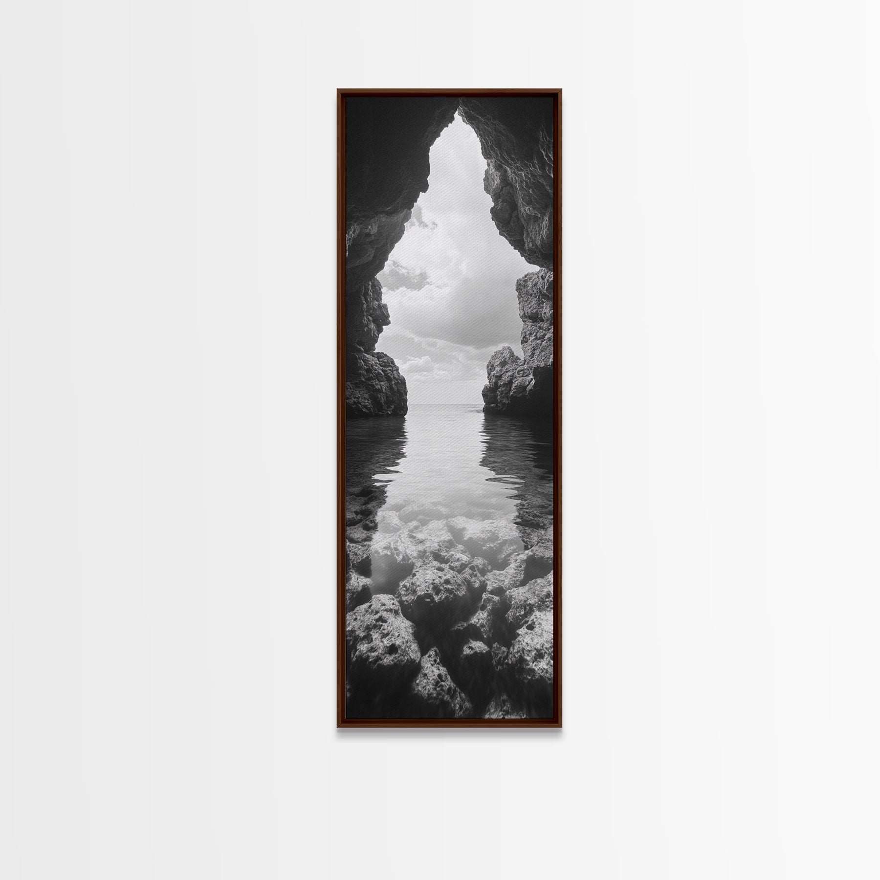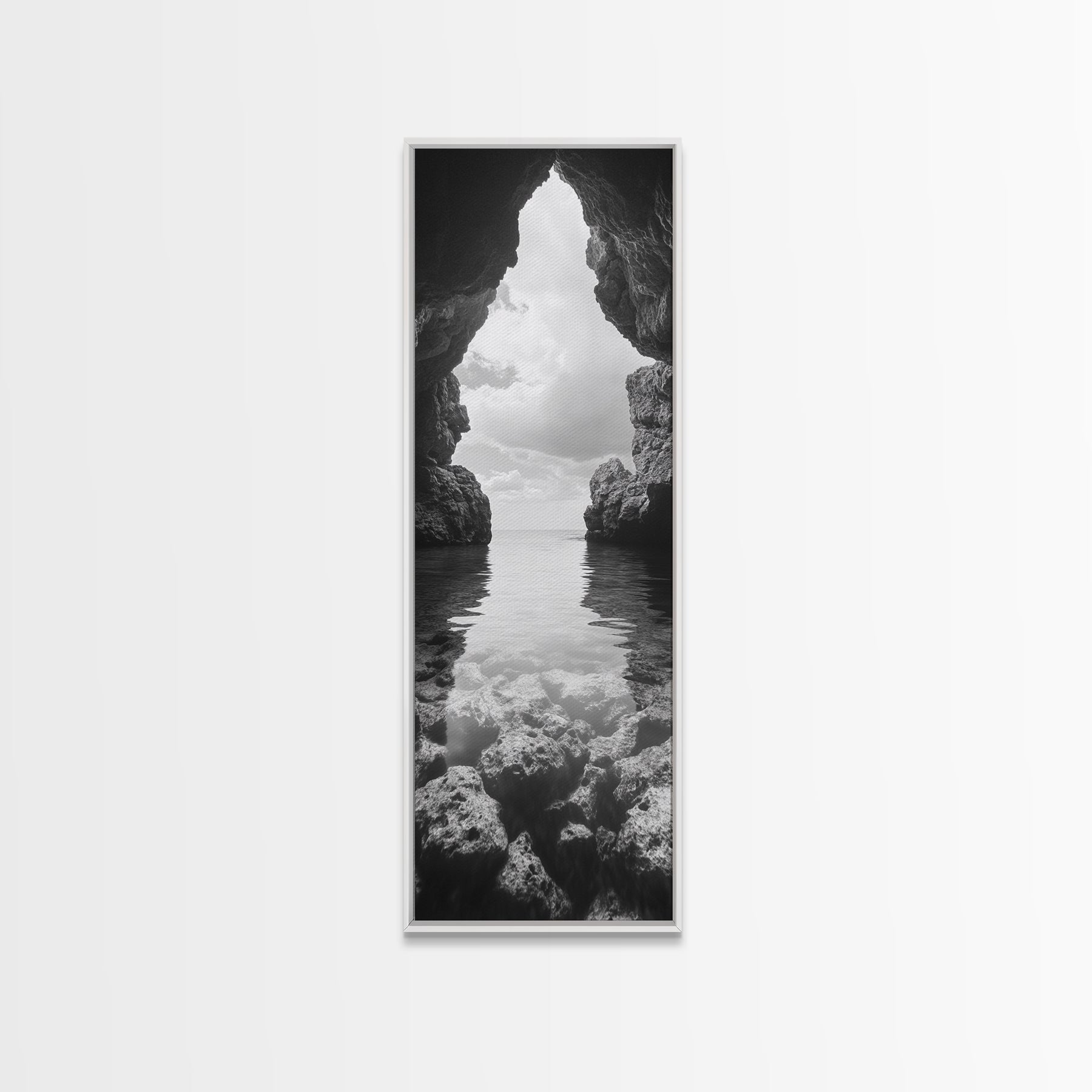Ocean Cave View, Coastal Nature Art, Seaside Wall Decor, Minimalist Seascape Print, Bathroom Wall Art, Framed Canvas Print