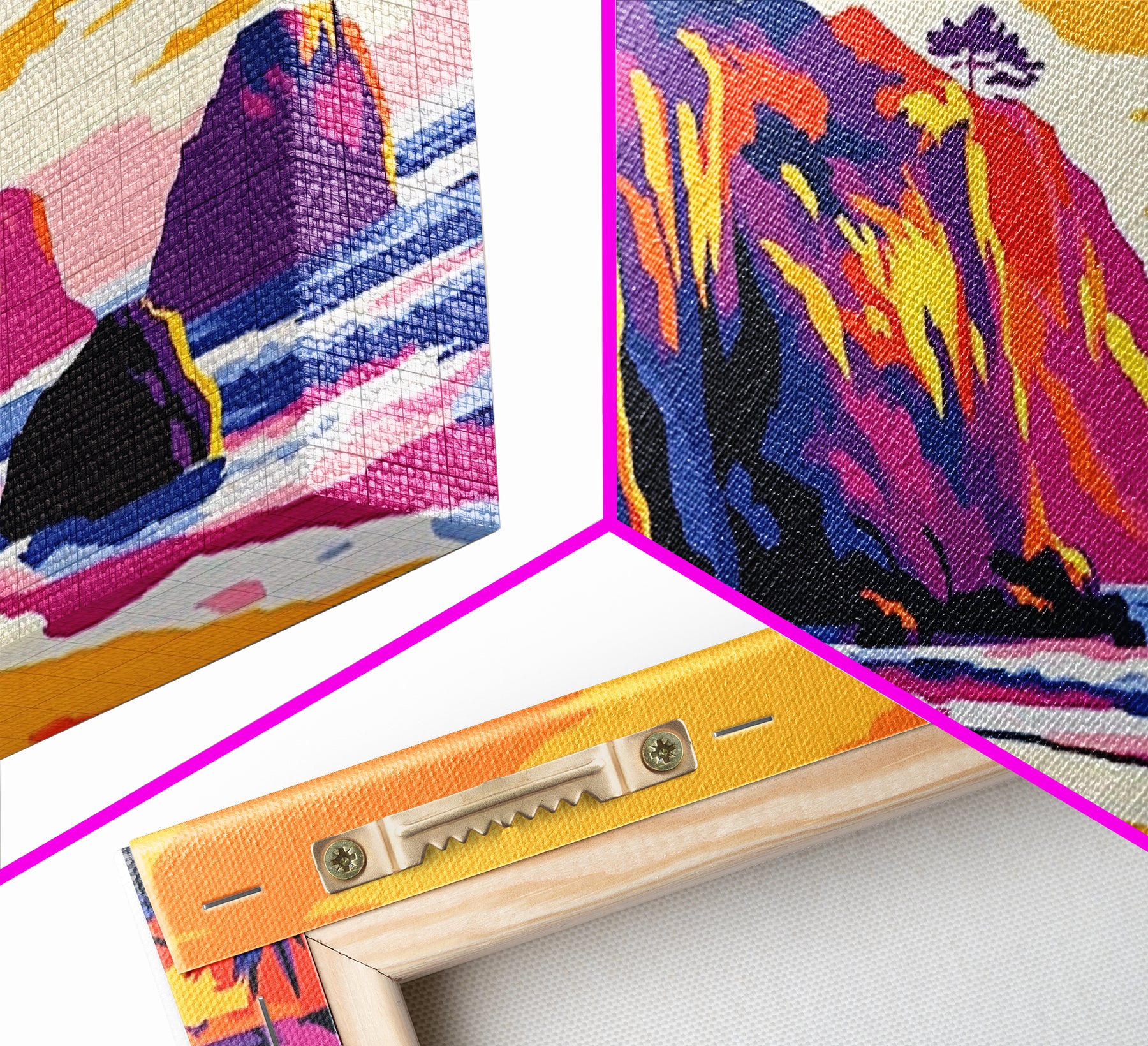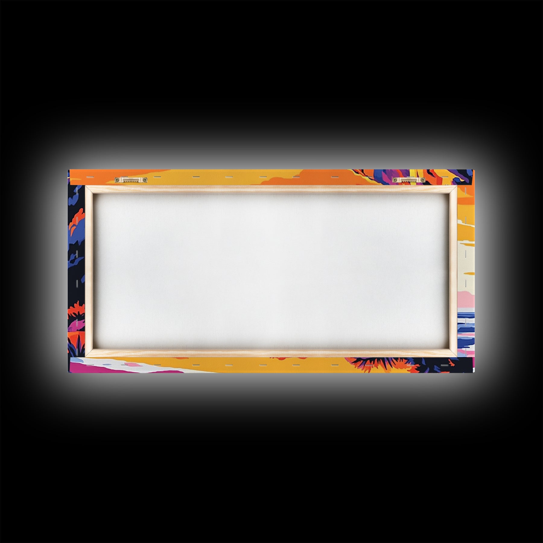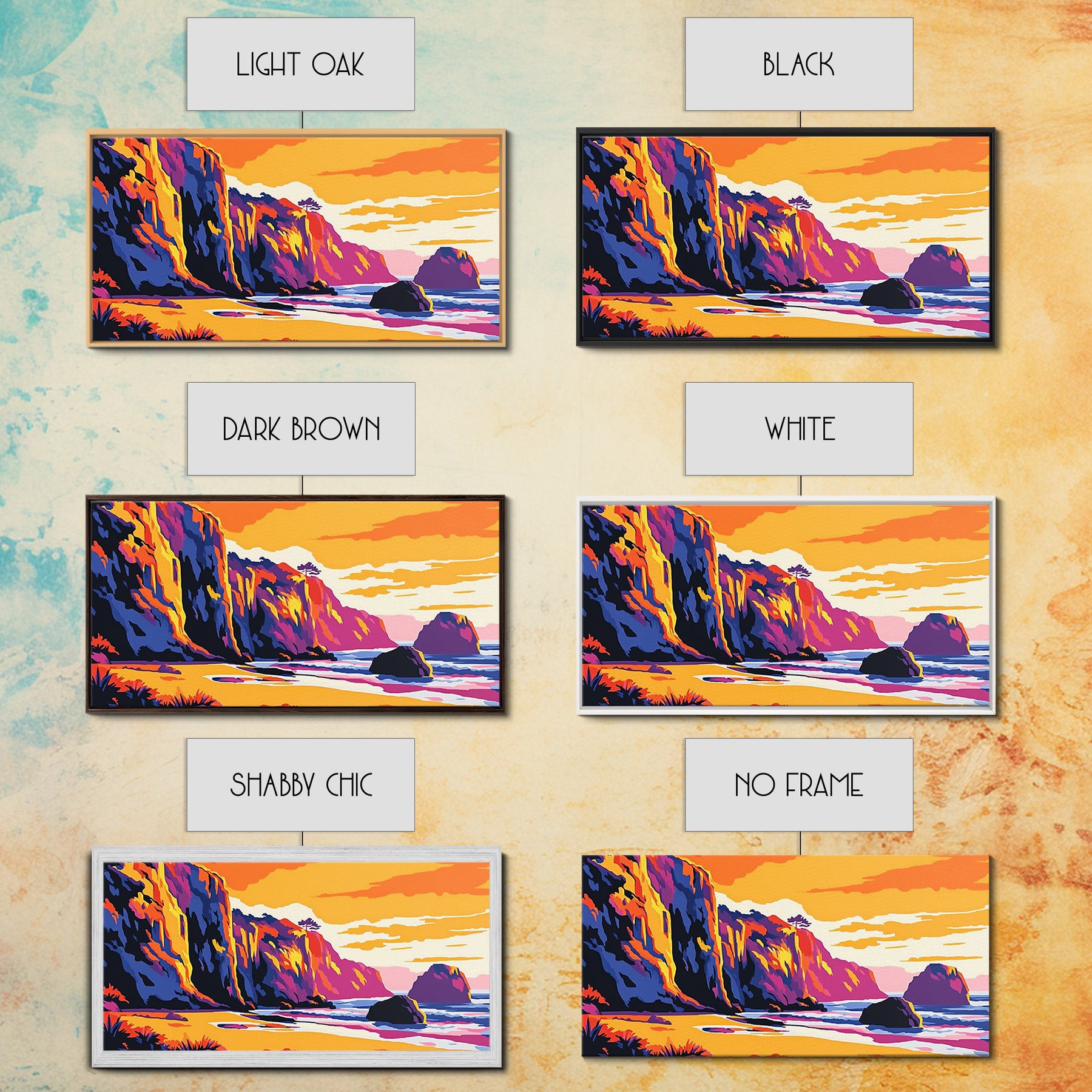 Ocean Cliffs, Coastal Sunset Art, Vibrant Seascape Painting, Beach Wall Decor, Framed Canvas Print, Nautical Home Design, Office Art