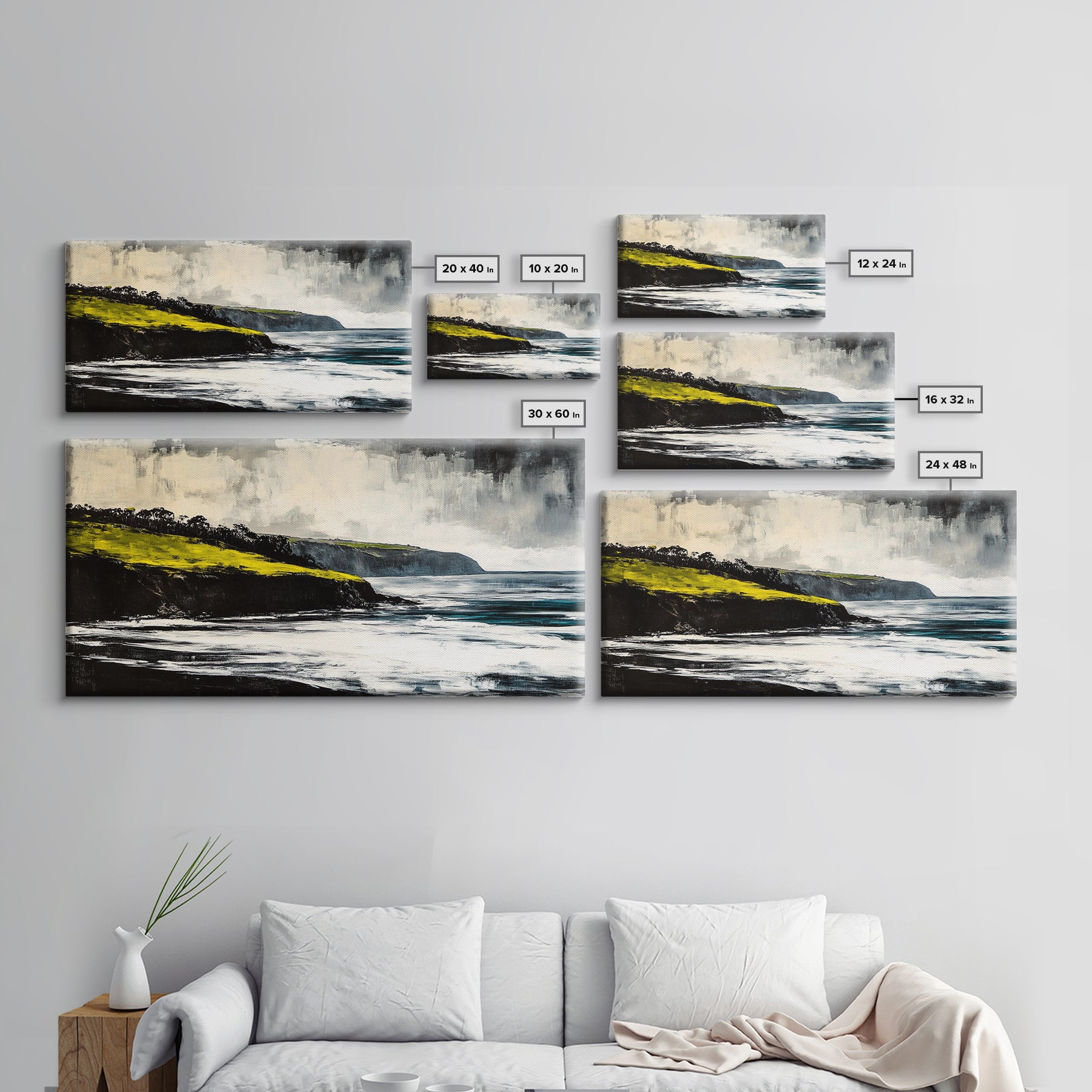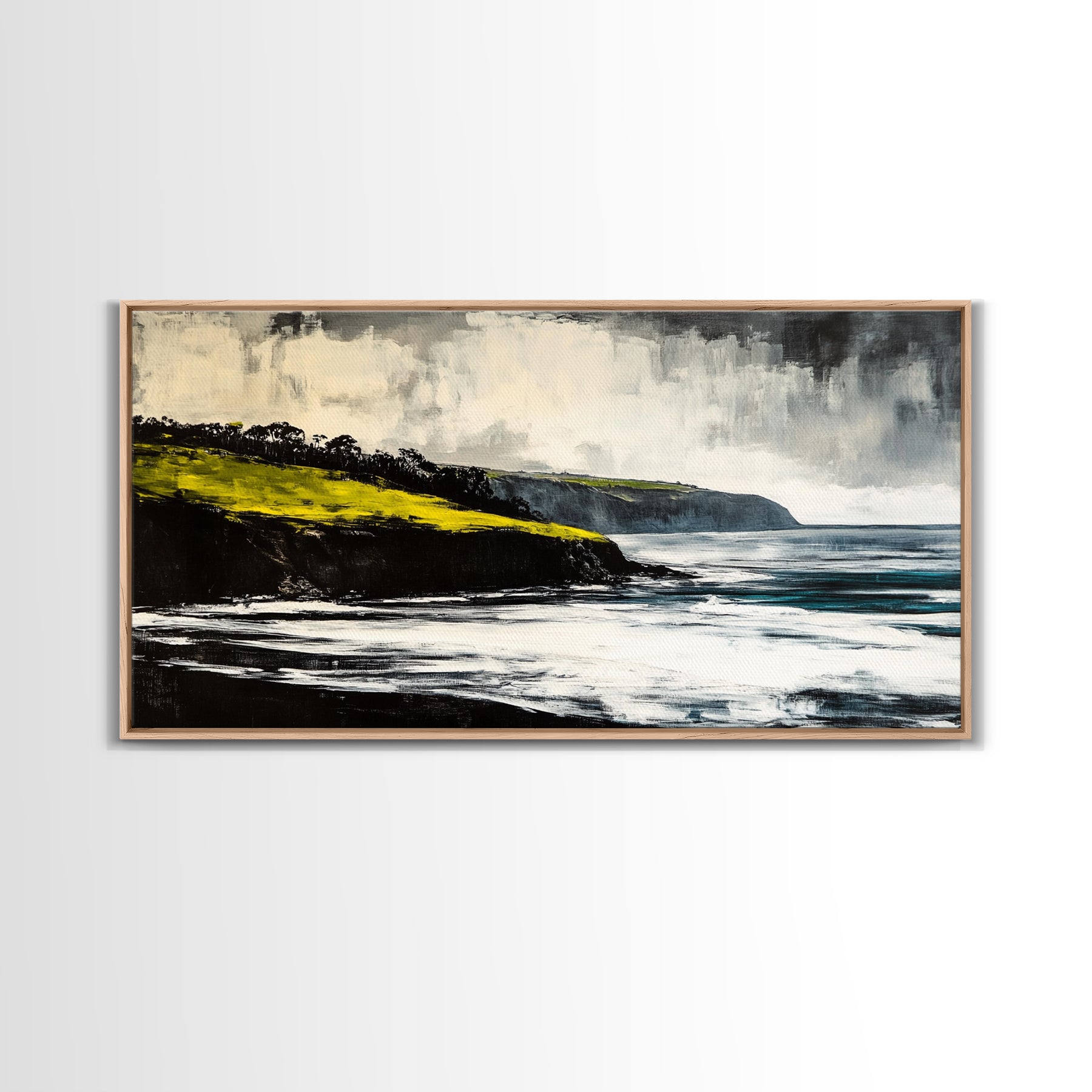 Ocean Cliffs, Misty Coastline, Stormy Sea, Canvas Print, Moody Seascape Art, Living Room Decor, Minimalist Wall Art, Nature Painting
