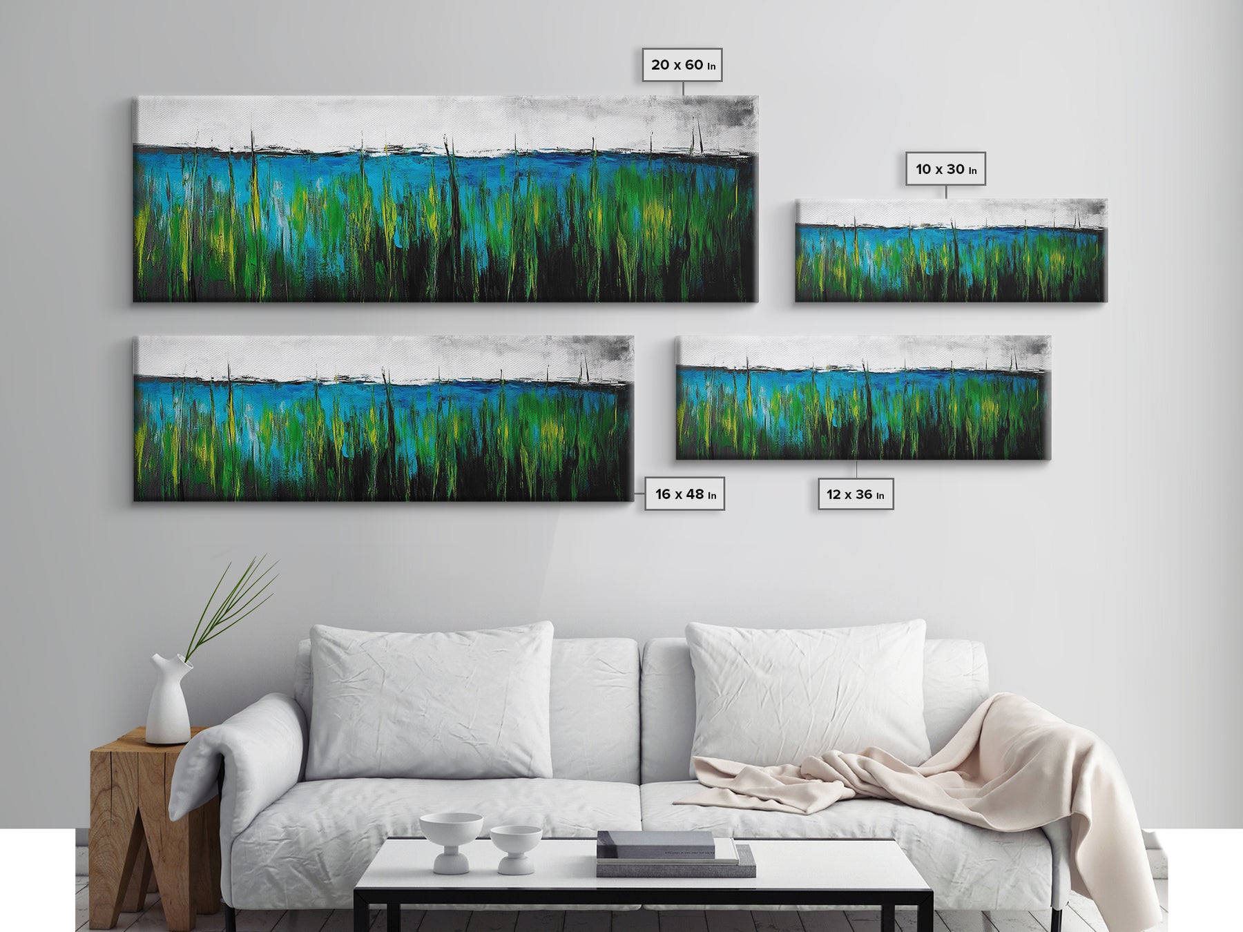 Ocean Grass, Coastal Wall Art, Blue Green Abstract, Framed Canvas Print, Beach House Decor, Serene Art, Minimalist Seascape, Tranquil Home Decor