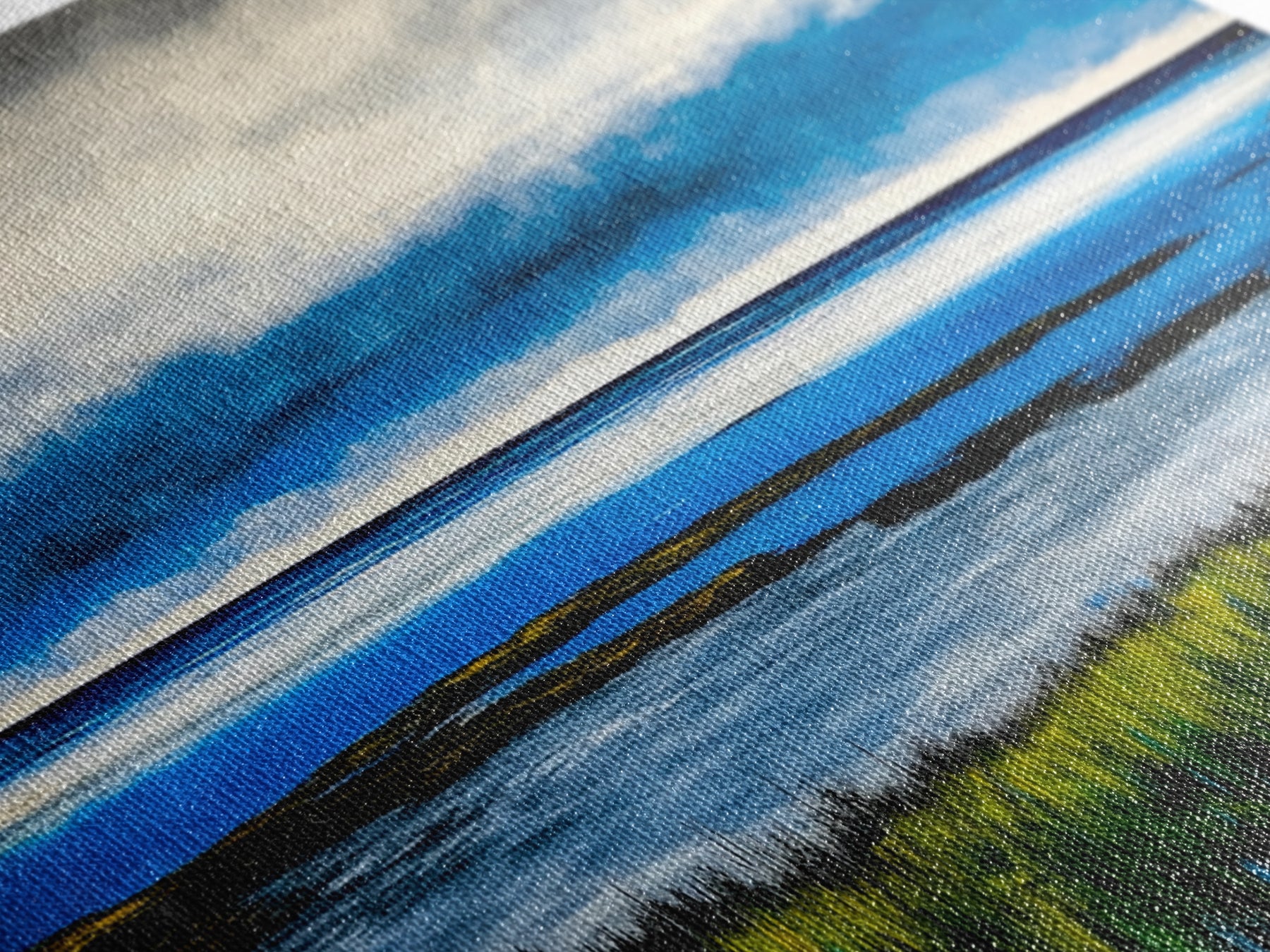 Most of our canvases are made in the USA, with the exception of canvases ordered with the light oak unstained frames, and any large canvases (24x48, 30x60, 16x48 and 20x60) ordered WITH a frame. These are temporarily made in and shipped from Europe, while we try to find a more consistent supplier in the USA.