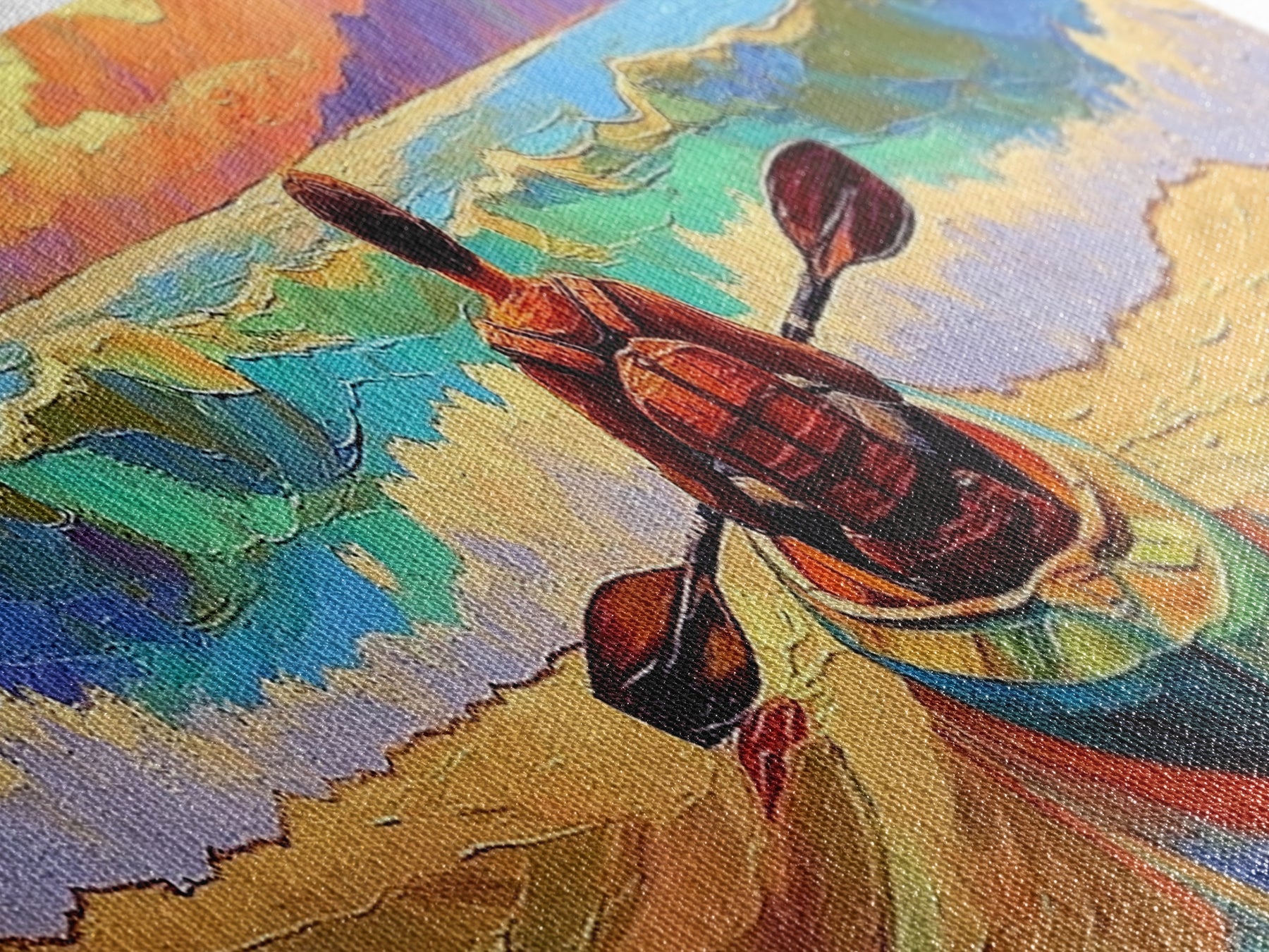 Most of our canvases are made in the USA, with the exception of canvases ordered with the light oak unstained frames, and any large canvases (24x48, 30x60, 16x48 and 20x60) ordered WITH a frame. These are temporarily made in and shipped from Europe, while we try to find a more consistent supplier in the USA.