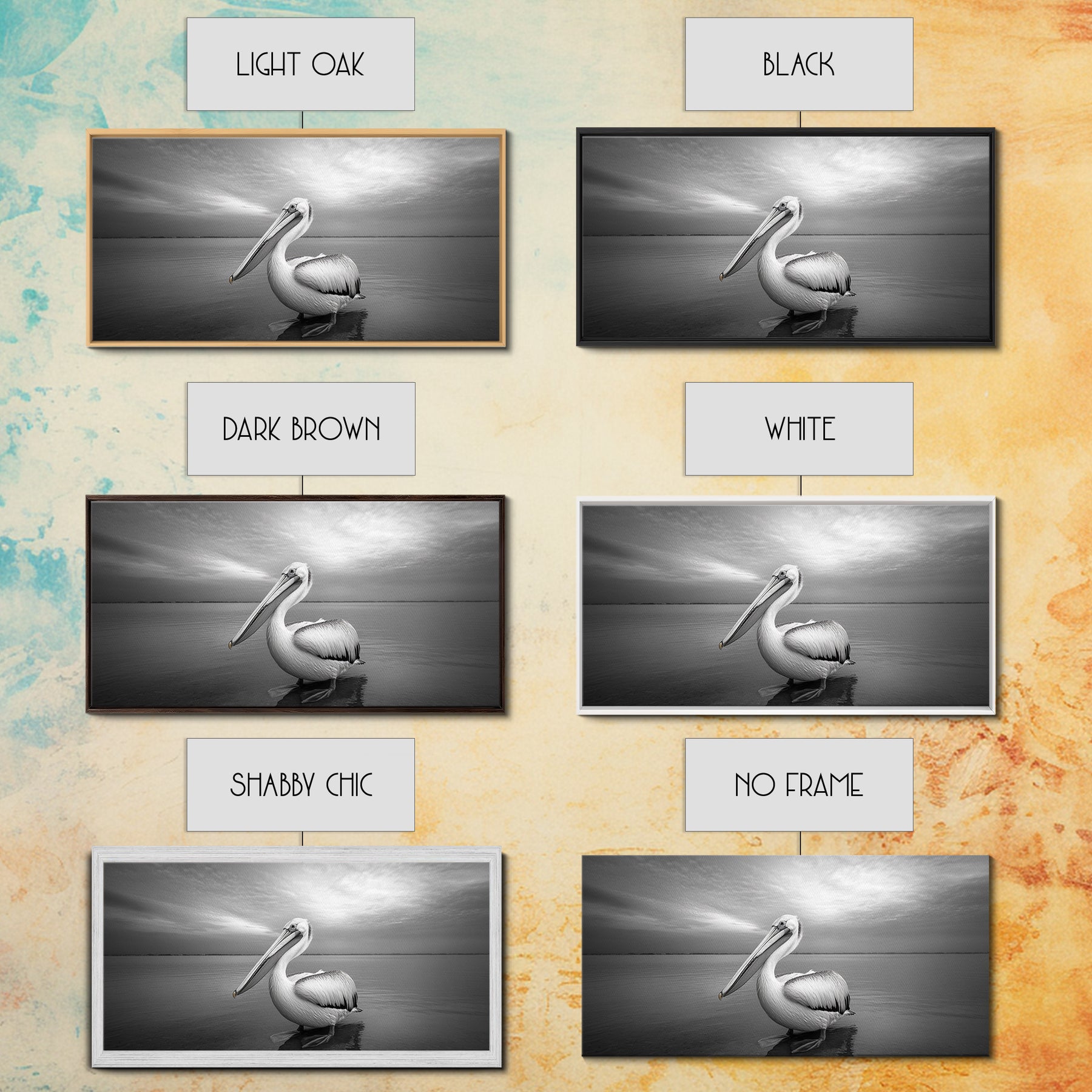 *Optional frames add a total of 1.5 inches to each dimension, for example a 10x20 canvas with a frame will be 11.5 by 21.5 inches total. All framed canvas are 1.5" total depth.