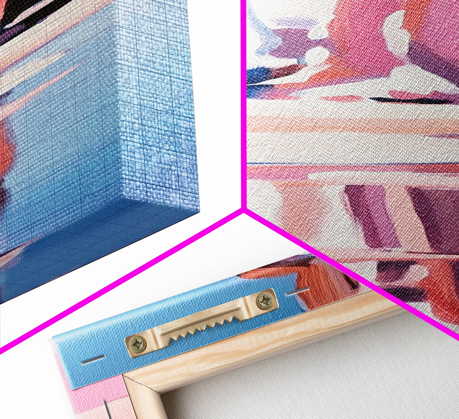Hello and thank you for taking the time to view our modern high quality giclée artwork! We offer both posters and stretched canvas prints. Our posters are printed on Ultra Matte 60 lb / 230 GSM high quality photo paper, with a thickness of 10 mil. Our canvases are printed on museum grade 350 GSM canvas material with ECO friendly archival grade ink, then hand stretched and stapled over premium, FSC certified and shrink resistant frames. Designed and built to last a lifetime.