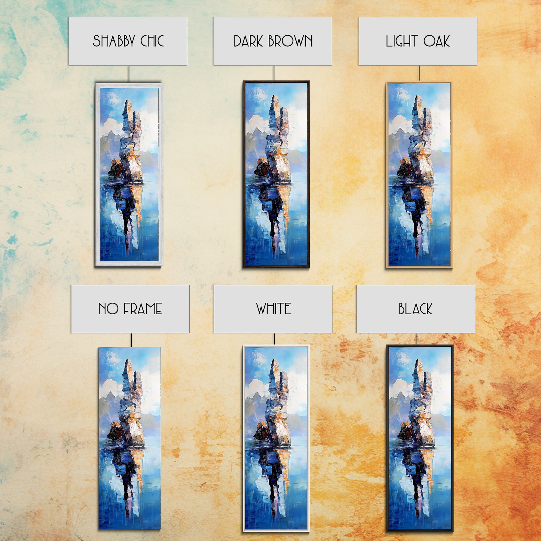 *Optional frames add a total of 1.5 inches to each dimension, for example a 10x20 canvas with a frame will be 11.5 by 21.5 inches total. All framed canvas are 1.5" total depth.