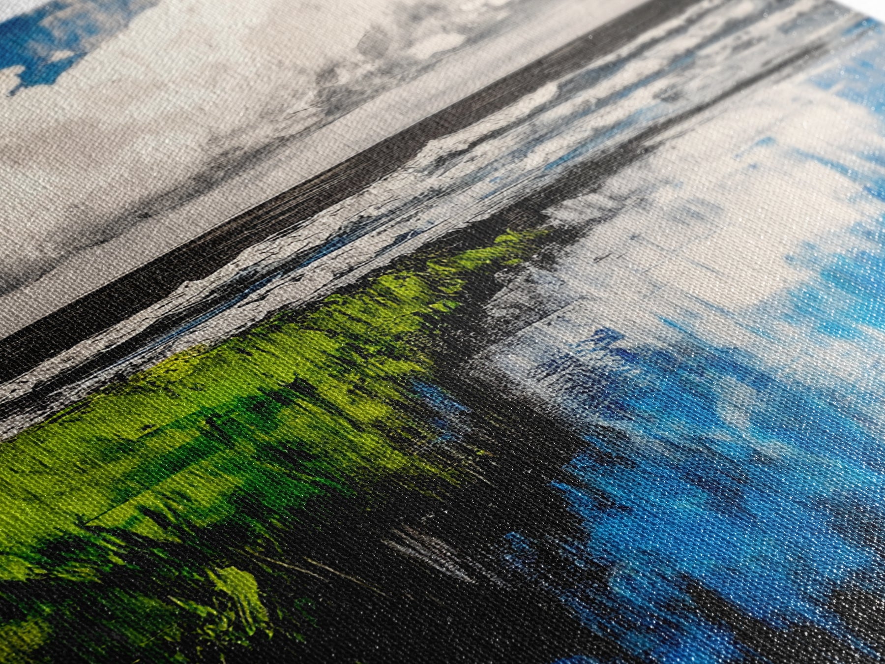 Most of our canvases are made in the USA, with the exception of canvases ordered with the light oak unstained frames, and any large canvases (24x48, 30x60, 16x48 and 20x60) ordered WITH a frame. These are temporarily made in and shipped from Europe, while we try to find a more consistent supplier in the USA.