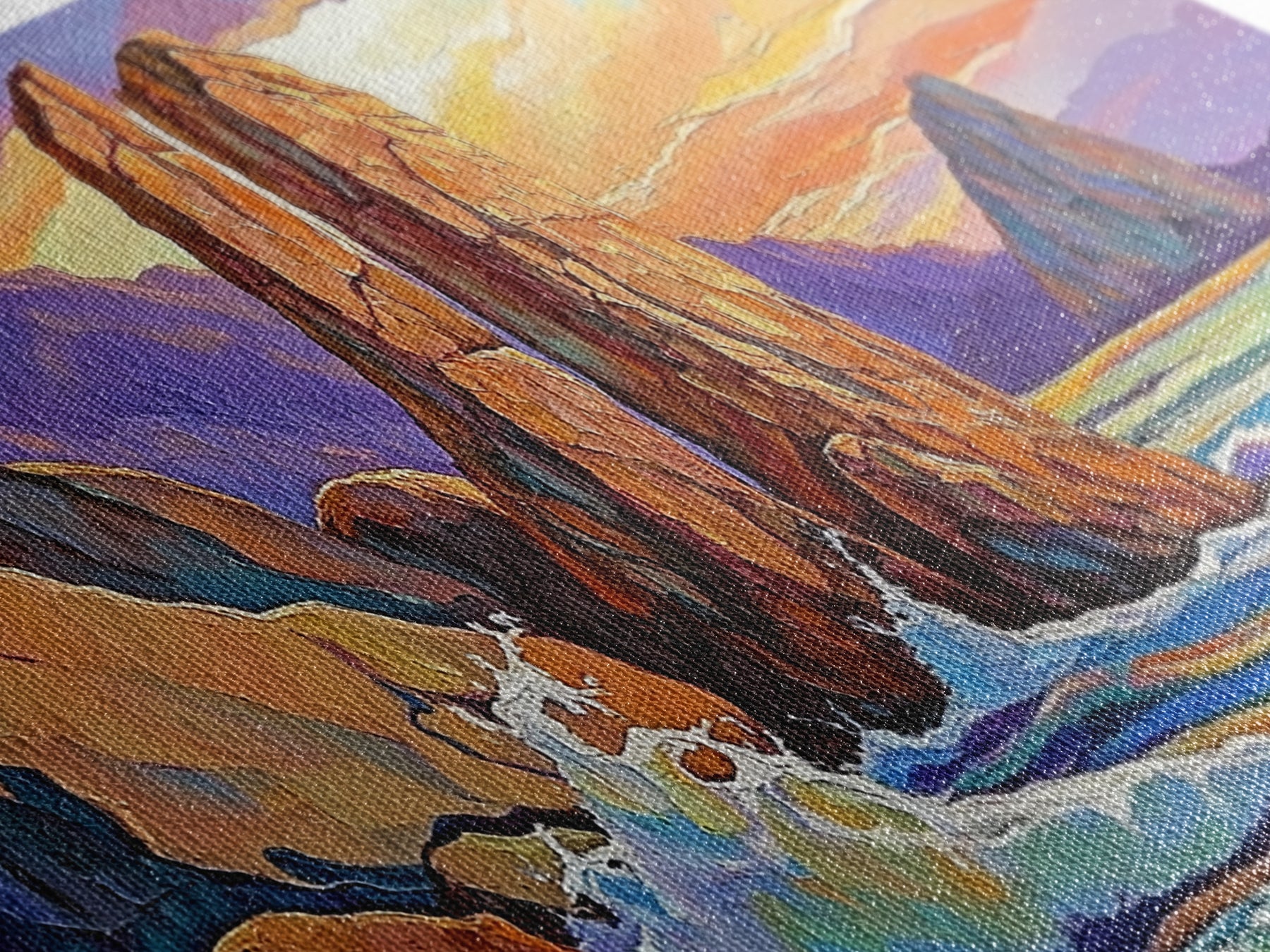 Most of our canvases are made in the USA, with the exception of canvases ordered with the light oak unstained frames, and any large canvases (24x48, 30x60, 16x48 and 20x60) ordered WITH a frame. These are temporarily made in and shipped from Europe, while we try to find a more consistent supplier in the USA.