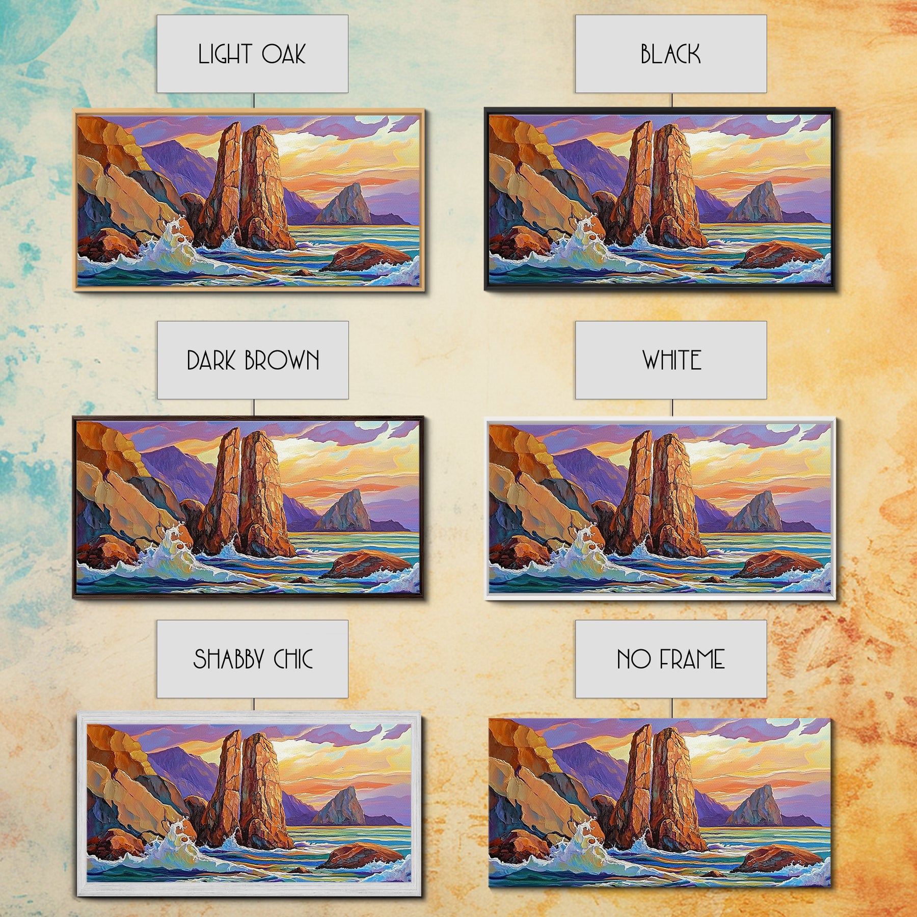 *Optional frames add a total of 1.5 inches to each dimension, for example a 10x20 canvas with a frame will be 11.5 by 21.5 inches total. All framed canvas are 1.5" total depth.