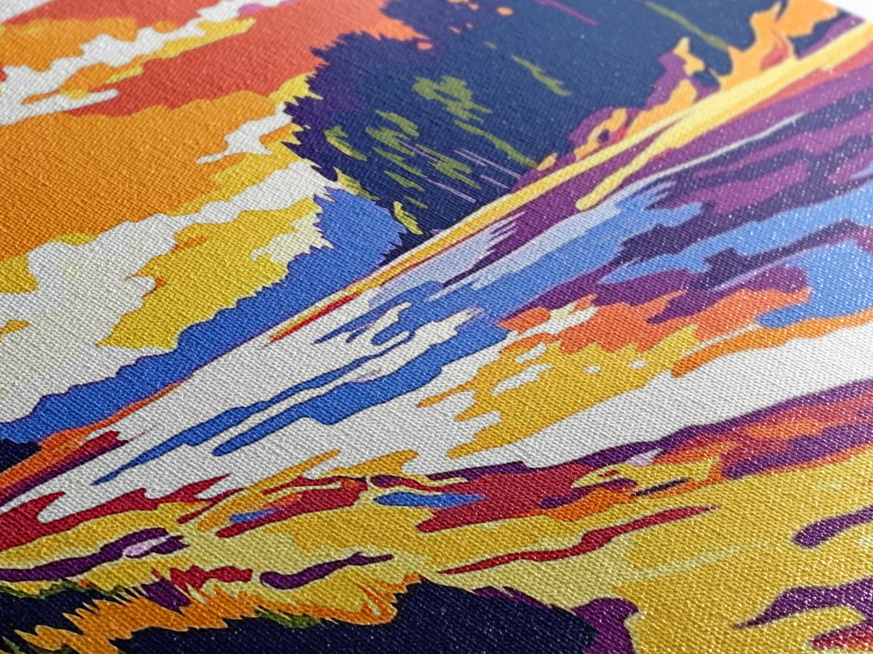 Most of our canvases are made in the USA, with the exception of canvases ordered with the light oak unstained frames, and any large canvases (24x48, 30x60, 16x48 and 20x60) ordered WITH a frame. These are temporarily made in and shipped from Europe, while we try to find a more consistent supplier in the USA.