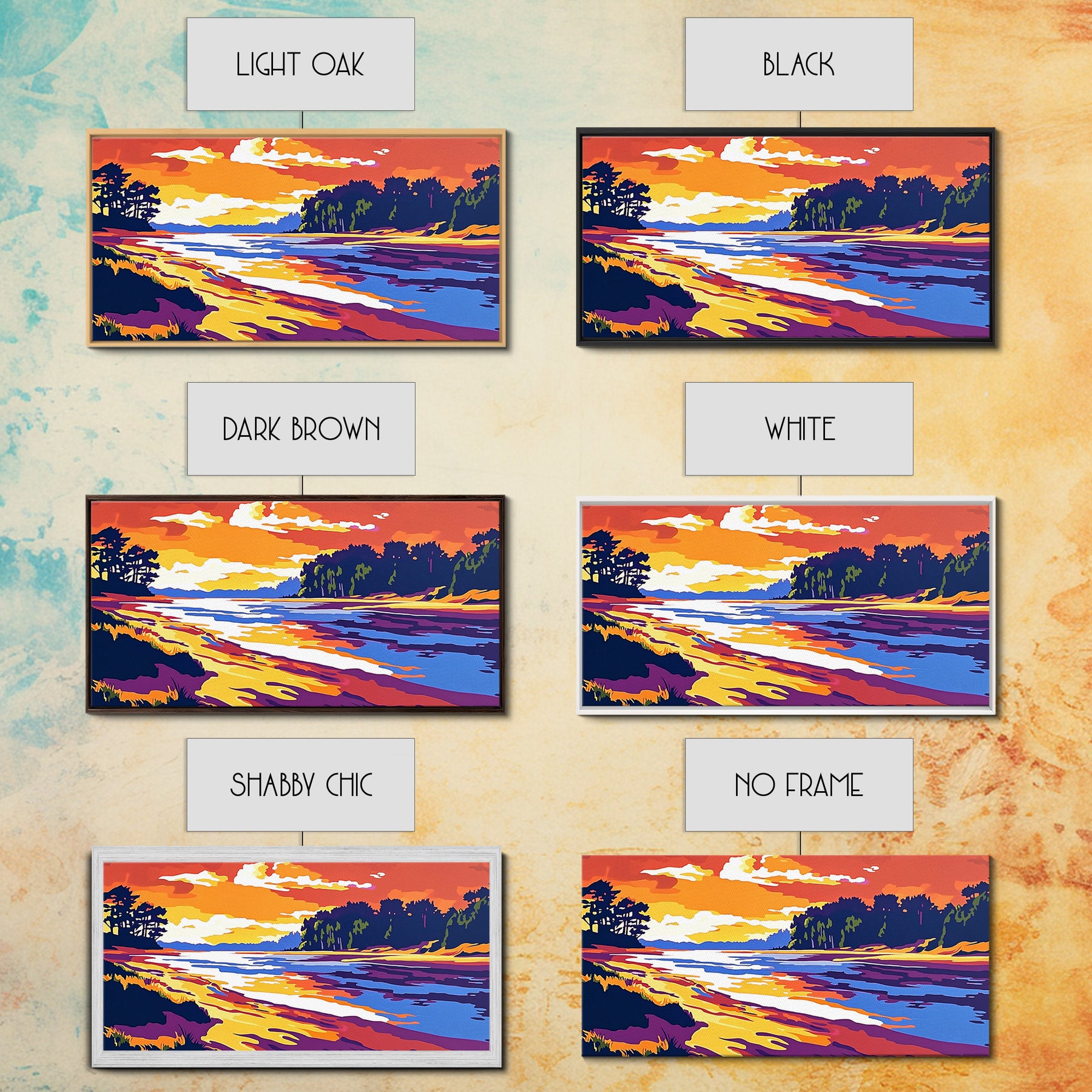 *Optional frames add a total of 1.5 inches to each dimension, for example a 10x20 canvas with a frame will be 11.5 by 21.5 inches total. All framed canvas are 1.5" total depth.