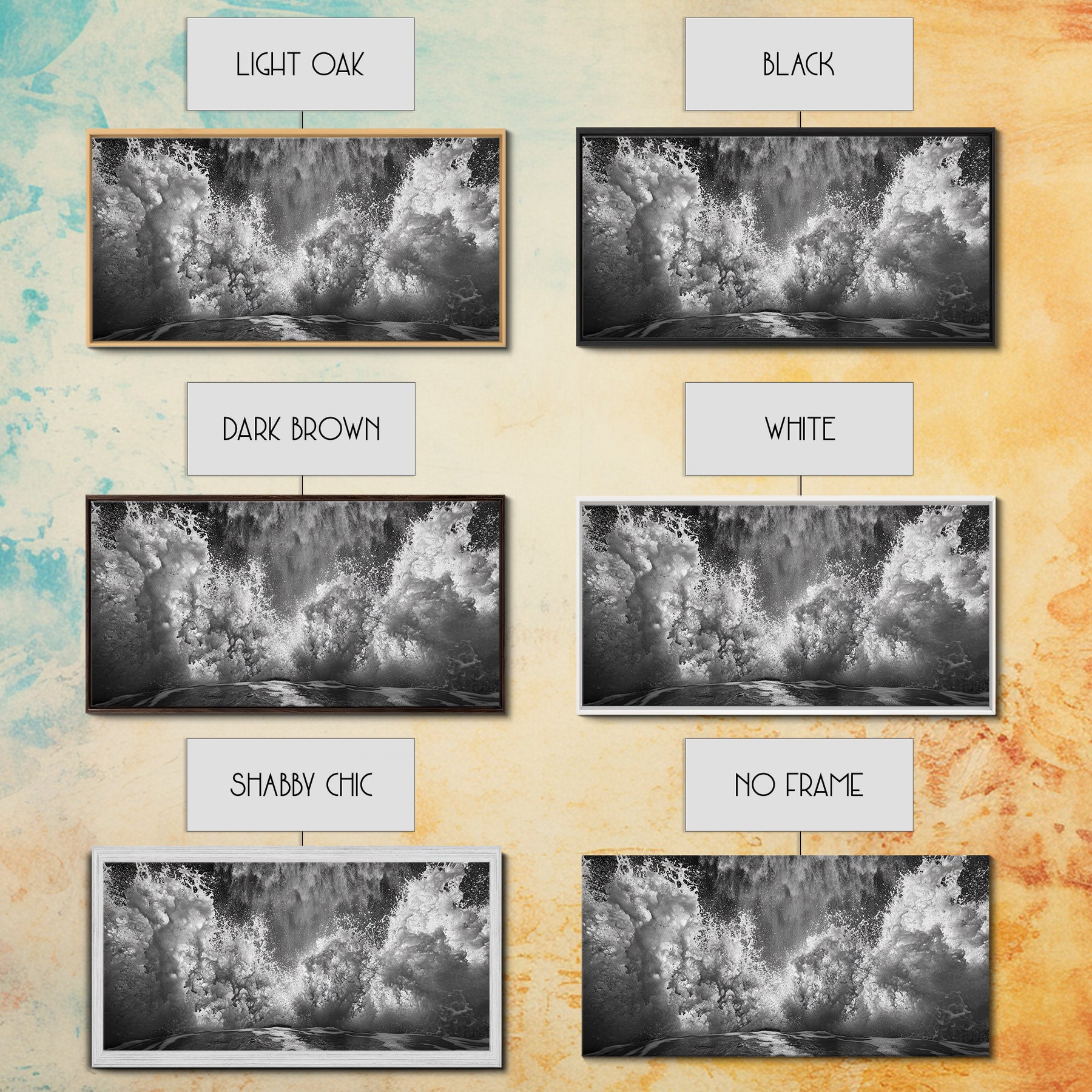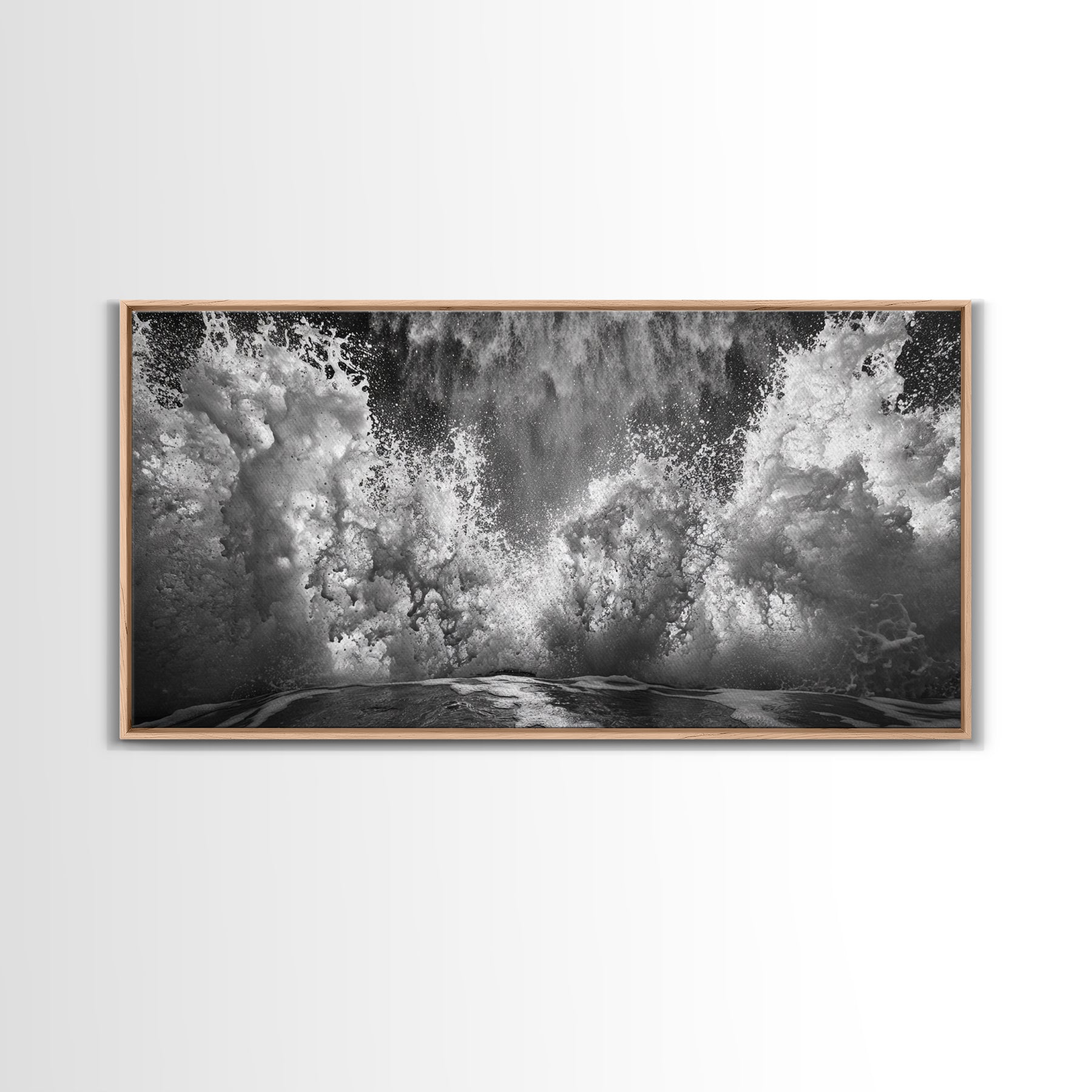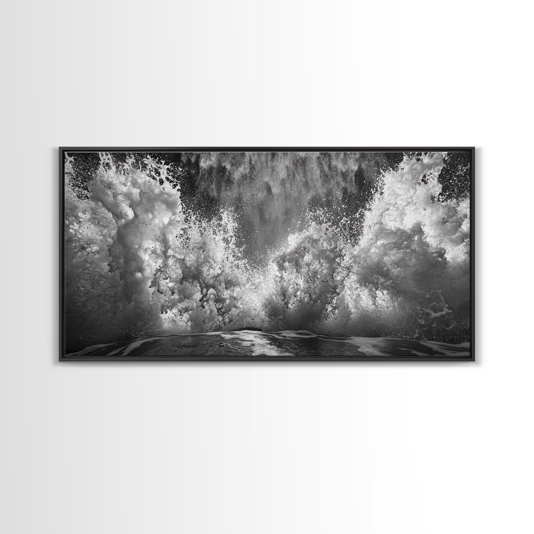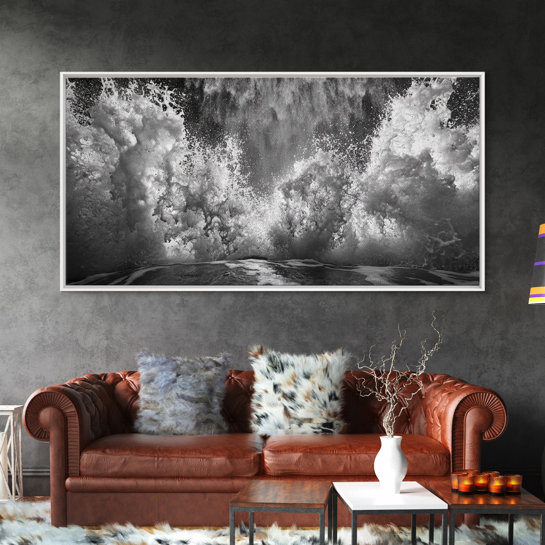 Ocean Splash, Sea Foam, Abstract Water, Coastal Waves, Framed Canvas Print, bathroom wall art, modern ocean photography, moody water art