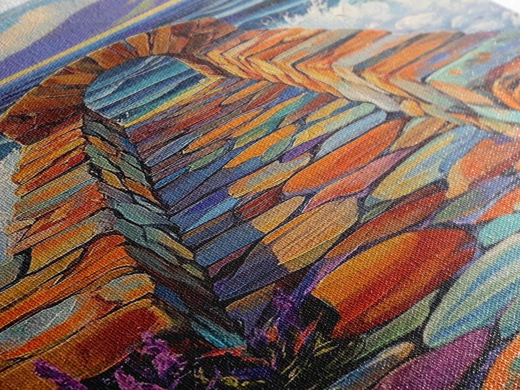 Most of our canvases are made in the USA, with the exception of canvases ordered with the light oak unstained frames, and any large canvases (24x48, 30x60, 16x48 and 20x60) ordered WITH a frame. These are temporarily made in and shipped from Europe, while we try to find a more consistent supplier in the USA.