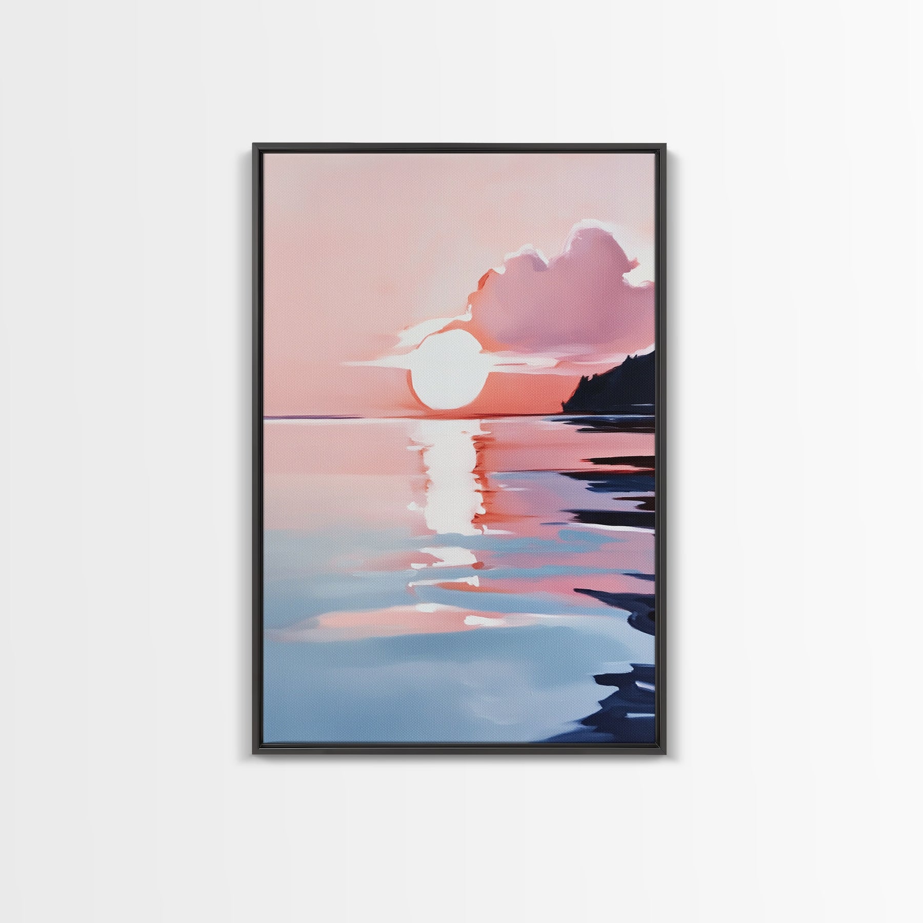 Ocean Sunset, Abstract Seascape Art, Framed Canvas Print, Beach House Wall Art, Modern Coastal Decor, Pink Sky Painting, Bedroom Artwork