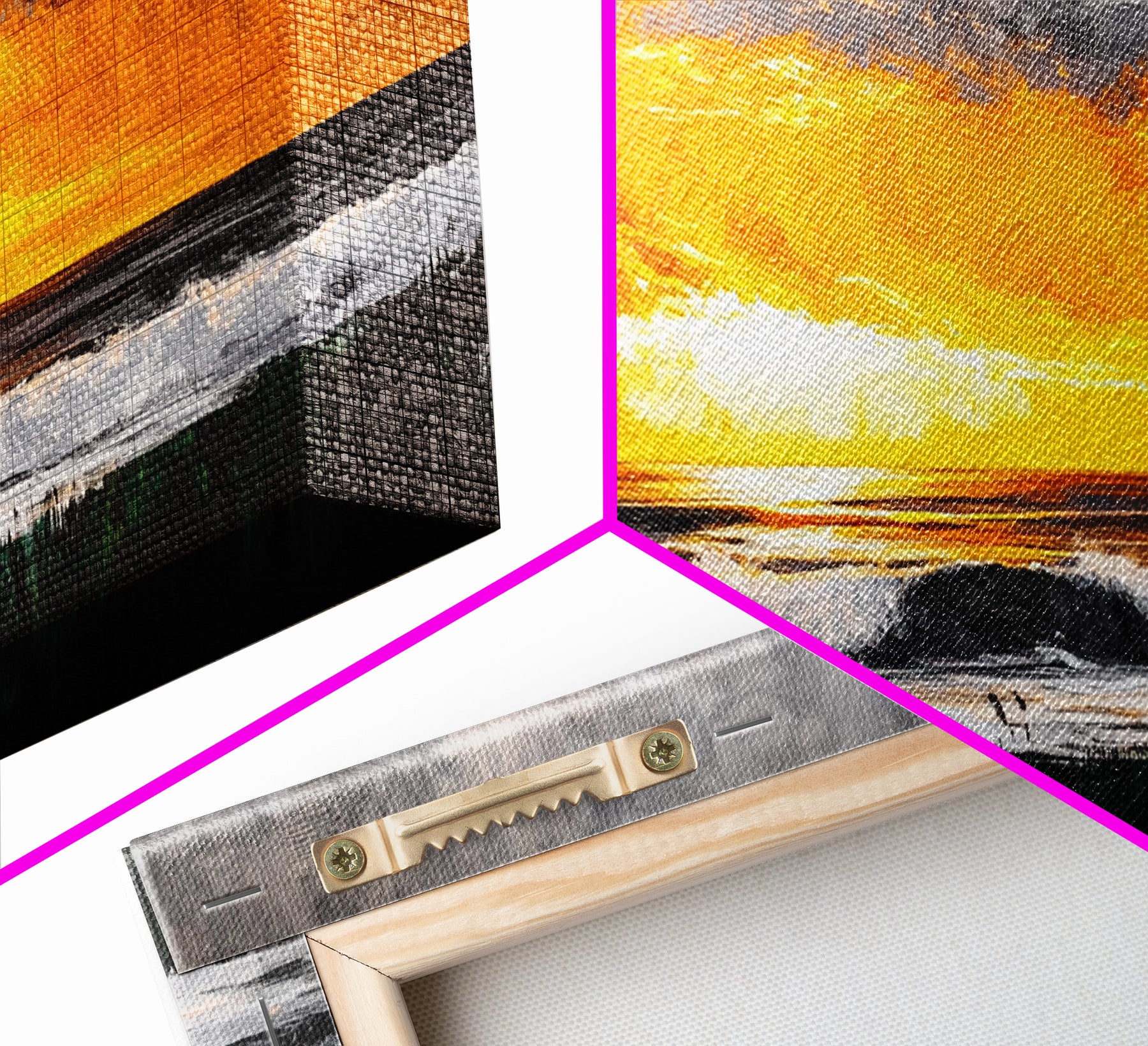 Hello and thank you for taking the time to view our modern high quality giclée artwork! We offer both posters and stretched canvas prints. Our posters are printed on Ultra Matte 60 lb / 230 GSM high quality photo paper, with a thickness of 10 mil. Our canvases are printed on museum grade 350 GSM canvas material with ECO friendly archival grade ink, then hand stretched and stapled over premium, FSC certified and shrink resistant frames. Designed and built to last a lifetime.