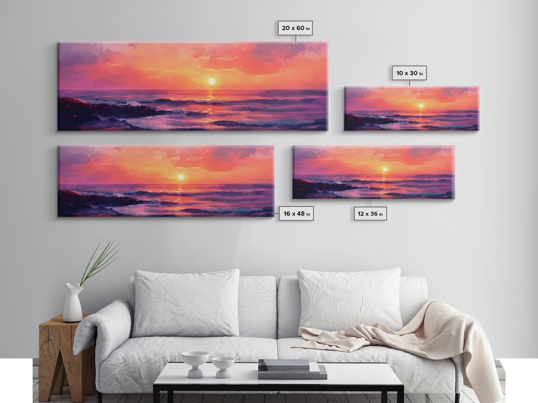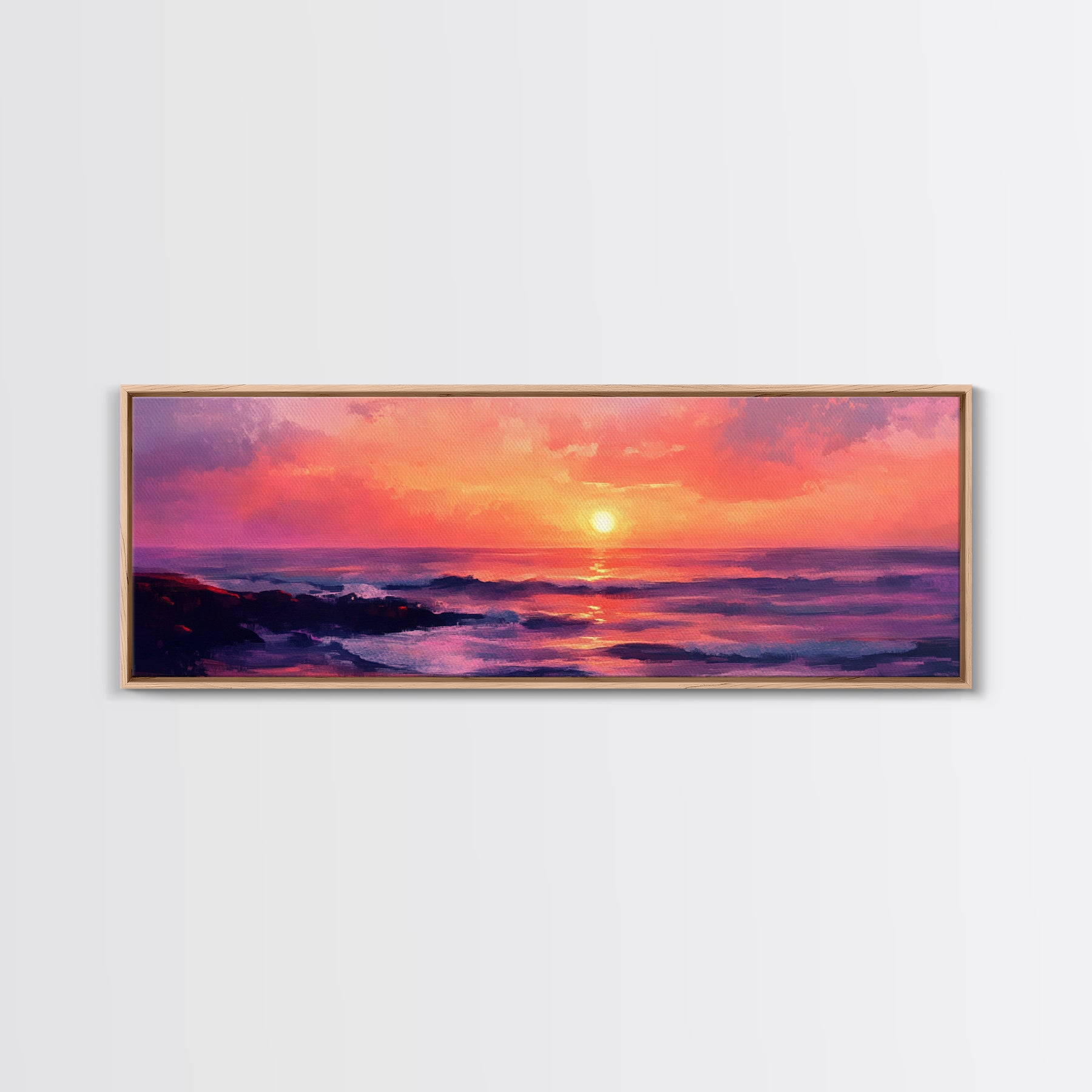 Ocean Sunset Framed Canvas Print, Pink Sky Seascape, Coastal Landscape Wall Art, Beach House Decor, Relaxing Home Aesthetic