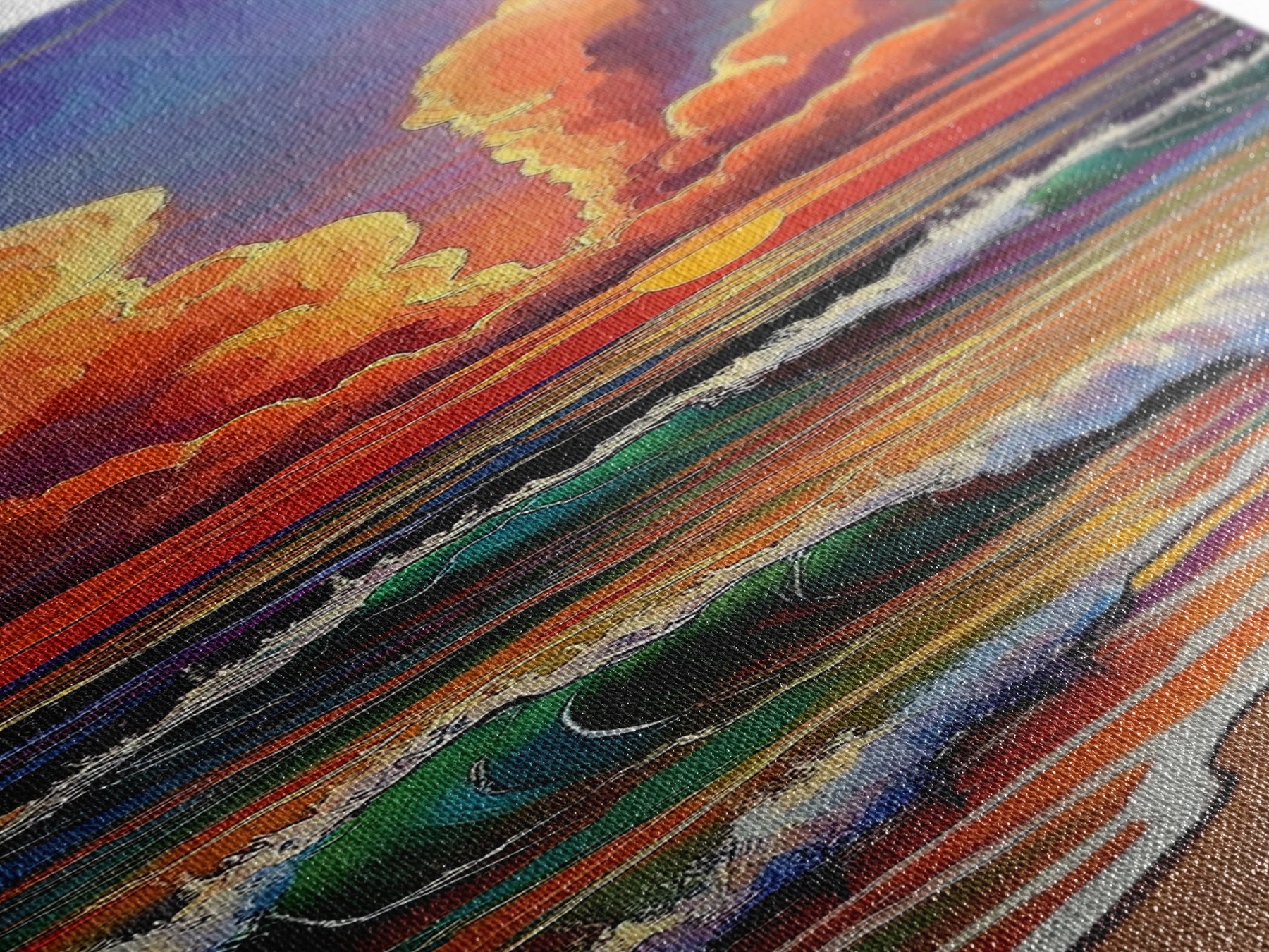 Most of our canvases are made in the USA, with the exception of canvases ordered with the light oak unstained frames, and any large canvases (24x48, 30x60, 16x48 and 20x60) ordered WITH a frame. These are temporarily made in and shipped from Europe, while we try to find a more consistent supplier in the USA.