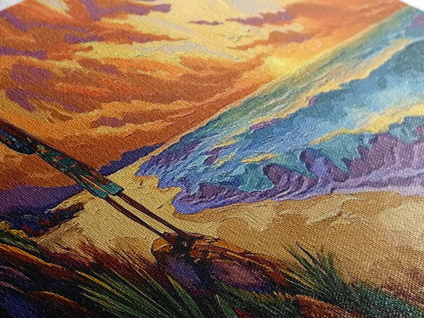 Most of our canvases are made in the USA, with the exception of canvases ordered with the light oak unstained frames, and any large canvases (24x48, 30x60, 16x48 and 20x60) ordered WITH a frame. These are temporarily made in and shipped from Europe, while we try to find a more consistent supplier in the USA.