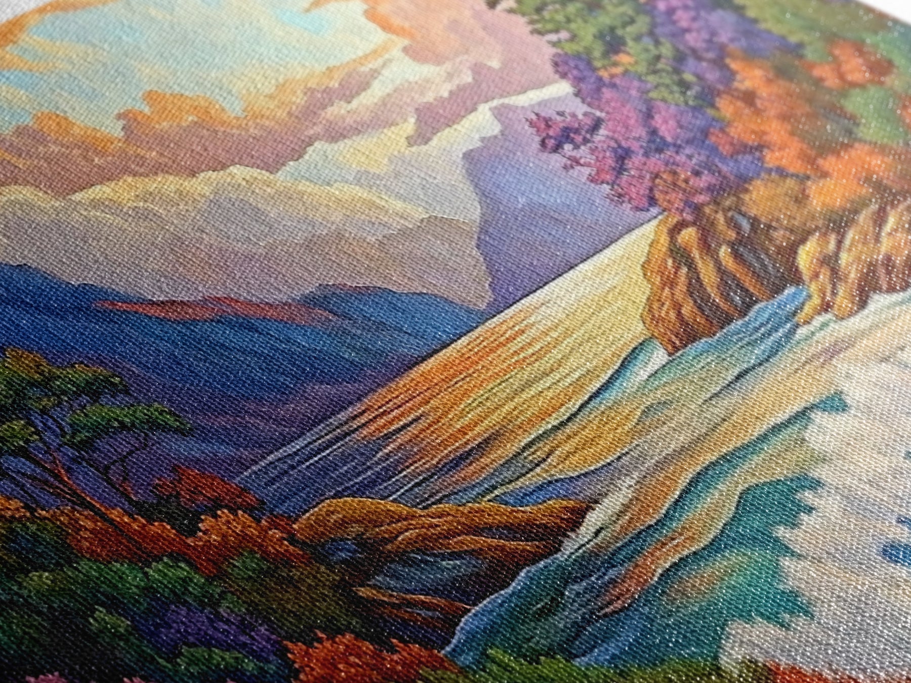 Most of our canvases are made in the USA, with the exception of canvases ordered with the light oak unstained frames, and any large canvases (24x48, 30x60, 16x48 and 20x60) ordered WITH a frame. These are temporarily made in and shipped from Europe, while we try to find a more consistent supplier in the USA.