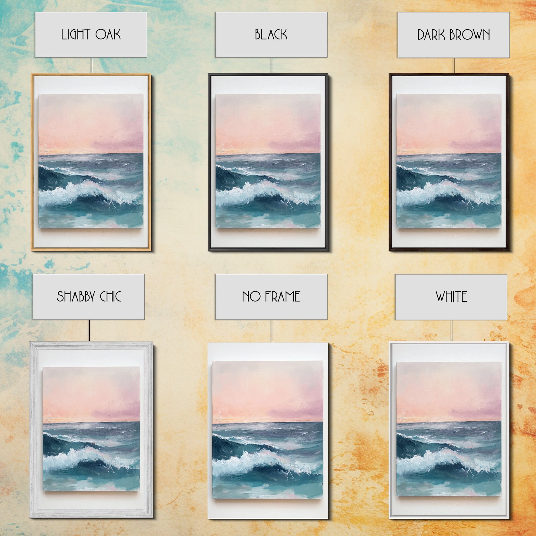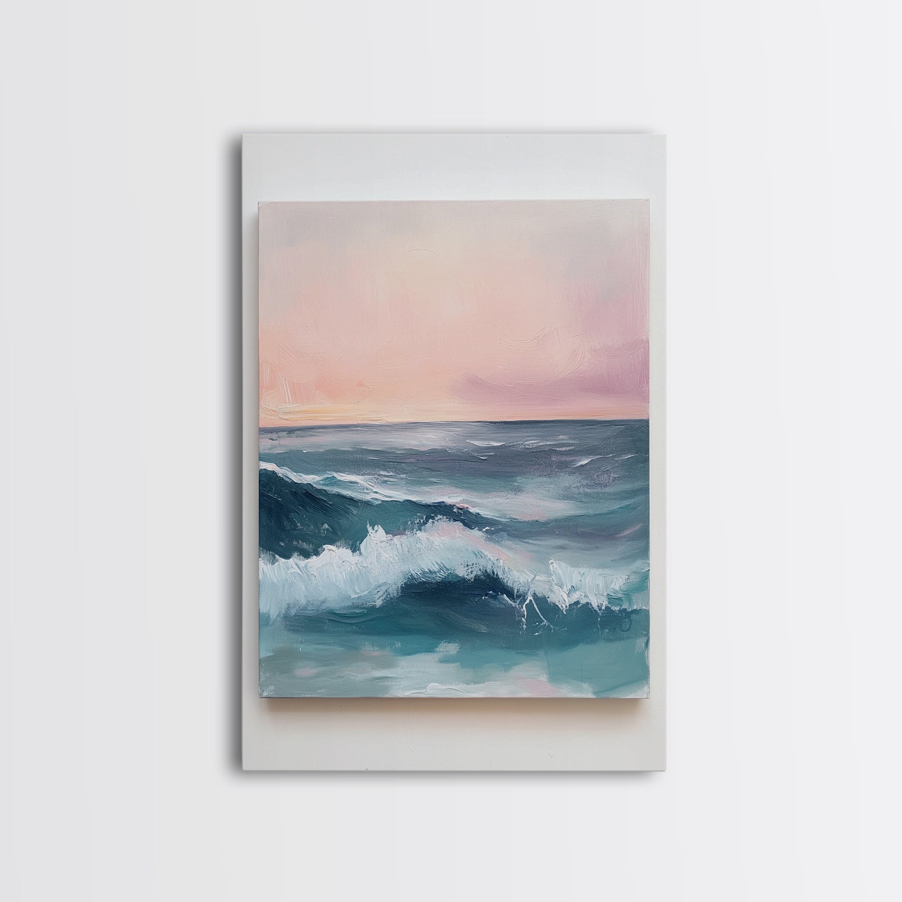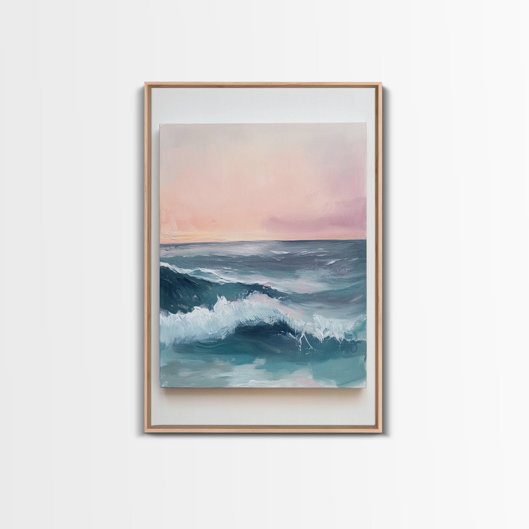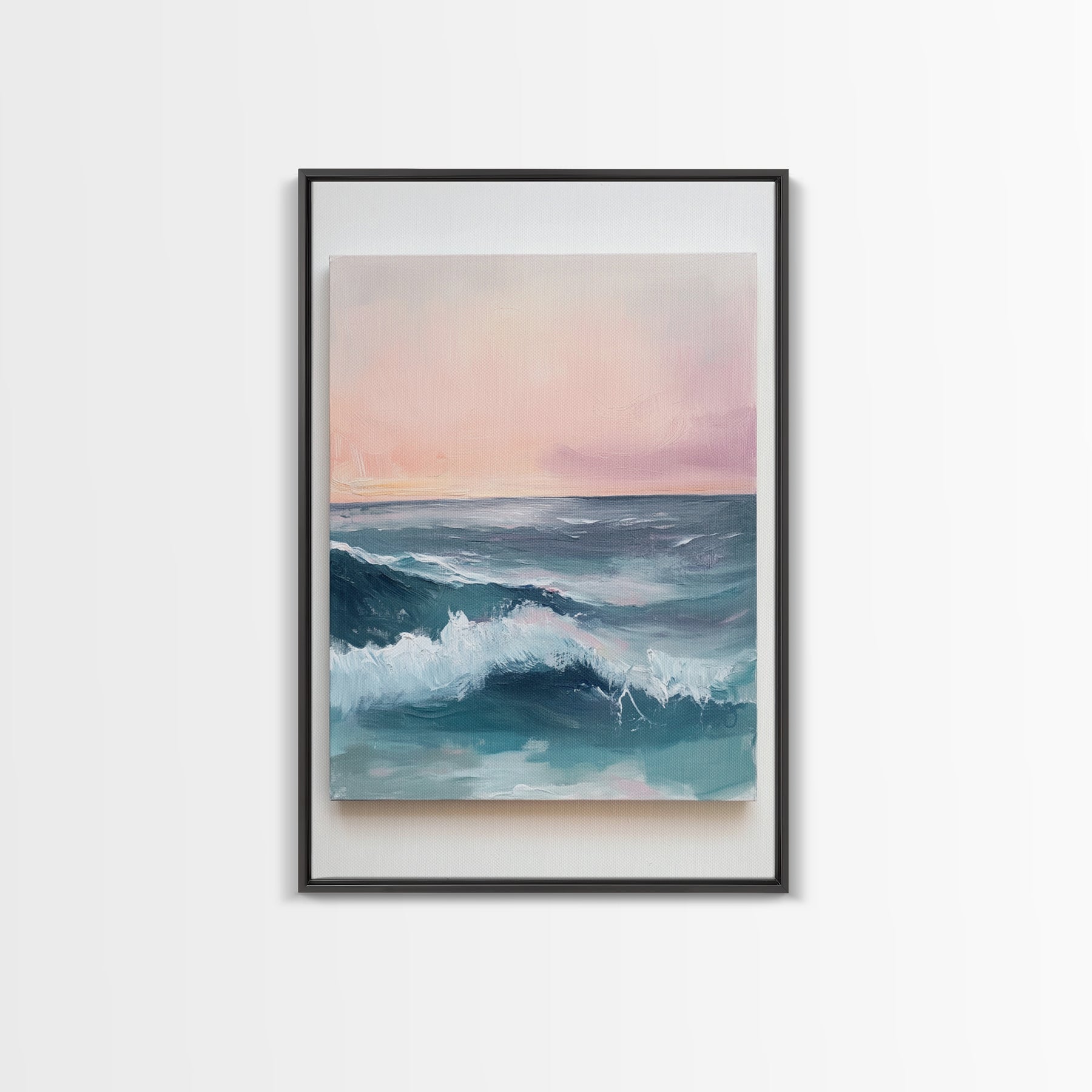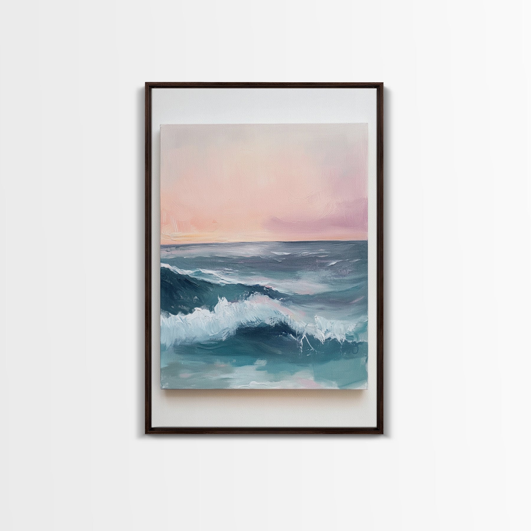 Ocean Sunset Waves, coastal decor, nautical painting, pink orange wall art, coastal landscape art, Canvas Print