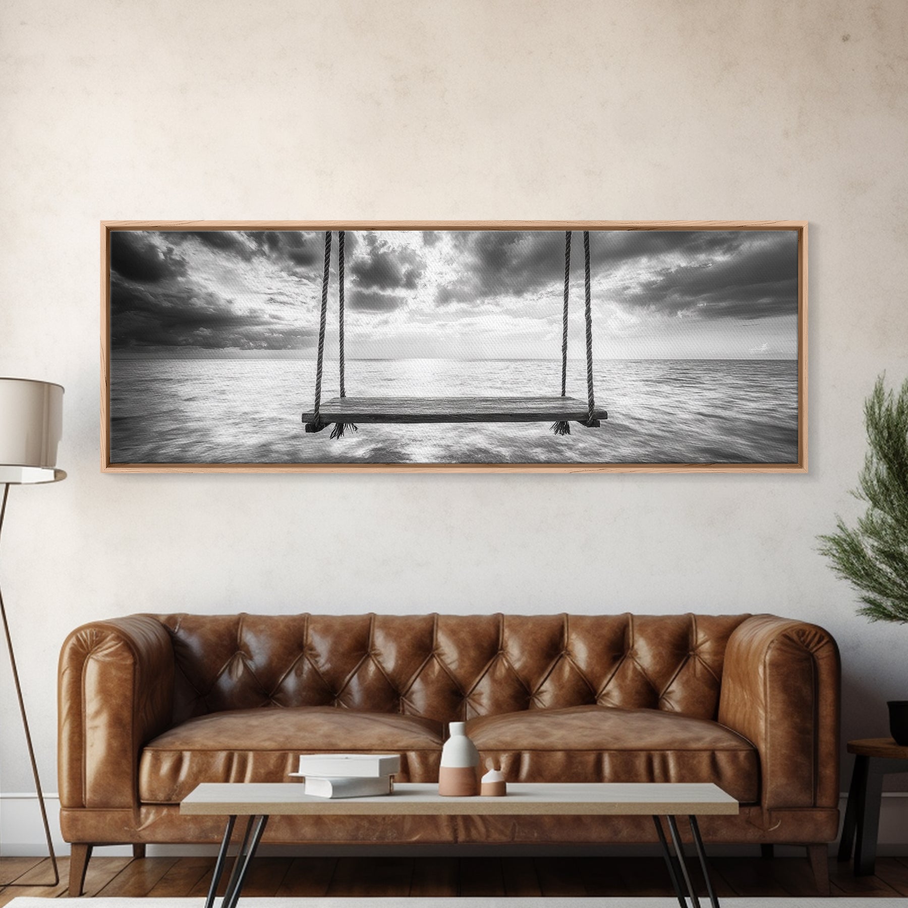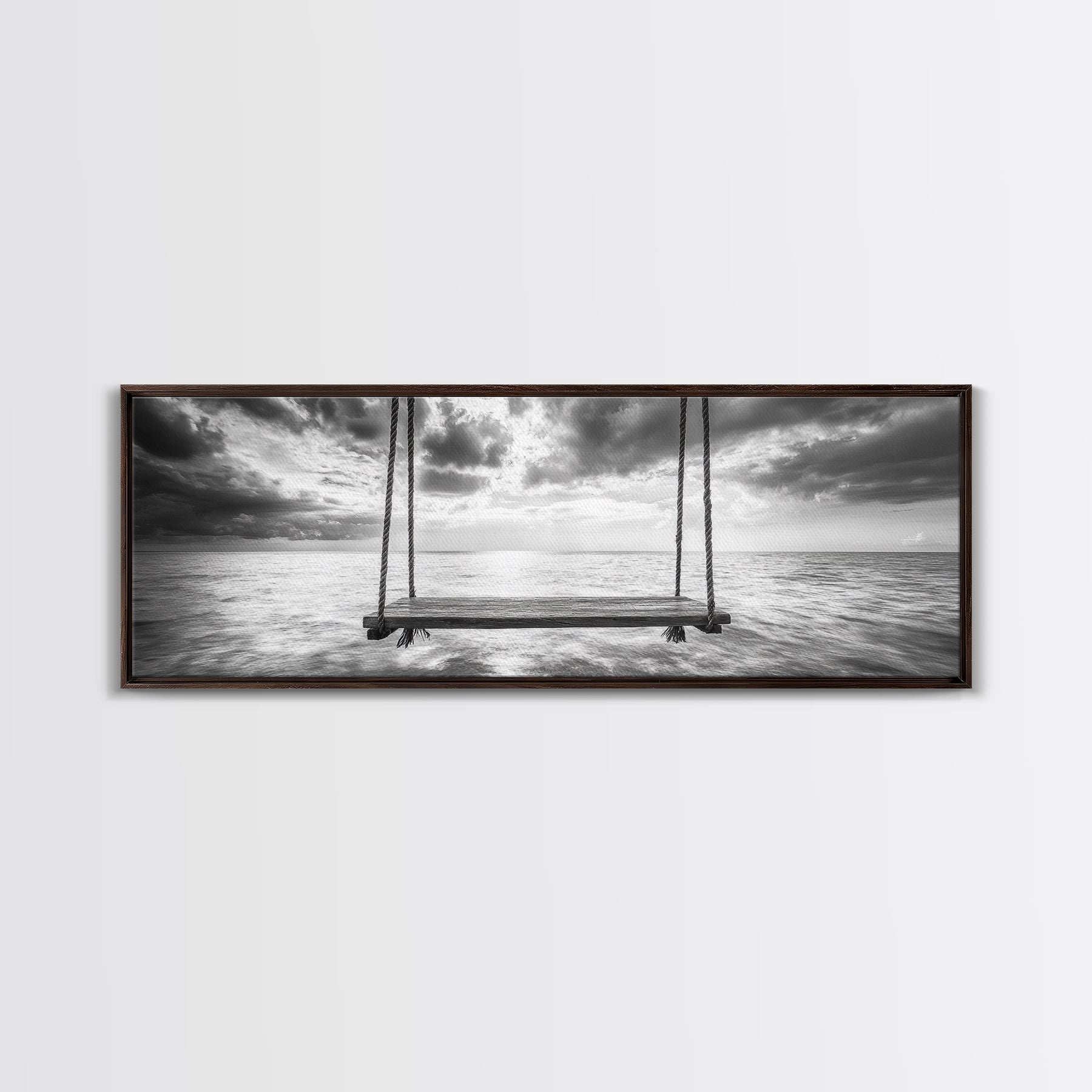 Ocean Swing View, Serene Seascape Art, Minimalist Beach Wall Decor, Framed Canvas Print, Bedroom Art, Calm Coastal Photography