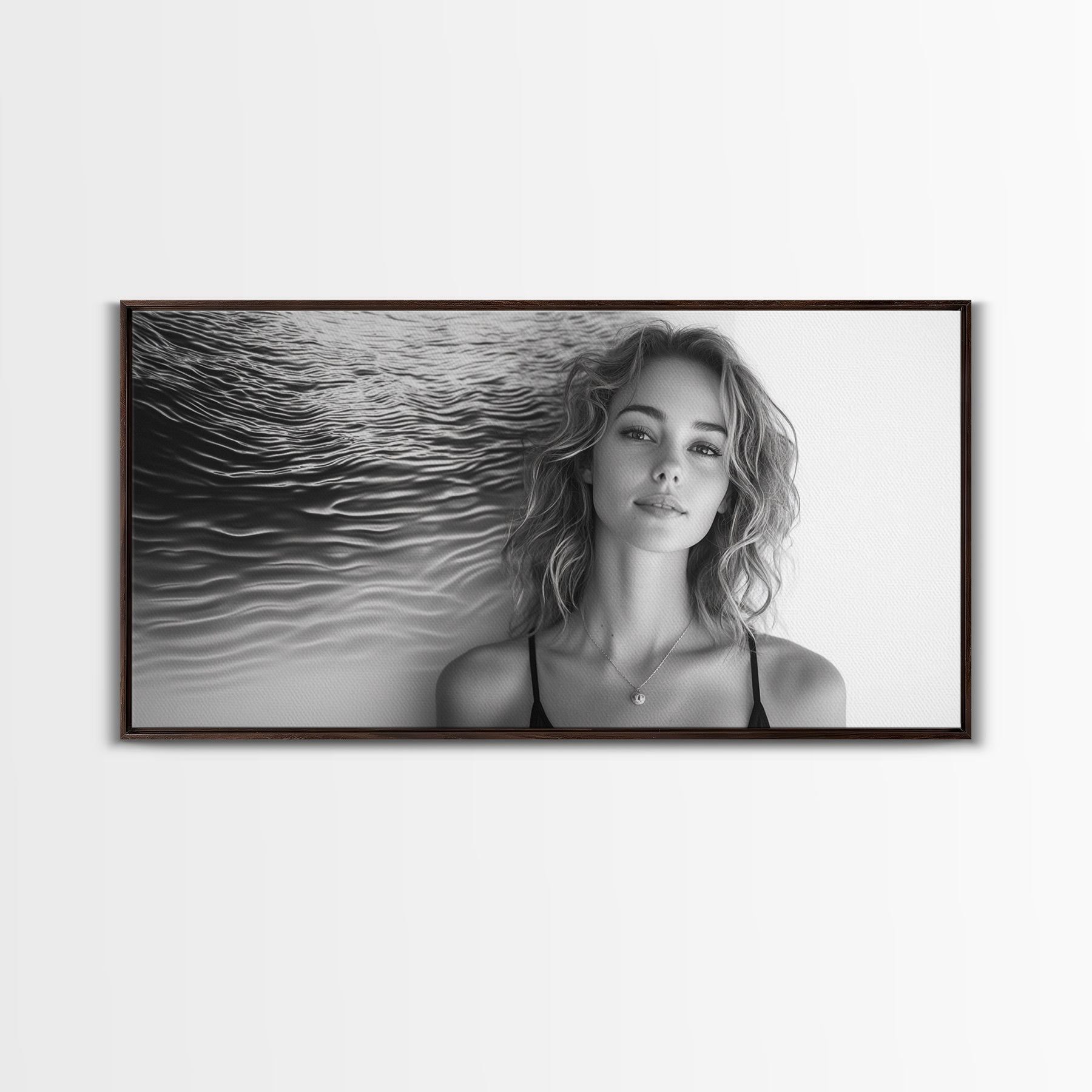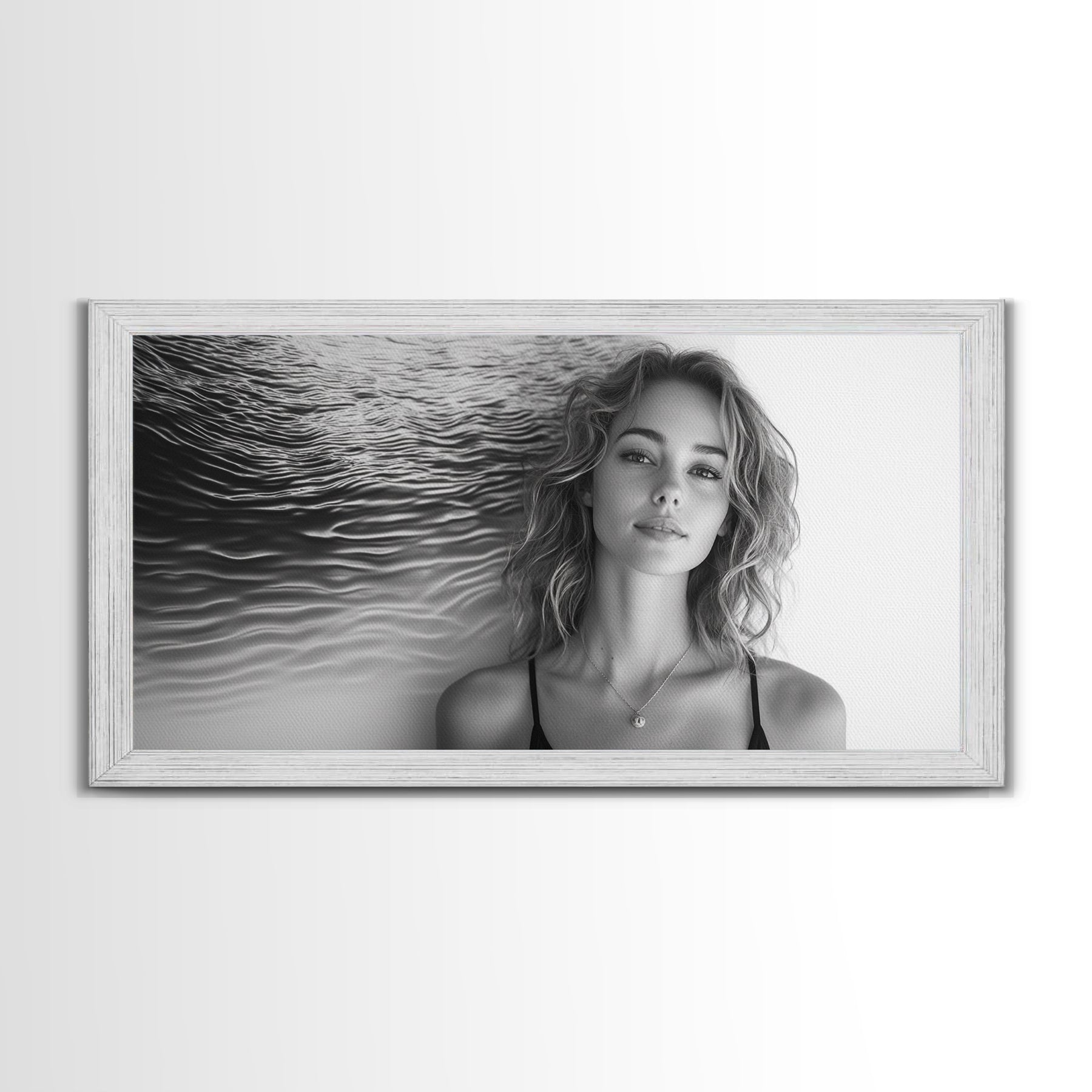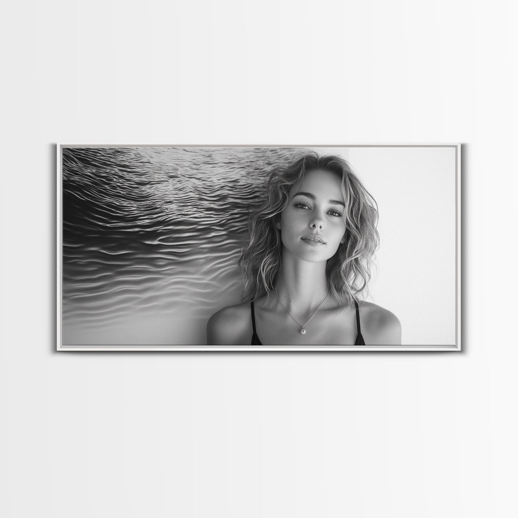 Ocean Texture, Abstract Waves, Modern Female, Artistic Portrait, Canvas Print, fashion wall art, glam room decor, minimal black white