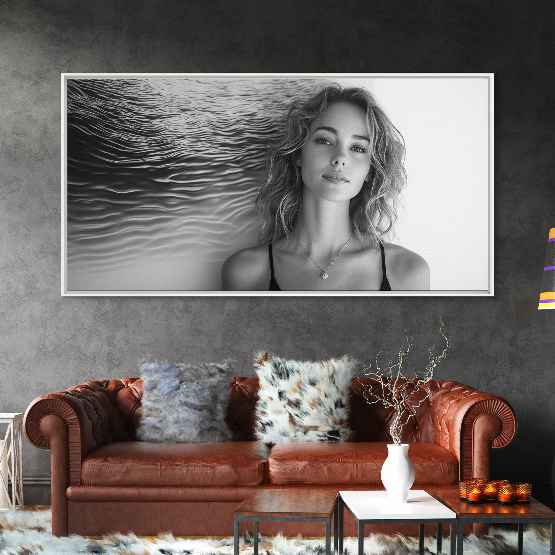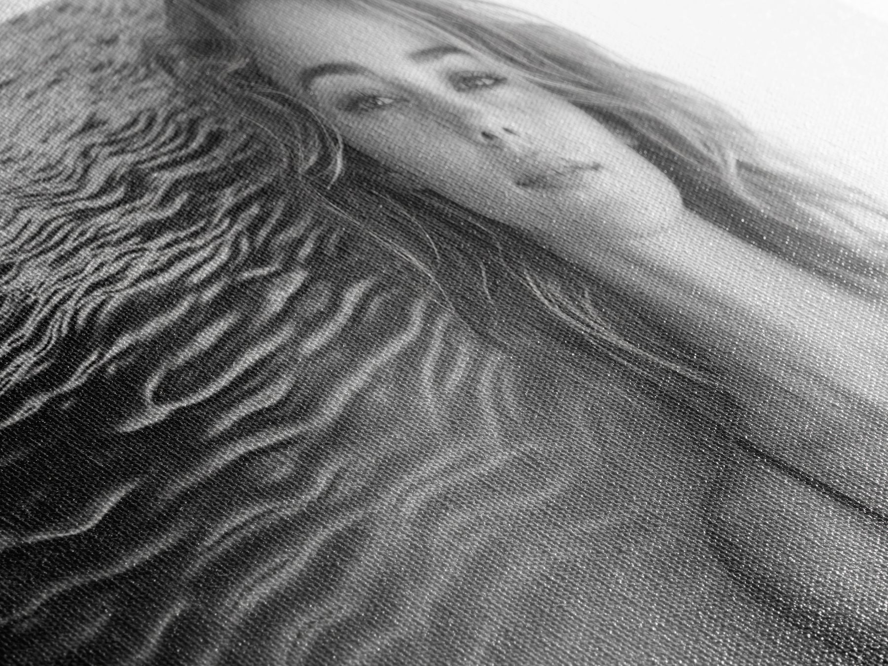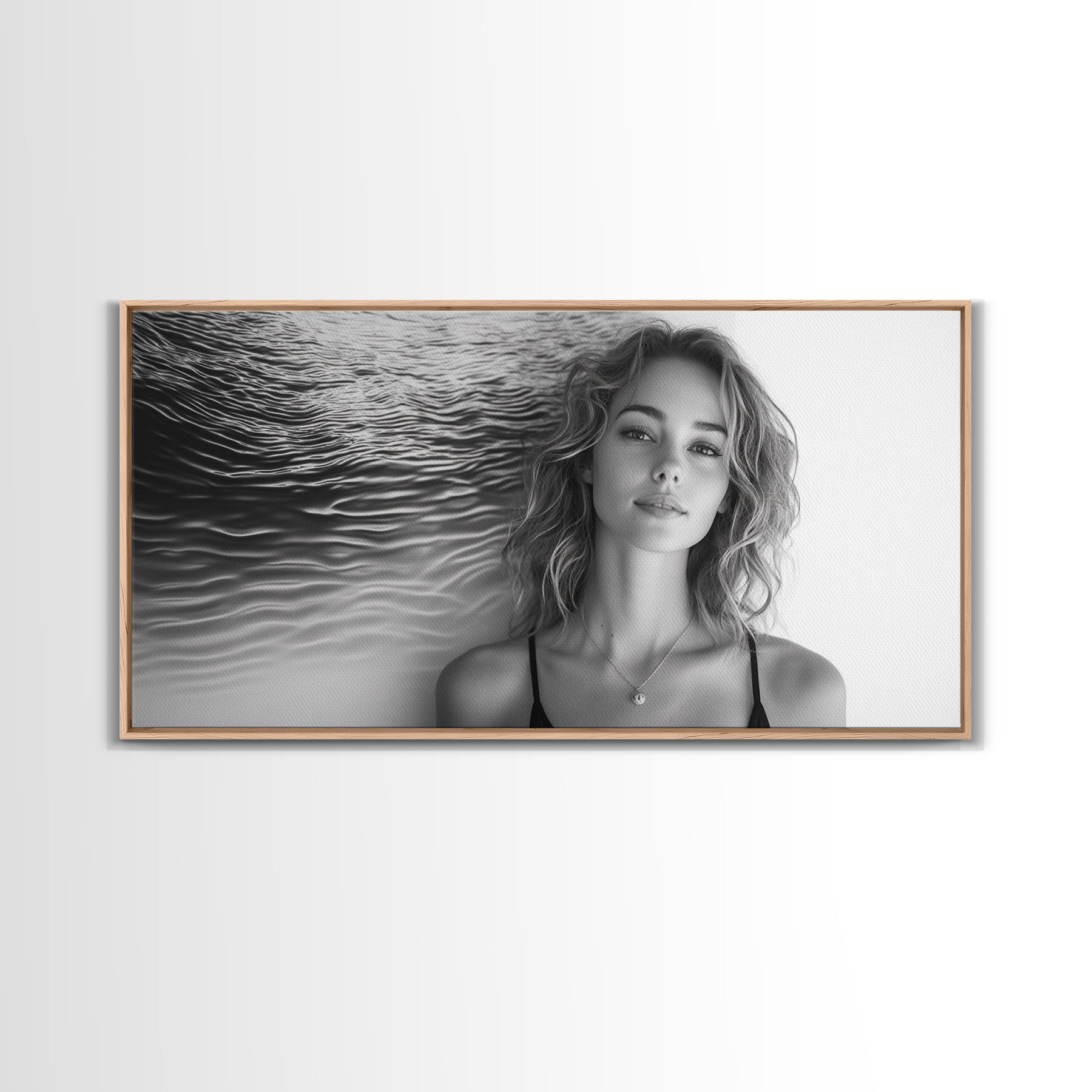 Ocean Texture, Abstract Waves, Modern Female, Artistic Portrait, Canvas Print, fashion wall art, glam room decor, minimal black white