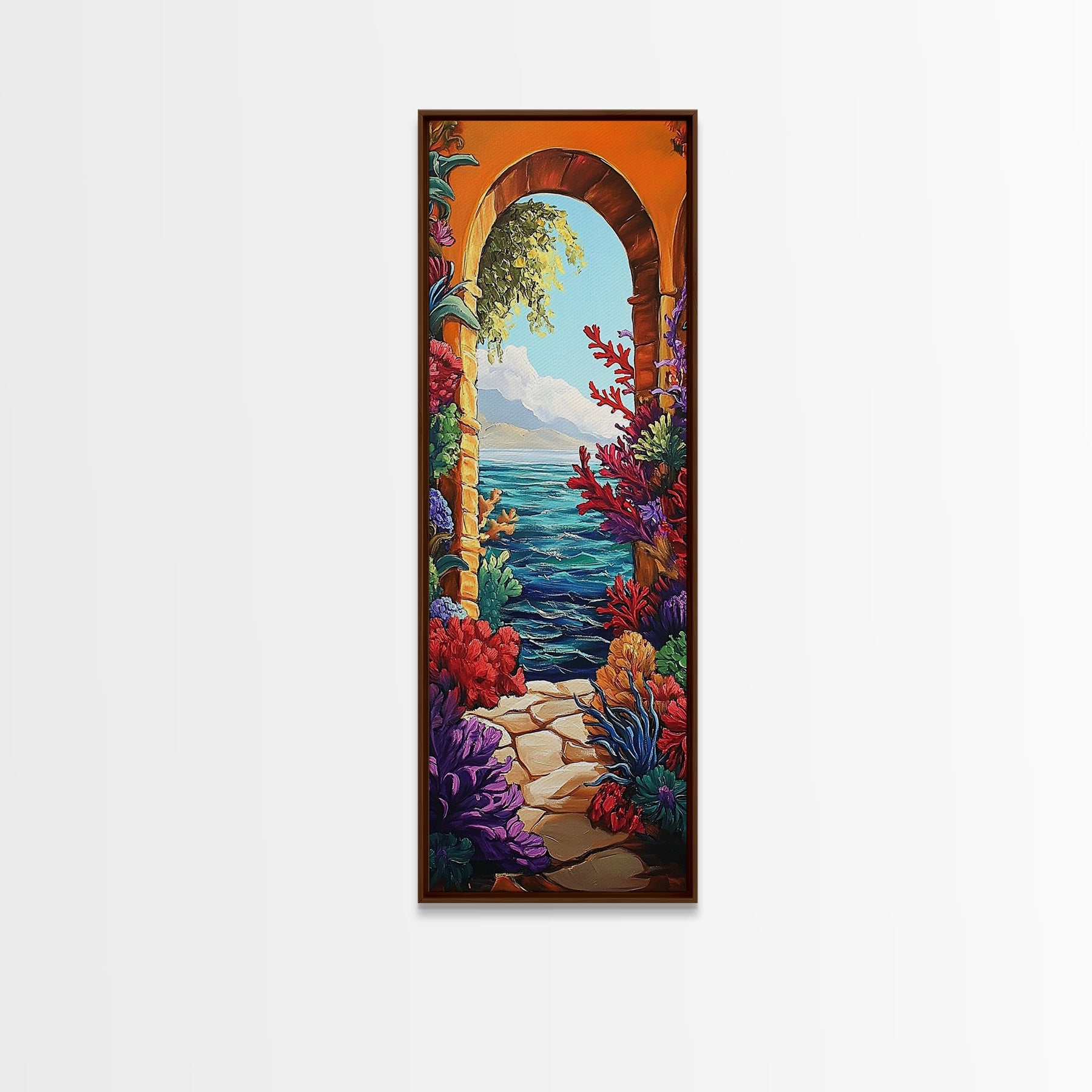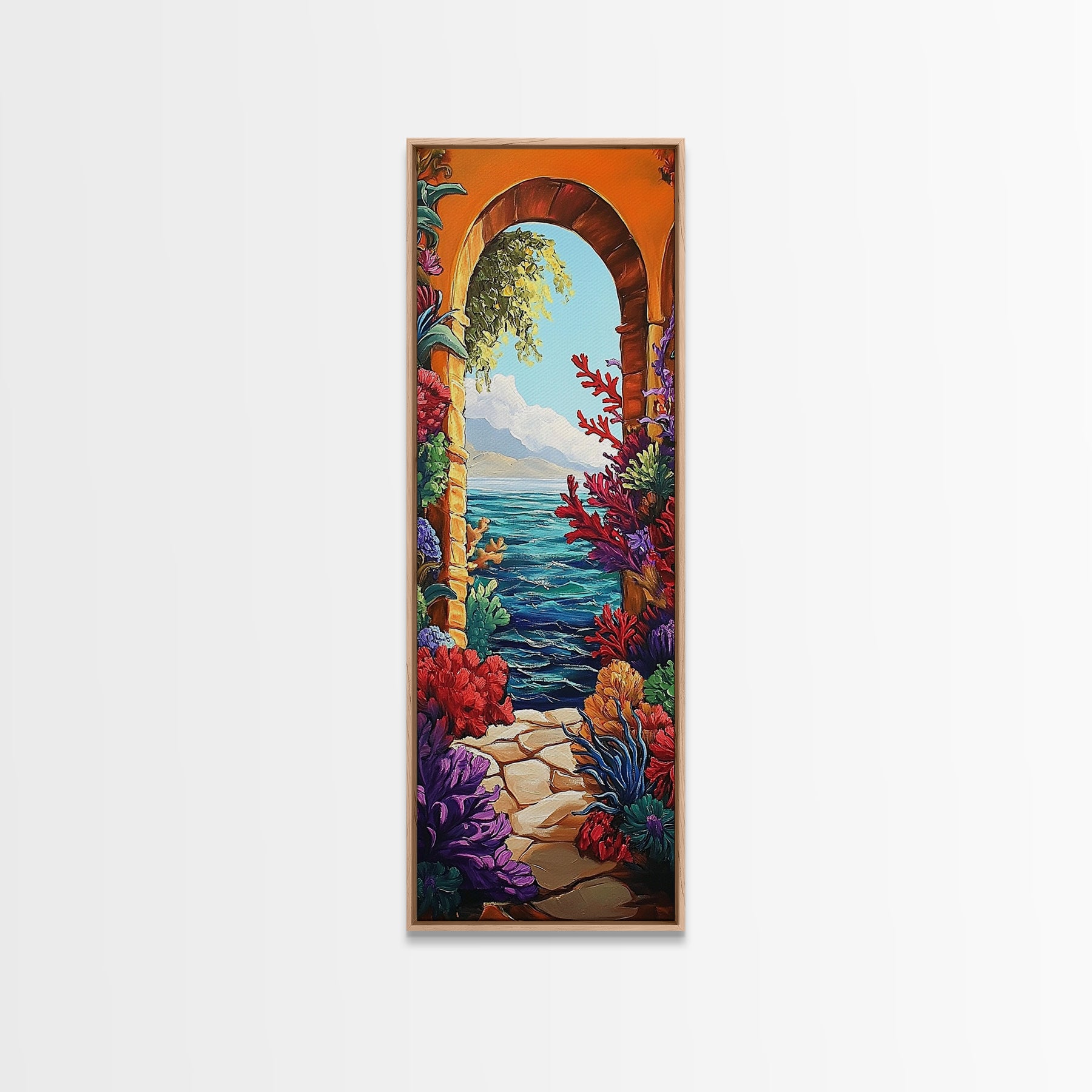 Ocean View, Archway Art, Tropical Seascape, Framed Canvas Print, Coastal Home Decor, Mediterranean Entryway Art, Bright Nautical Art