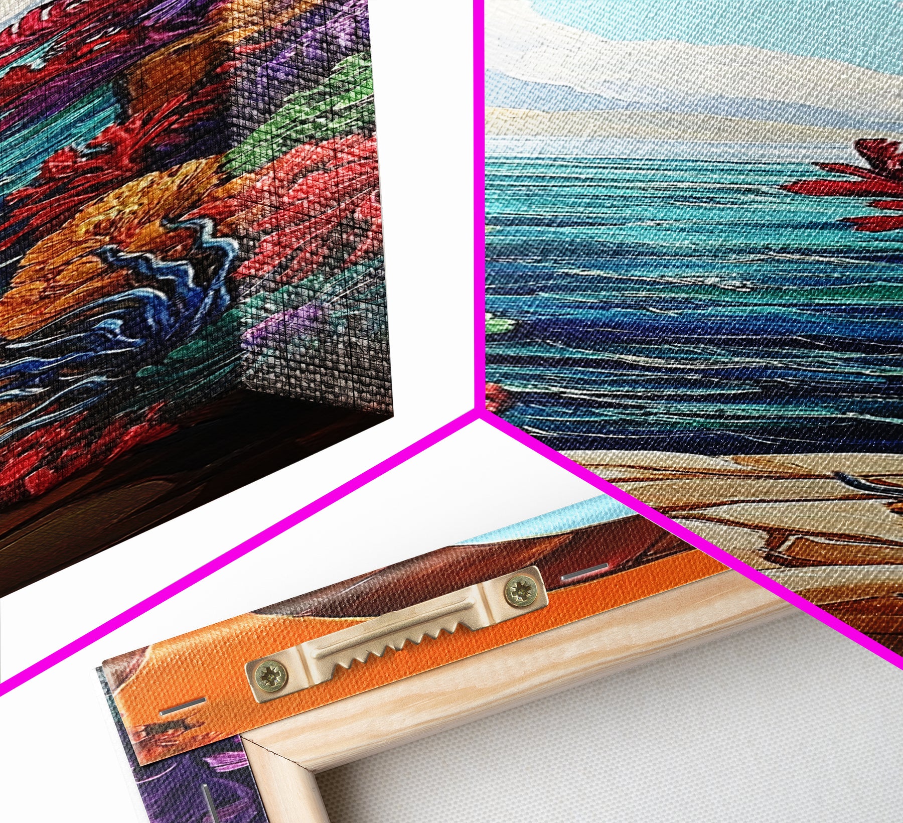 *Optional frames add a total of 1.5 inches to each dimension, for example a 10x20 canvas with a frame will be 11.5 by 21.5 inches total. All framed canvas are 1.5" total depth.